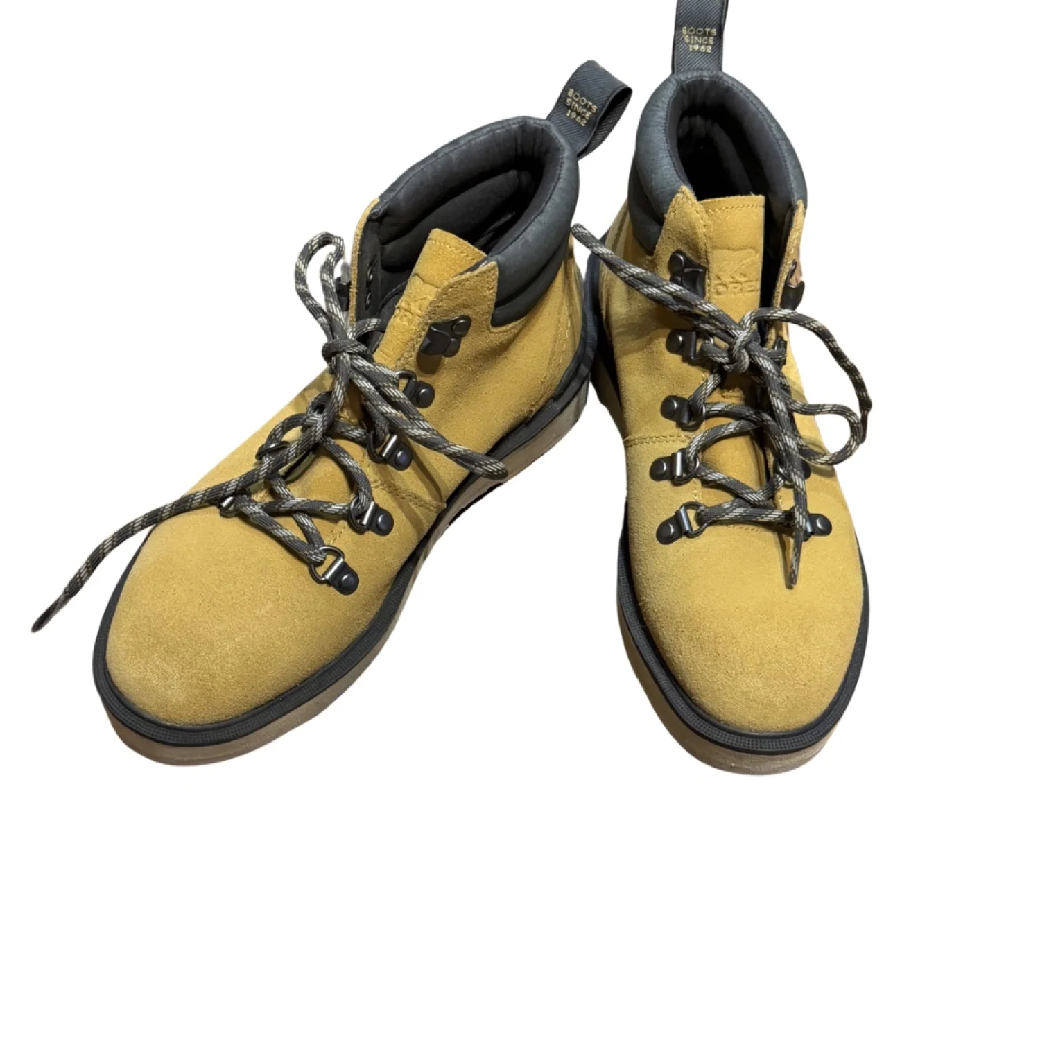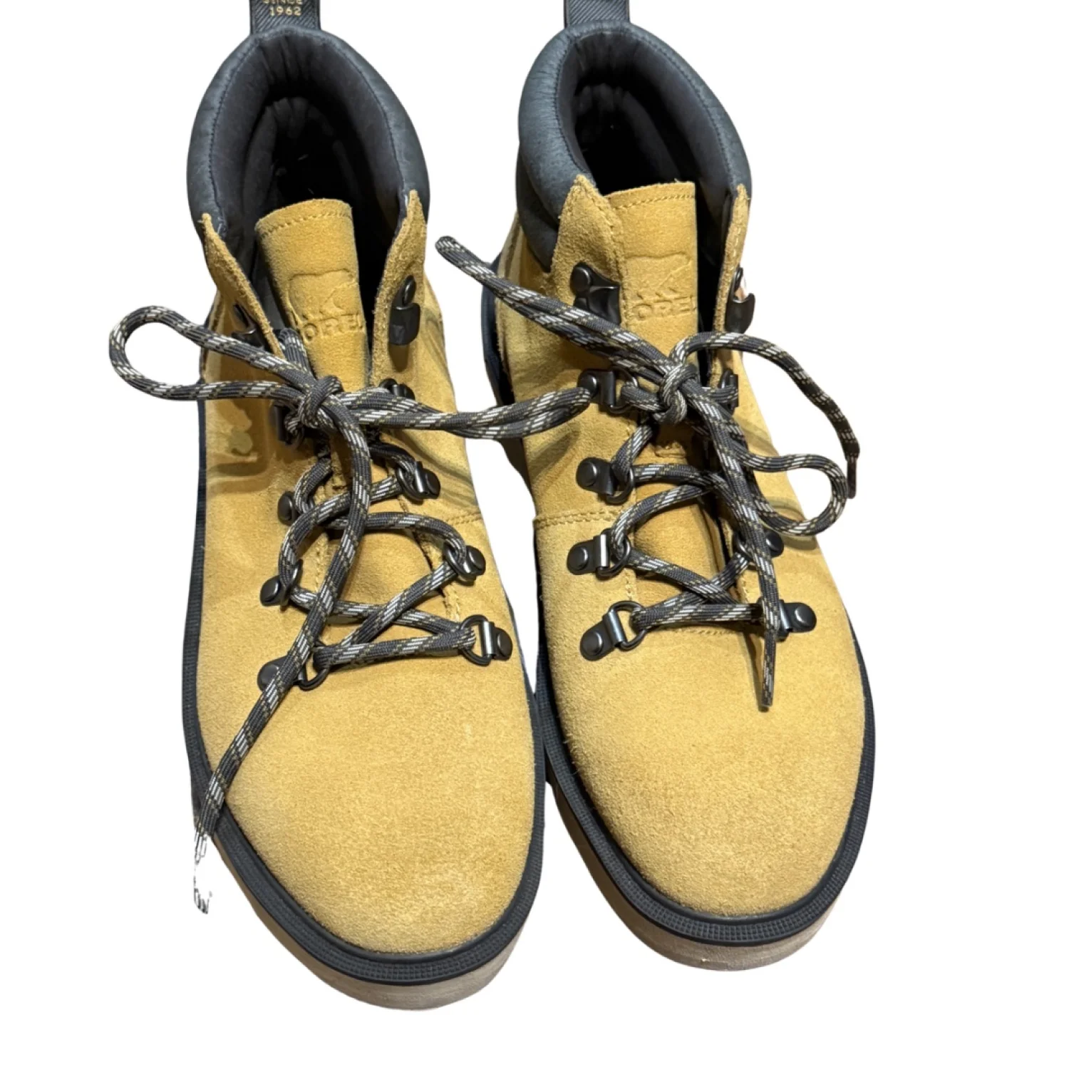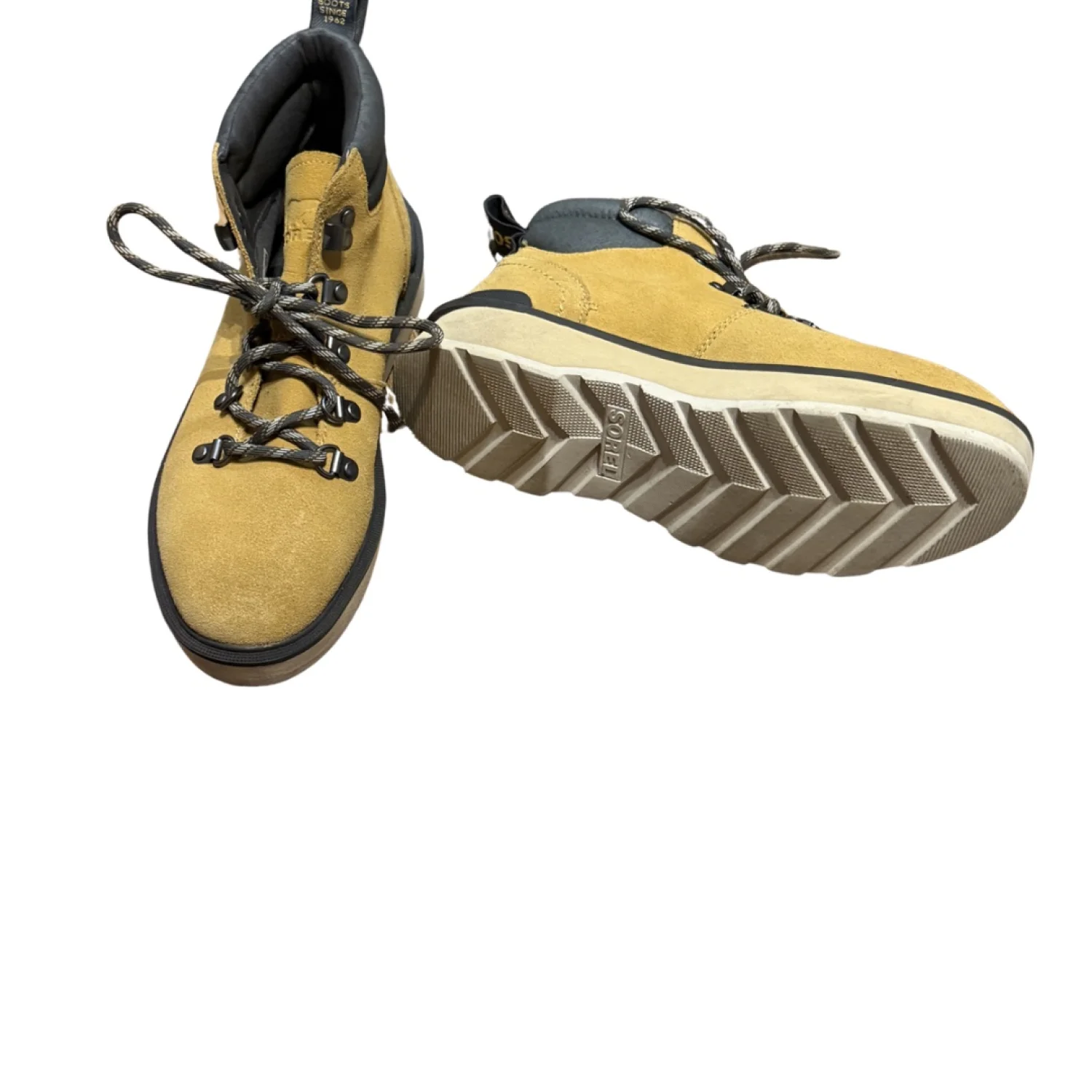 Sorel suede hiking boots in classic tan with rugged sole and padded collar. A timeless utility silhouette that blends workwear durability with everyday fall style. Details: • Brand: Sorel • Size: US 7 • UK 5 • EUR 38 • CM 24 • Suede upper • Lace up hiking style • Cushioned collar • Durable rubber outsole Condition: Pre owned in excellent condition. Minimal wear to suede and soles. Clean interior. Structurally sound and ready for everyday wear. Perfect for fall layering, cabin weekends, outdoor markets, everyday errands, and heritage inspired styling. Color may vary slightly due to lighting and screen settings. Buy Fewer. Love Deeper. Wear Longer.