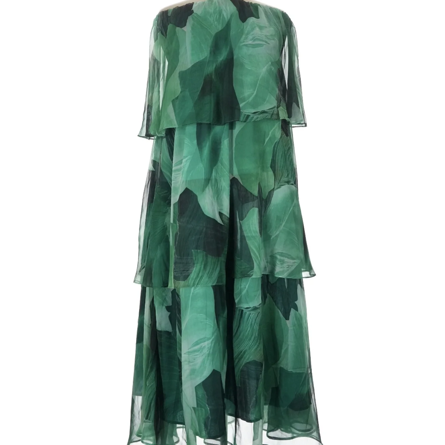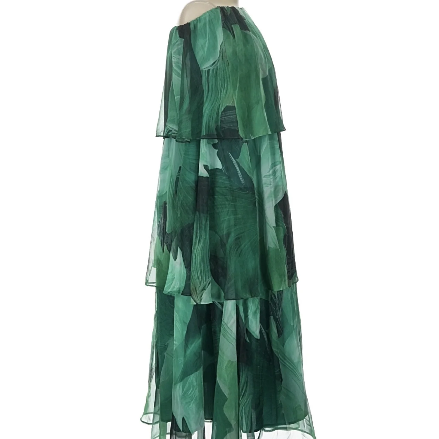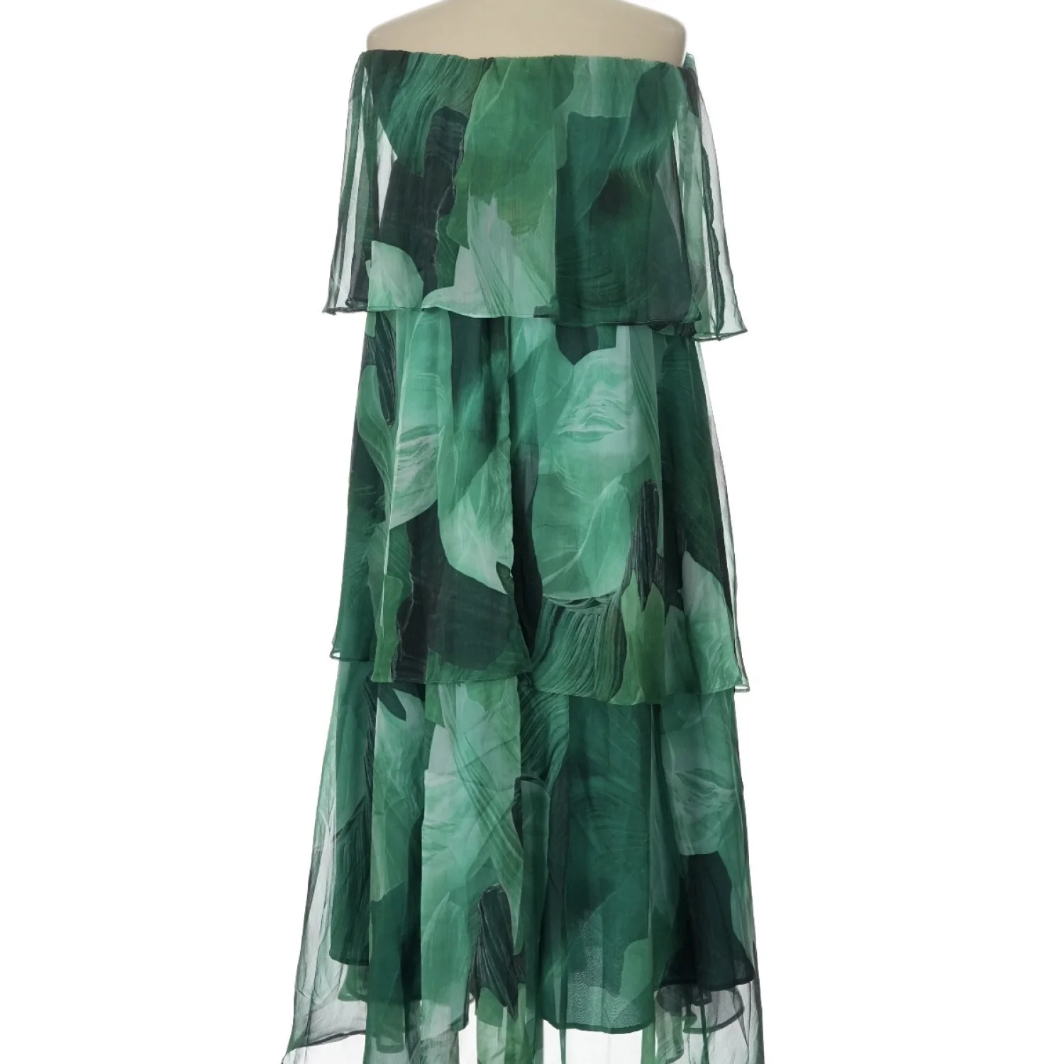 Petal + Pup Green Strapless Floral Tiered Maxi Dress Large