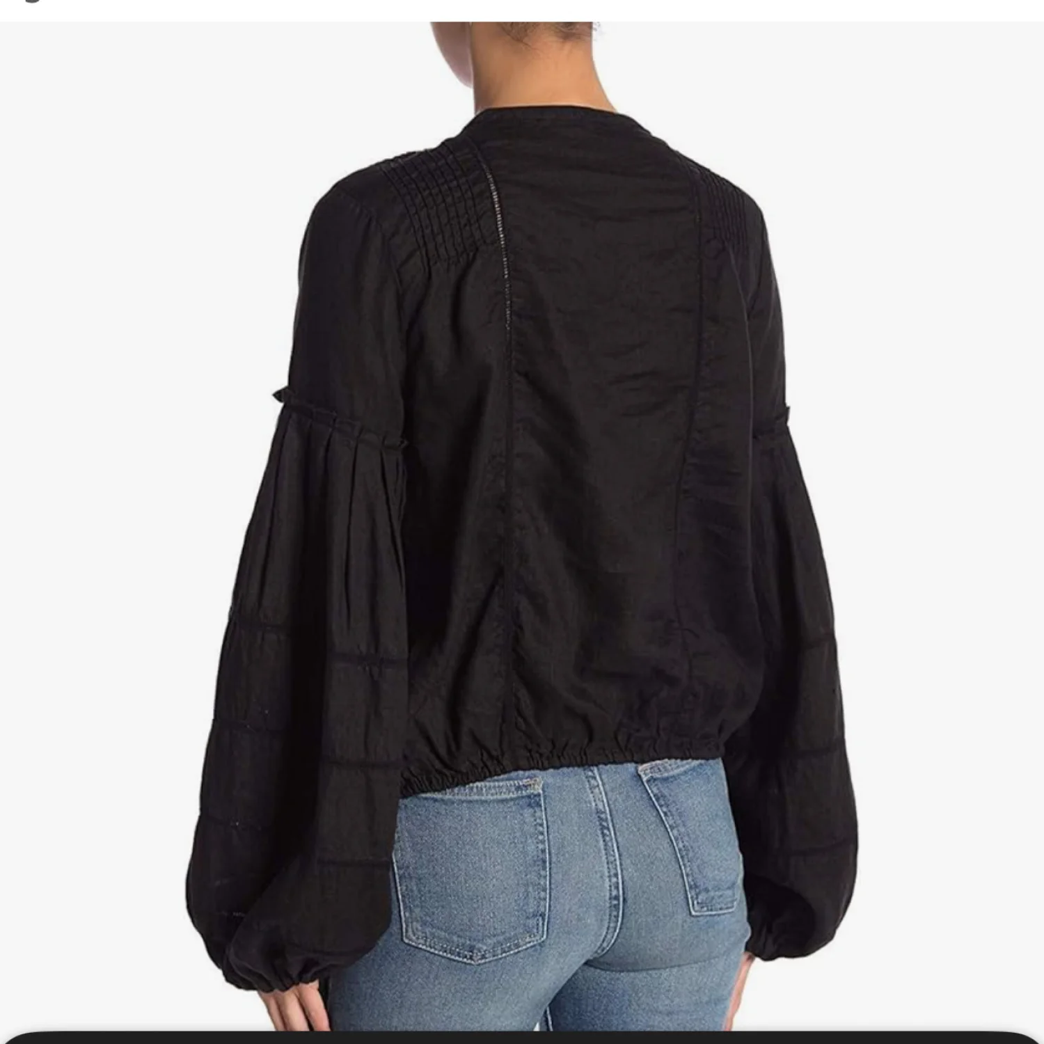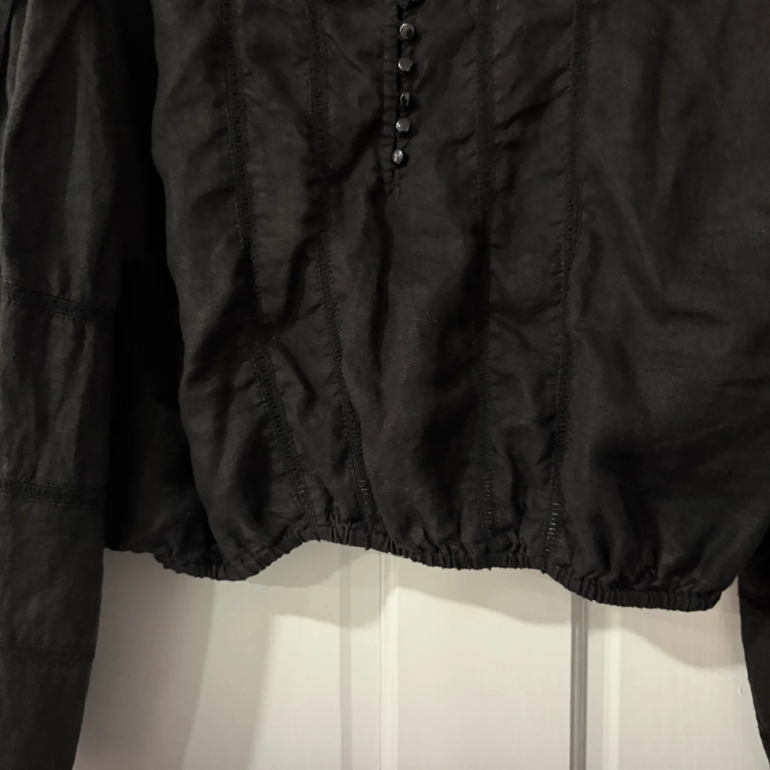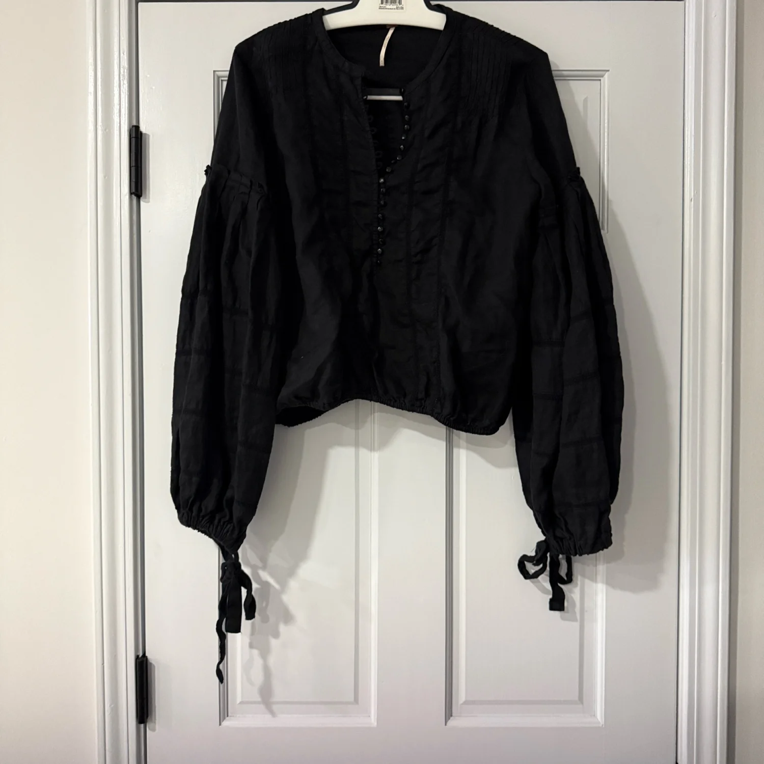 Free People Women’s High Swells Linen Crop Peasant Top Black size M Top
