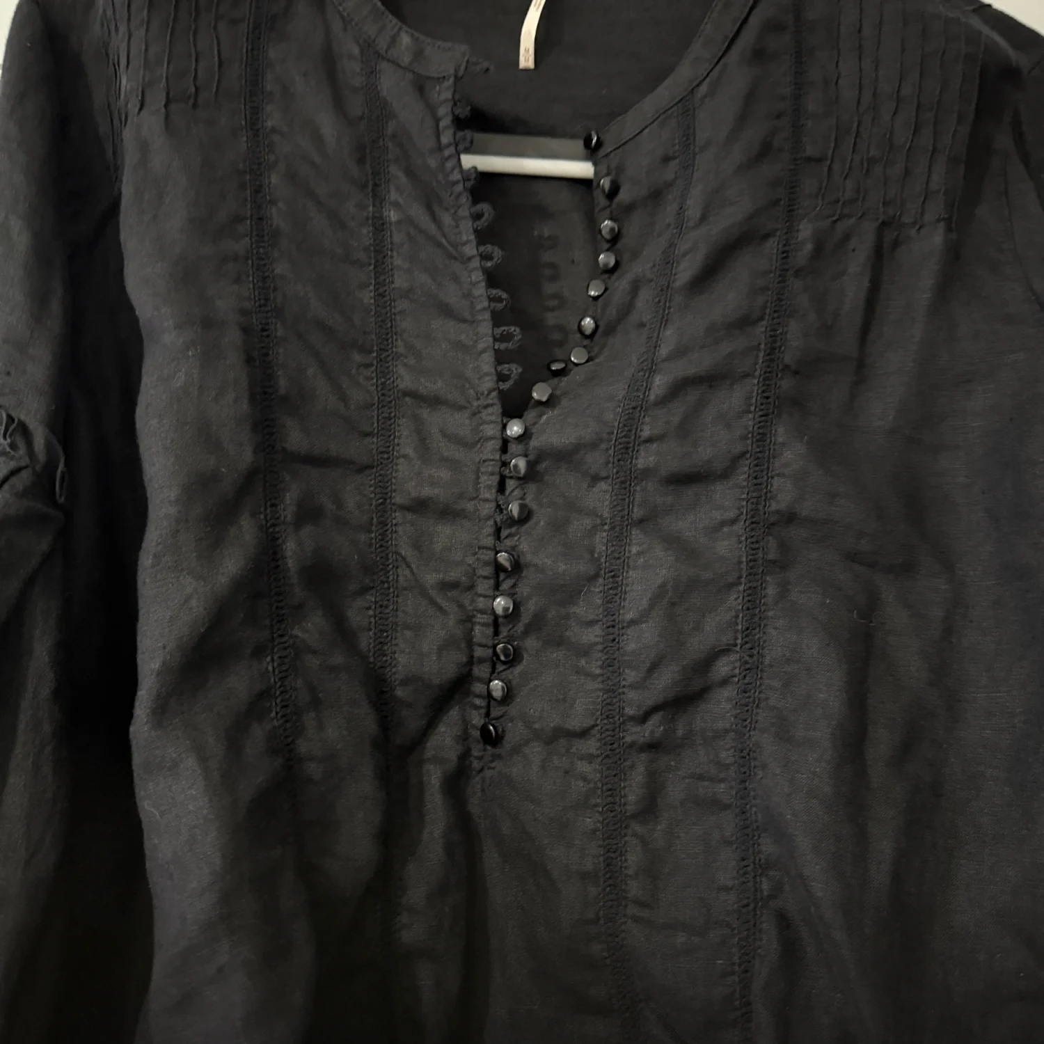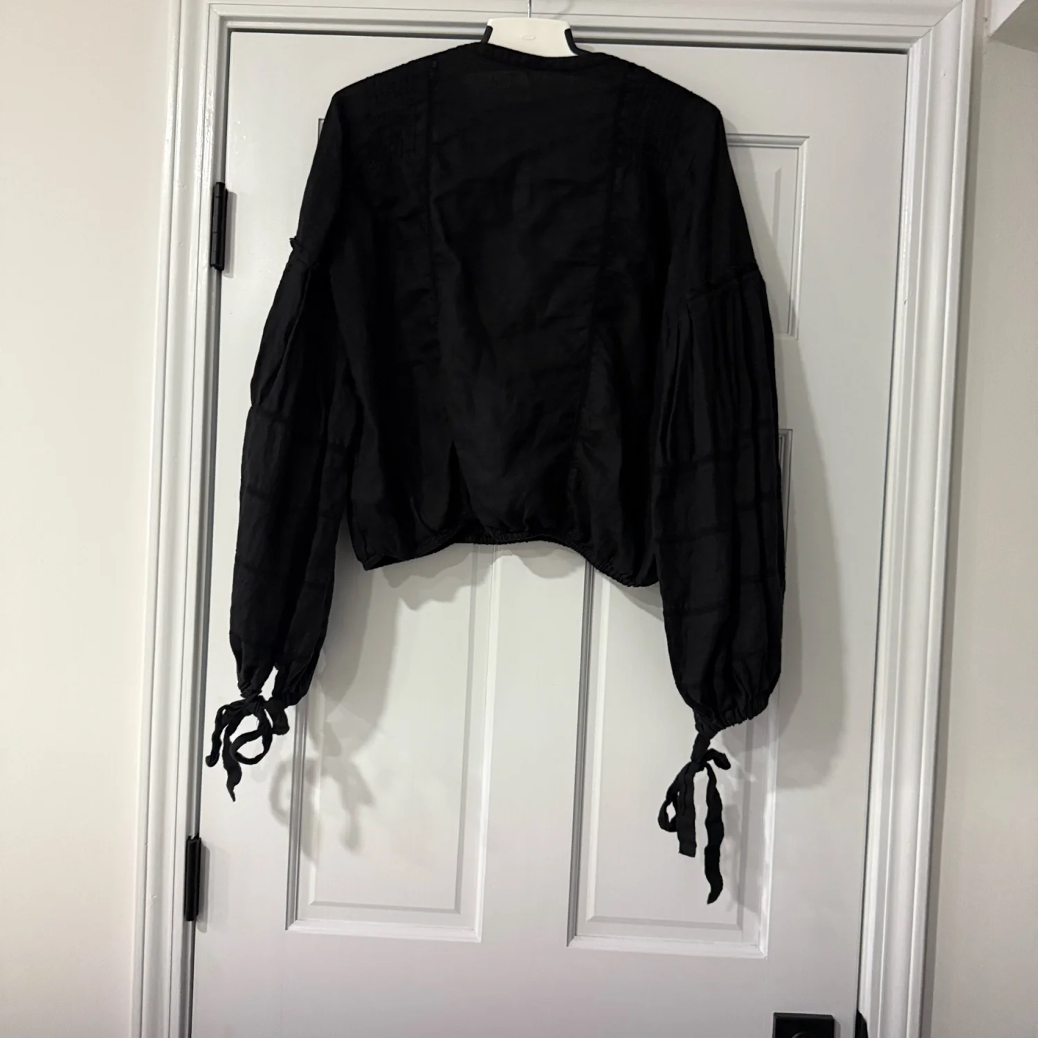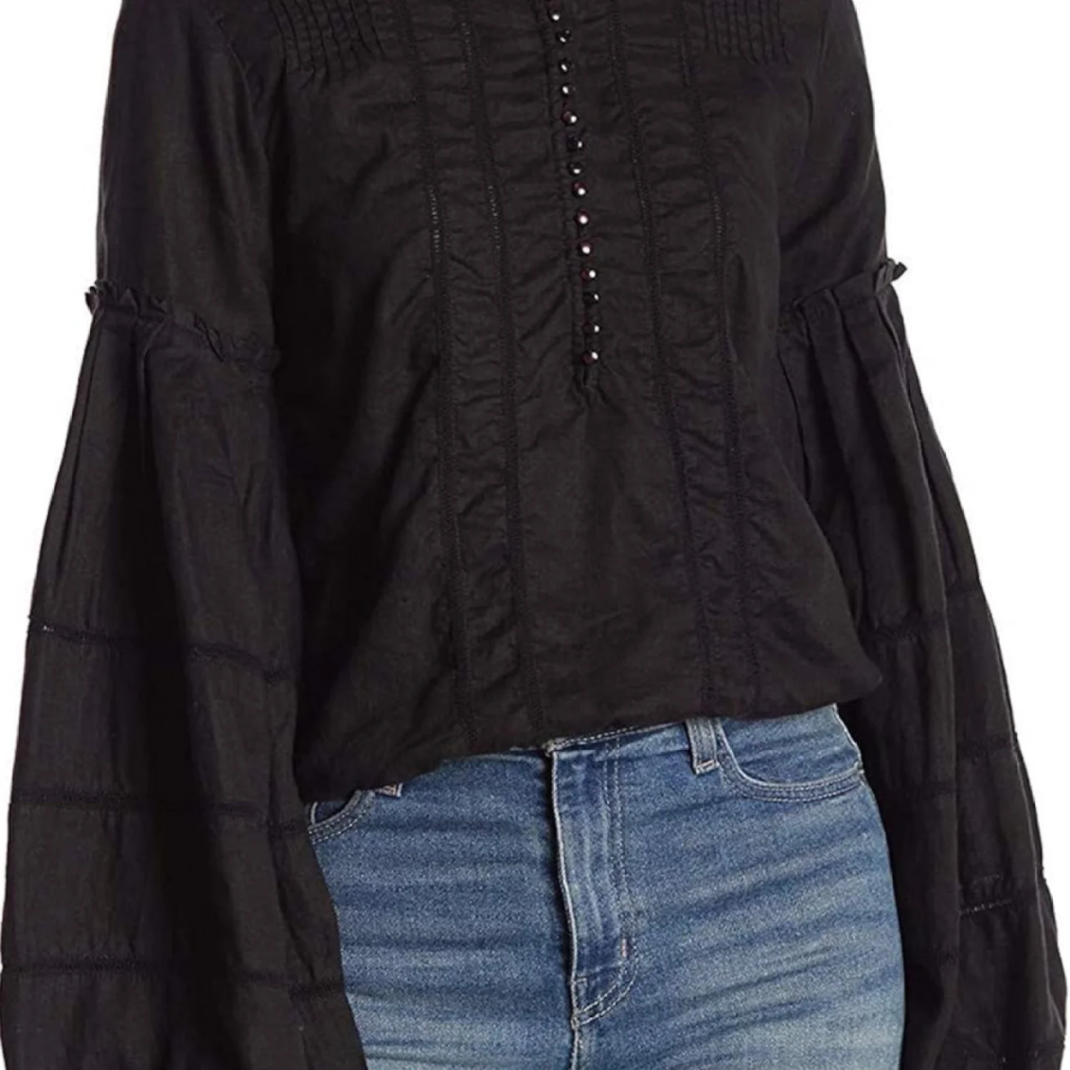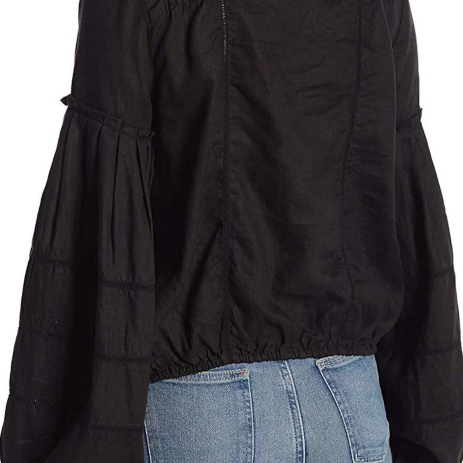 Free People Women’s High Swells Linen Crop Peasant Top Black size M Top