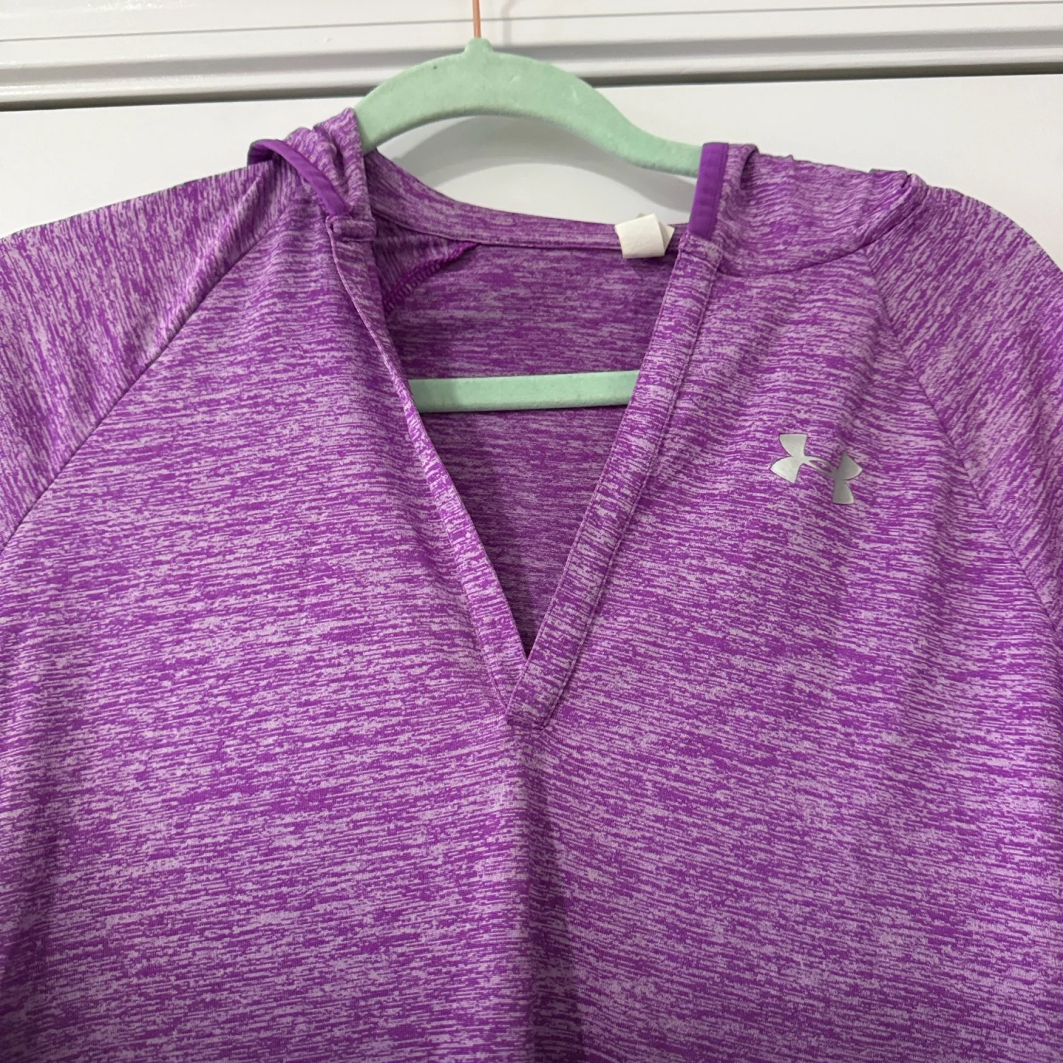Comfortable heathered purple hoodie by Under Armour. Ideal for everyday wear.Its in new condition without tags.Sold as is. PTP IS AROUND 18” LENGHT IS AROUND 26”