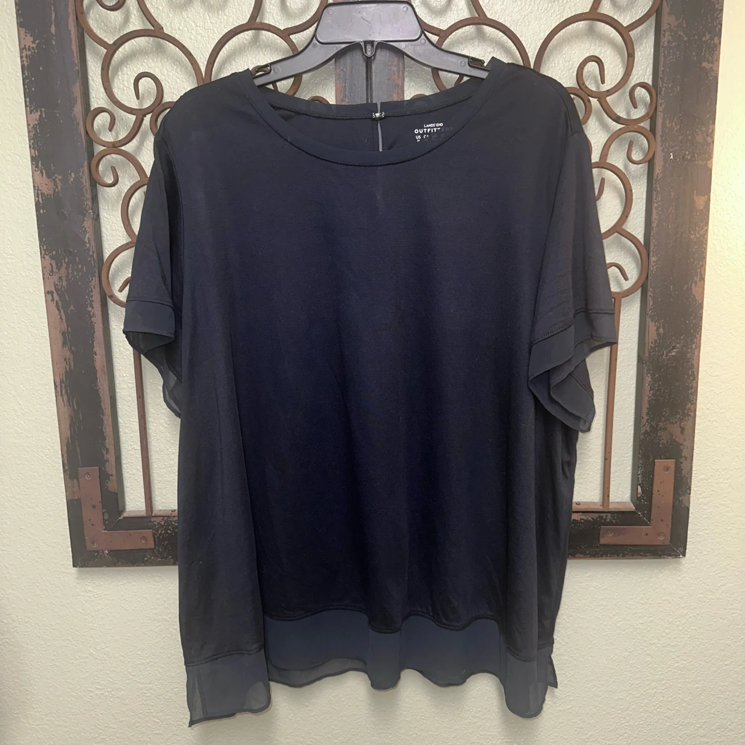 Experience ultimate comfort with this Lands' End black top featuring a boxy and relaxed fit. Crafted for casual wear, this short-sleeve top is perfect for everyday style. Enjoy the simplicity and ease of this versatile top. Size 3x 22” ptp 22” length