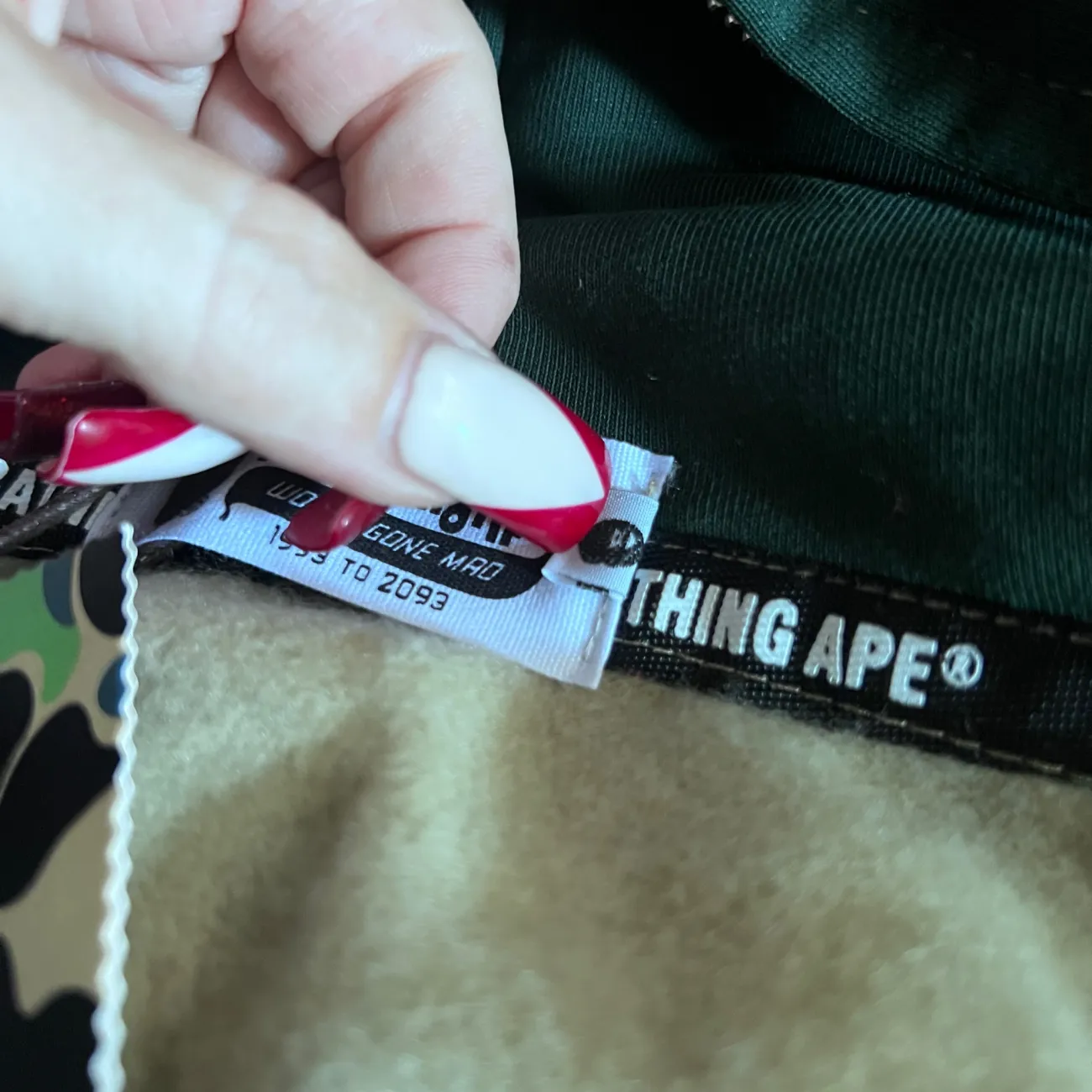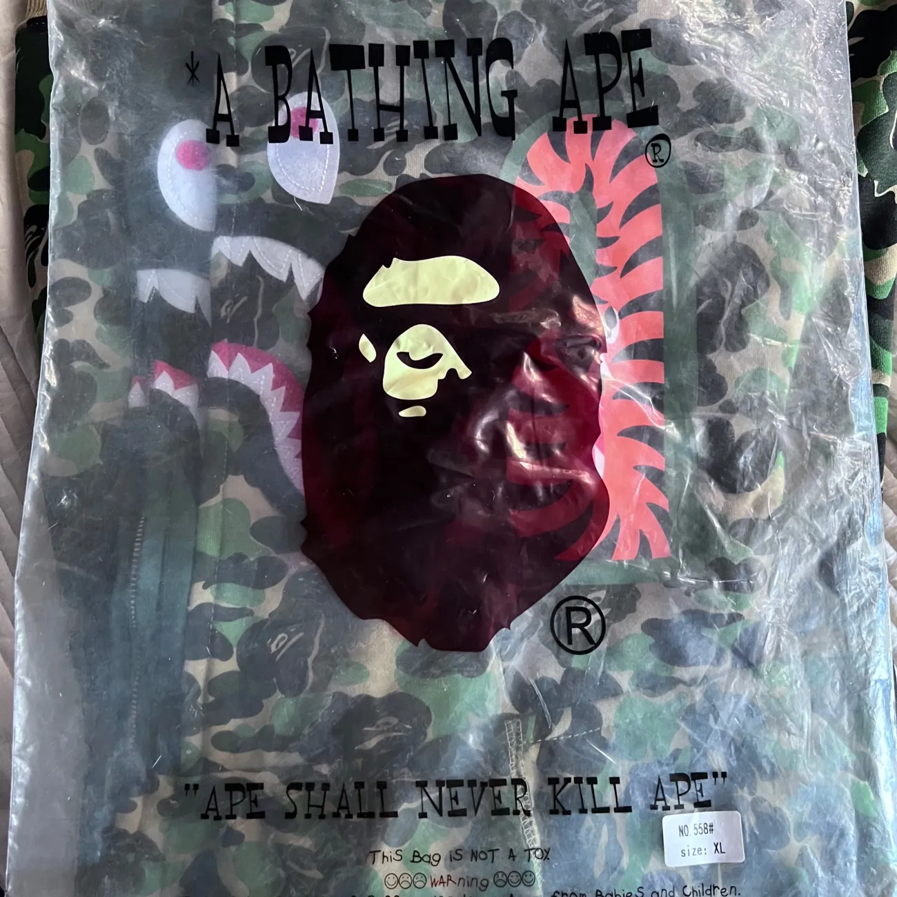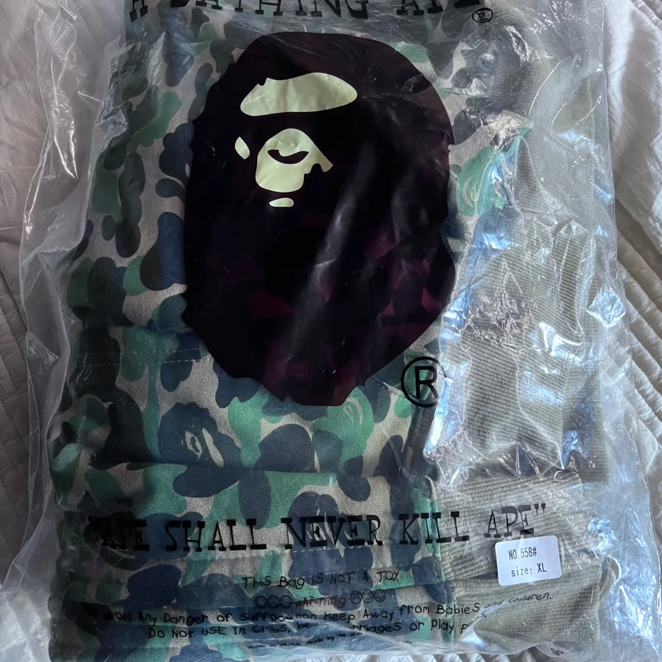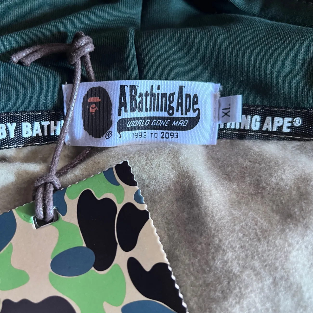 The product is a New!!! A BATHING APE Zip Hoodie in size XL, made of cotton. This hoodie is designed for men and features a regular fit, making it comfortable for everyday wear. The stylish design of the hoodie includes a zip closure and the iconic A BATHING APE branding, adding a touch of streetwear flair to any outfit.