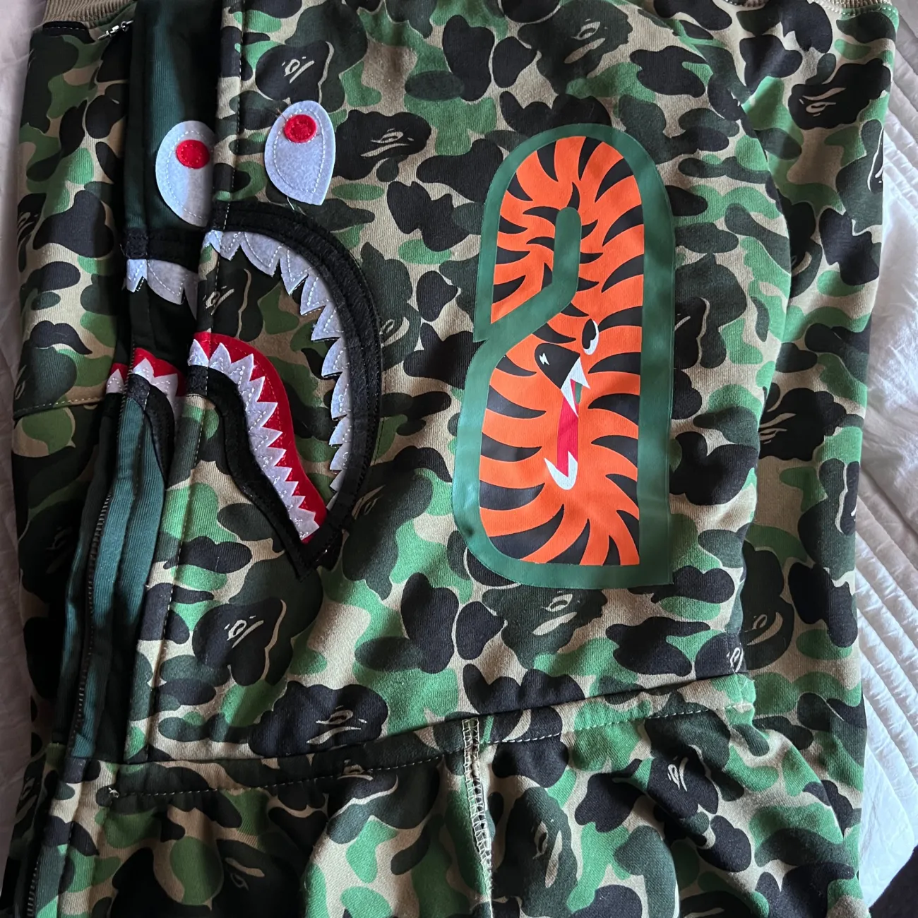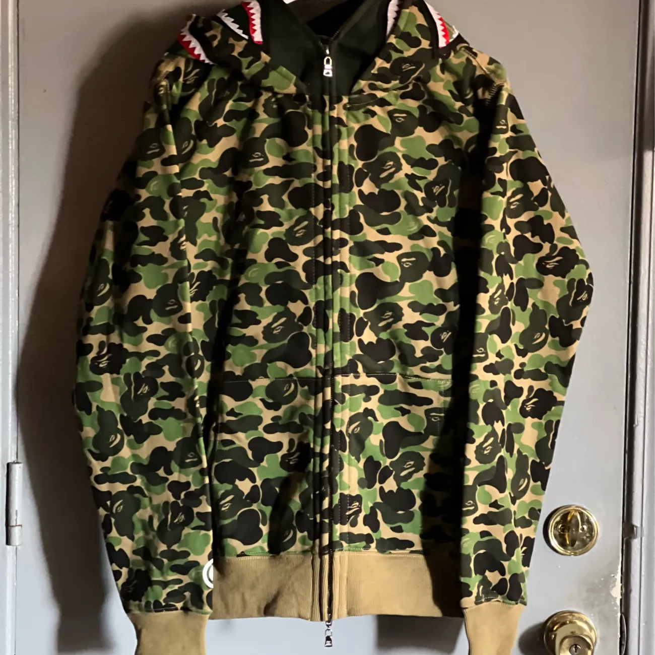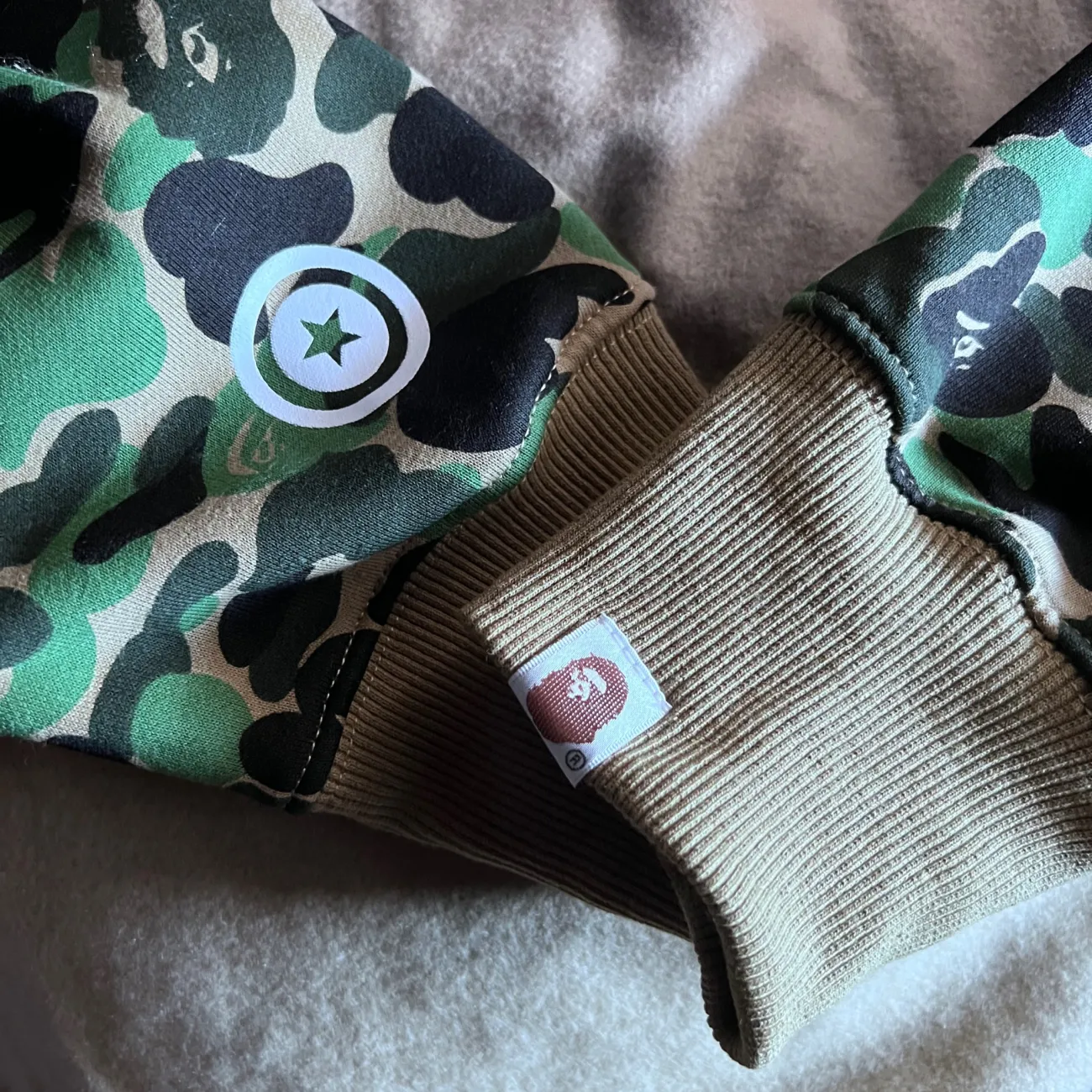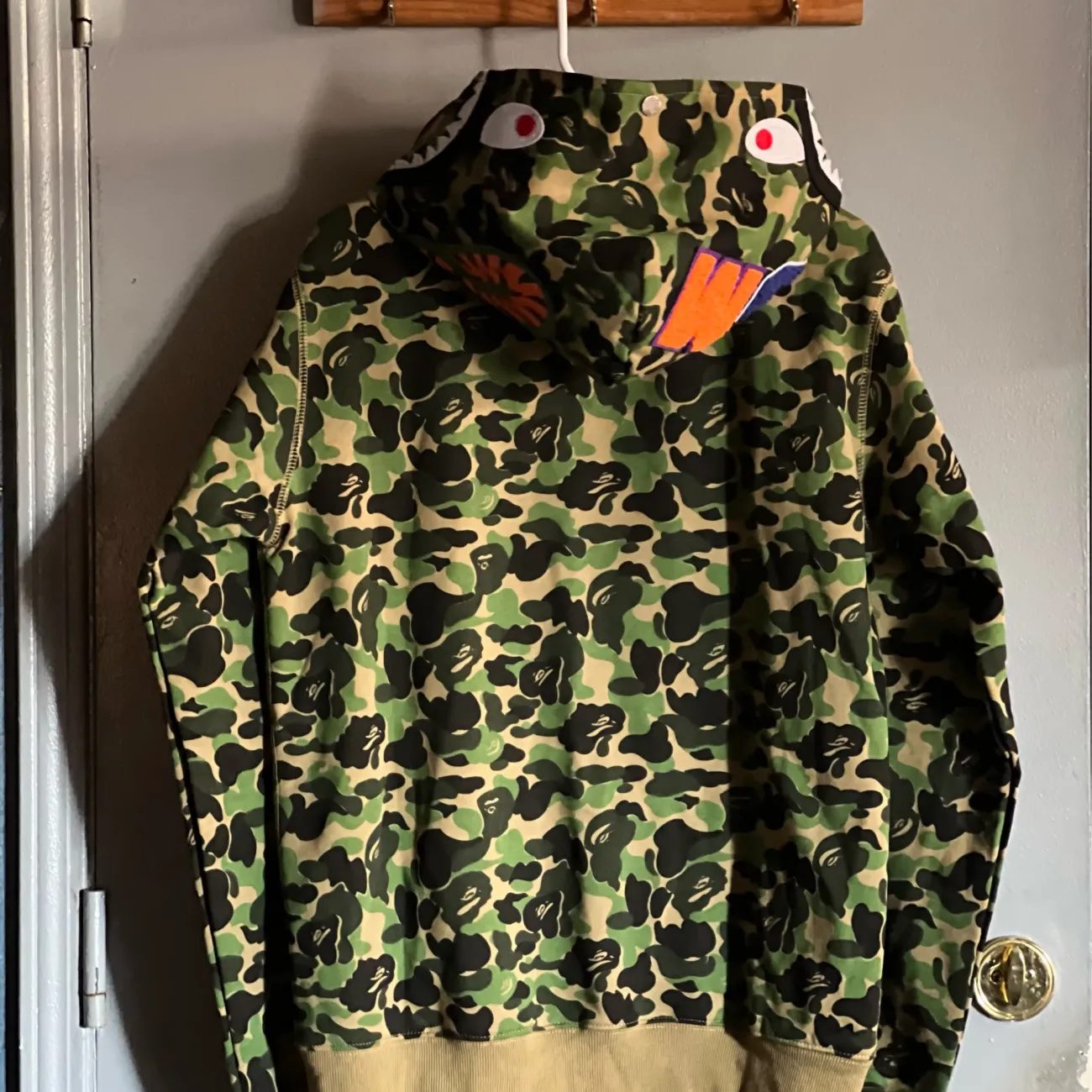 The product is a New!!! A BATHING APE Zip Hoodie in size XL, made of cotton. This hoodie is designed for men and features a regular fit, making it comfortable for everyday wear. The stylish design of the hoodie includes a zip closure and the iconic A BATHING APE branding, adding a touch of streetwear flair to any outfit.