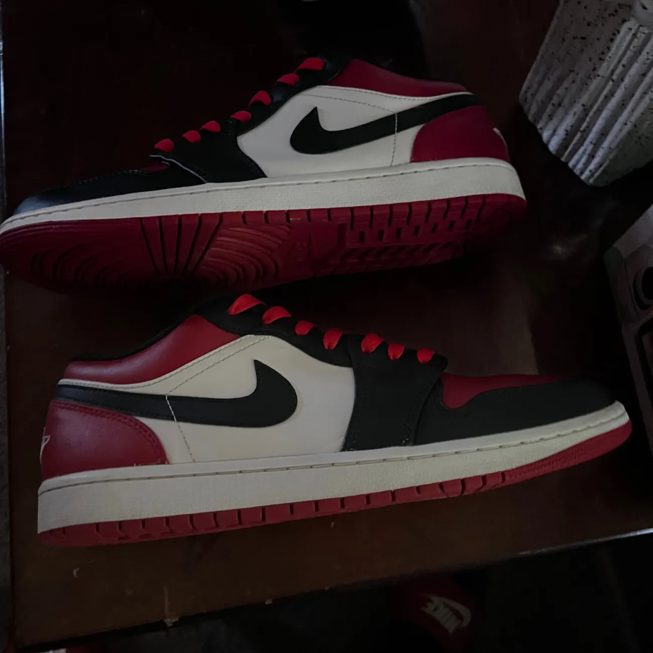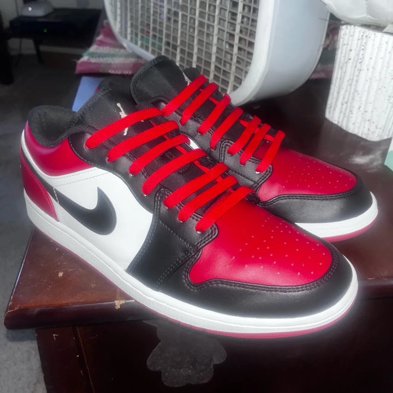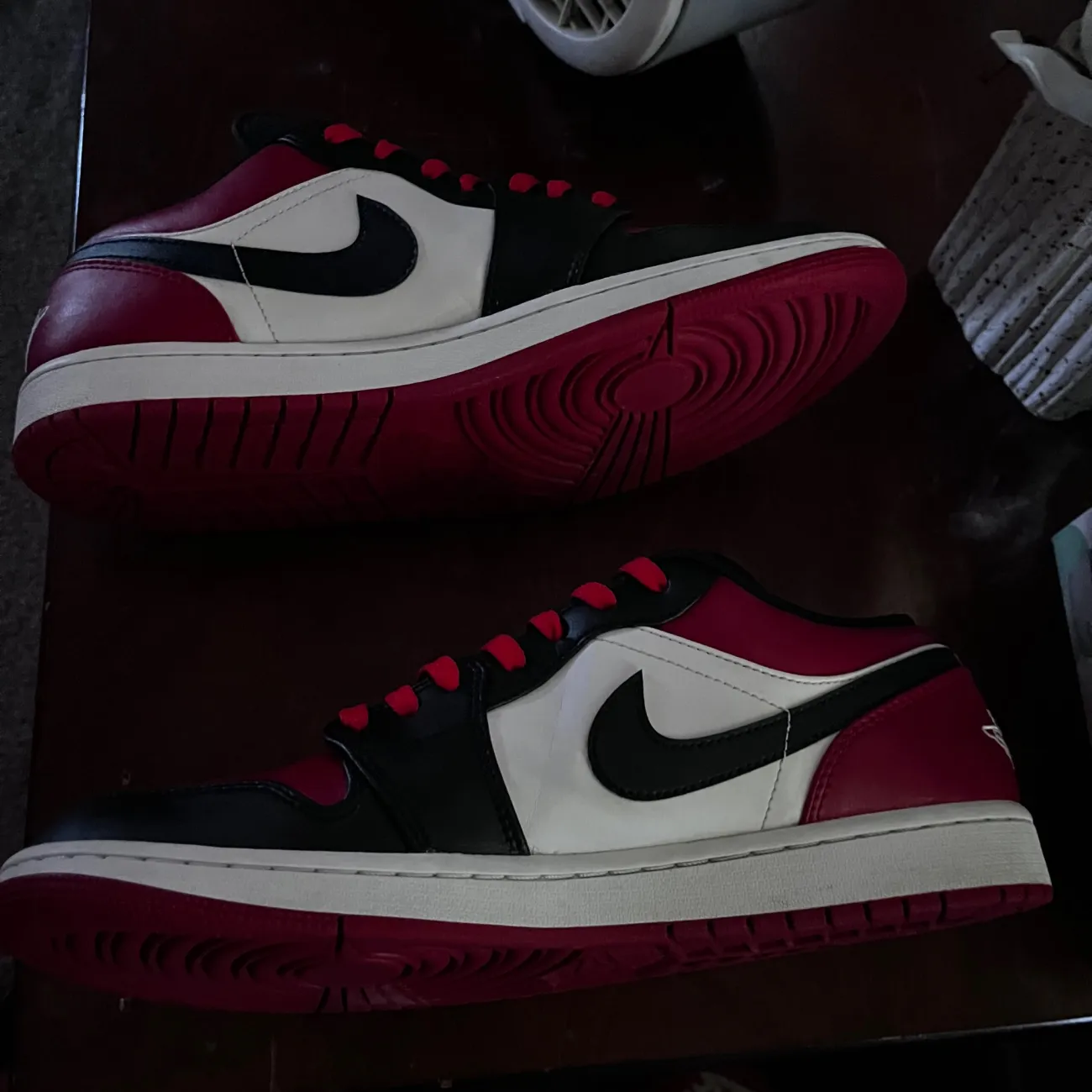 The Jordan 1 Retro OG Low Black Toe in size 11.5m is a stylish and versatile sneaker perfect for men looking for a classic colorblock design with a twist of white accents. This lace-up shoe features a low-top silhouette and standard shoe width, making it suitable for a variety of athletic activities such as walking, basketball, and everyday casual wear. Made with leather upper material and a durable rubber outsole, this Air Jordan 1 Retro model is designed for comfort and performance throughout all seasons. The iconic Jordan brand ensures high quality and a timeless aesthetic.