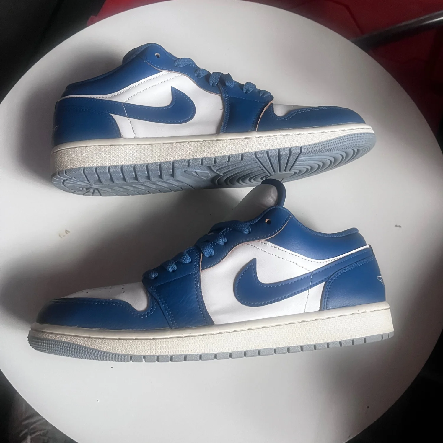 The Nike Men's Air Jordan 1 SE Low Size 10m Industrial Blue |FN5214-141| is a stylish and high-quality athletic sneaker designed for men. With a low top design and leather upper material, this shoe offers both comfort and durability. The iconic Air Jordan 1 model is known for its classic design and popular demand, making it a sought-after choice for sneaker enthusiasts. The industrial blue color adds a unique touch to the shoe, making it stand out from the crowd. Release in 2024, this shoe is a part of the Air Jordan product line, guaranteeing both quality and style