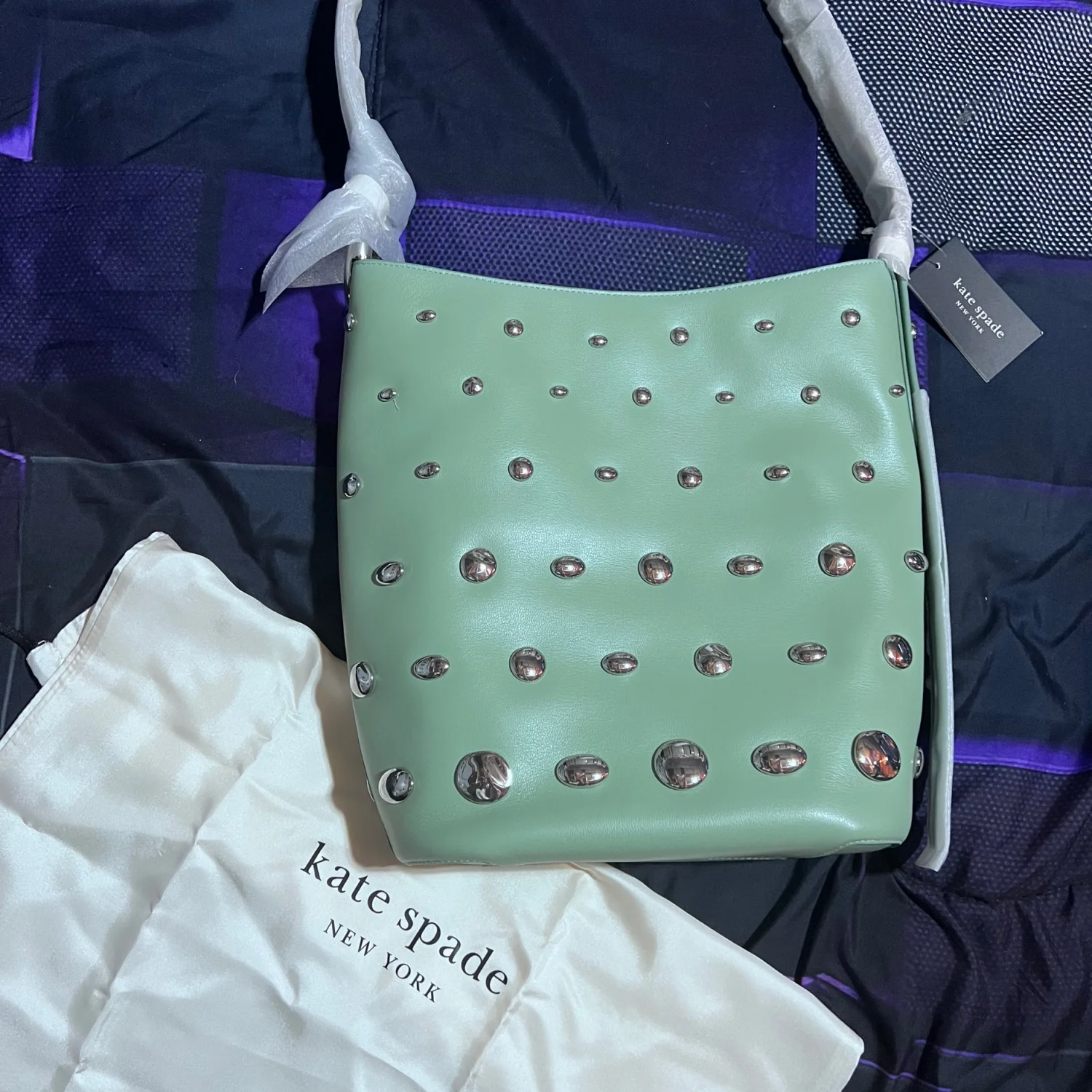 Kate Spade New York Halo Studded Bucket Bag made of fine-grain 100% Authentic