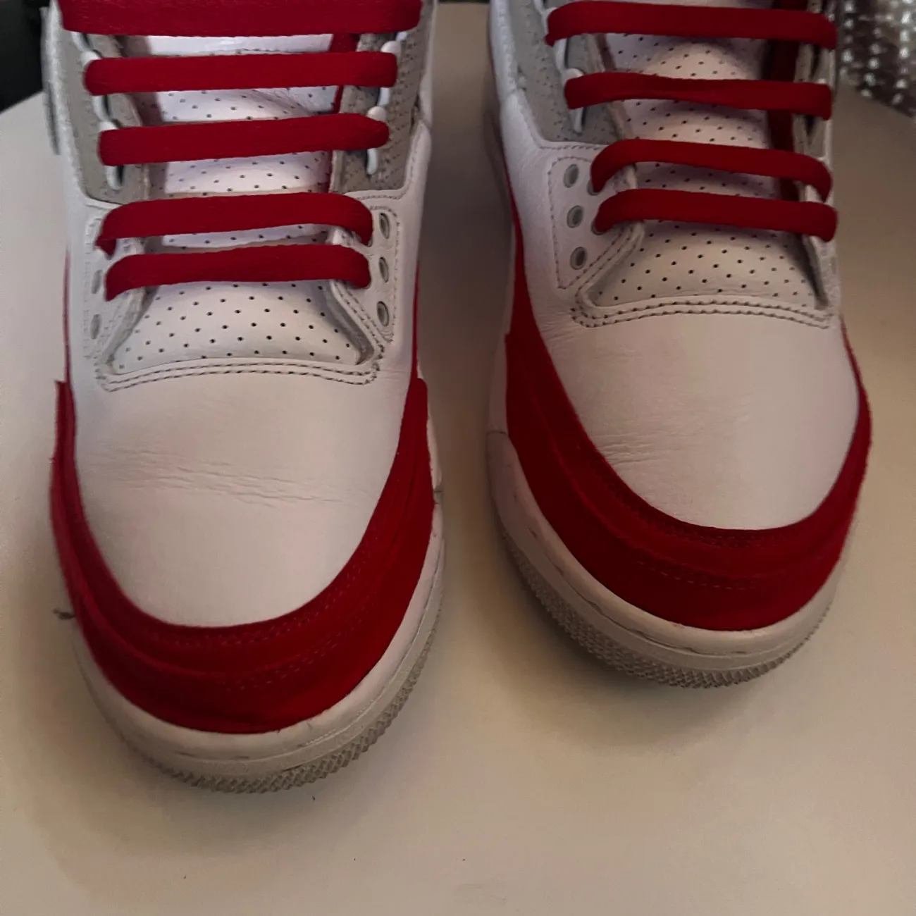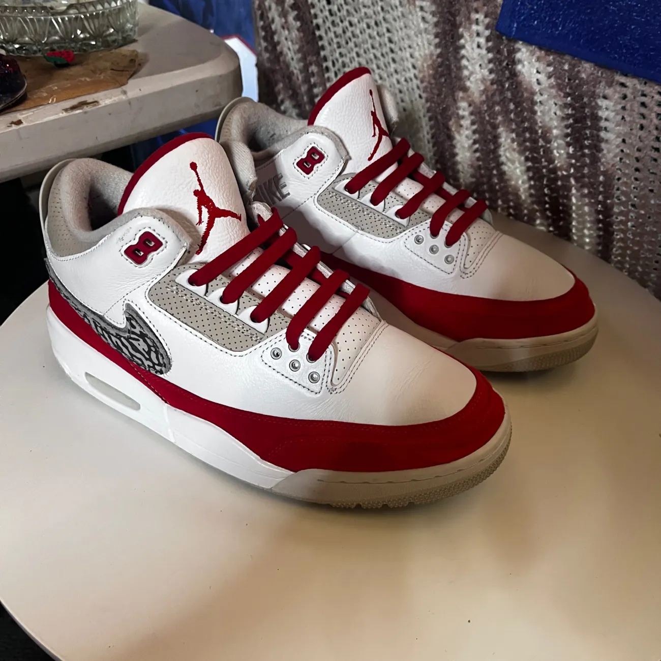 The product is a pair of Jordan 3 Retro Tinker sneakers in the colorway White University Red. These low-top sneakers feature a style code of CJ0939-100 and belong to the Air Jordan product line. Released in 2019, these athletic shoes for men combine style and comfort, making them a popular choice for sneaker enthusiasts looking for a unique and trendy addition to their collection… no og box