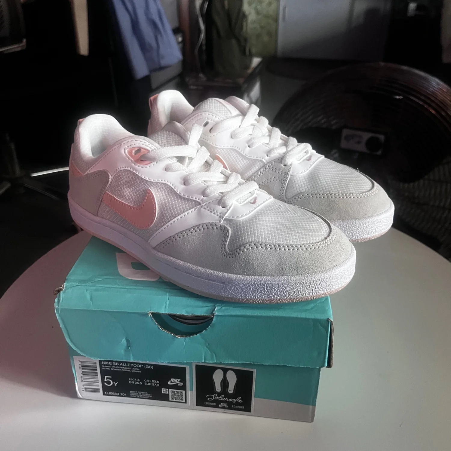 The Nike SB Alleyoop (GS) Summit White shoe is a stylish and comfortable sneaker designed for unisex kids who enjoy skateboarding. Featuring a low top shaft style with a round toe and lace-up closure, this athletic shoe is perfect for summer season activities. The white color with Nike logo accents and rubber outsole material make it a versatile choice for young skaters looking to add a touch of university-themed flair to their wardrobe. Made in Vietnam, this Nike Alleyoop model is a must-have for any aspiring skateboarder.