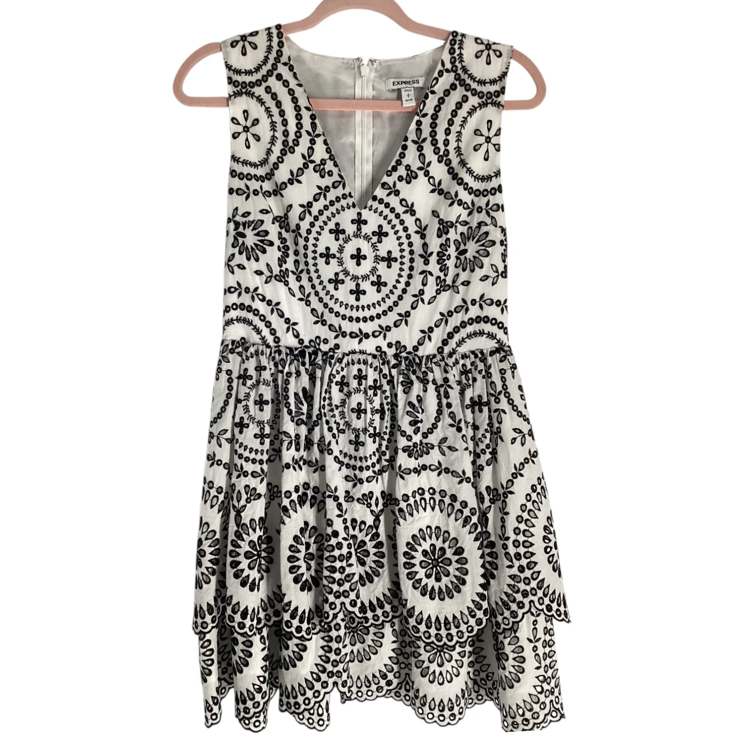 Express Black & White Embroidered Fit and Flare Dress – Size Small