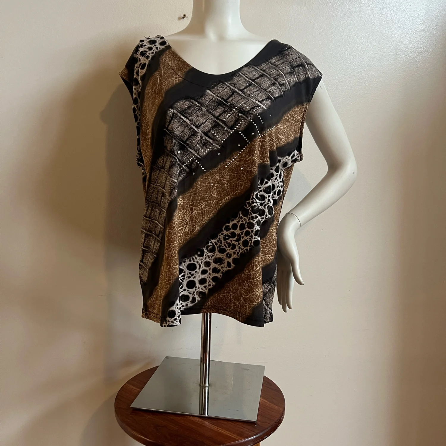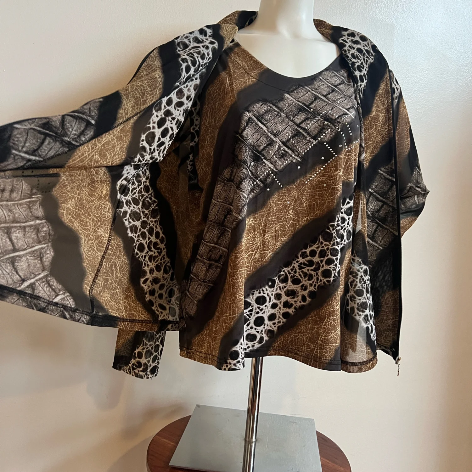 Vintage Valentina animal print jacket over tank with metallic accents women’s XL
