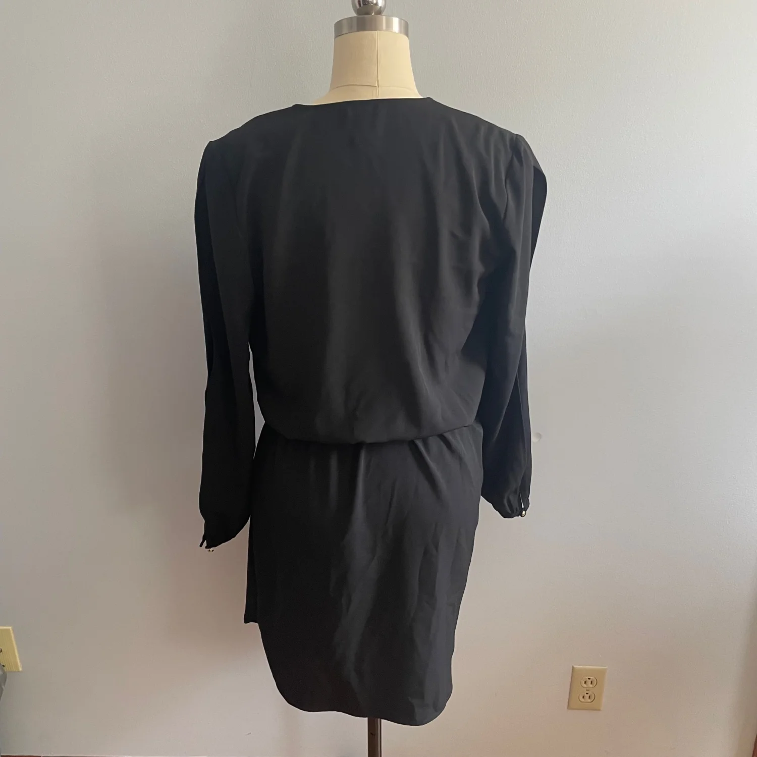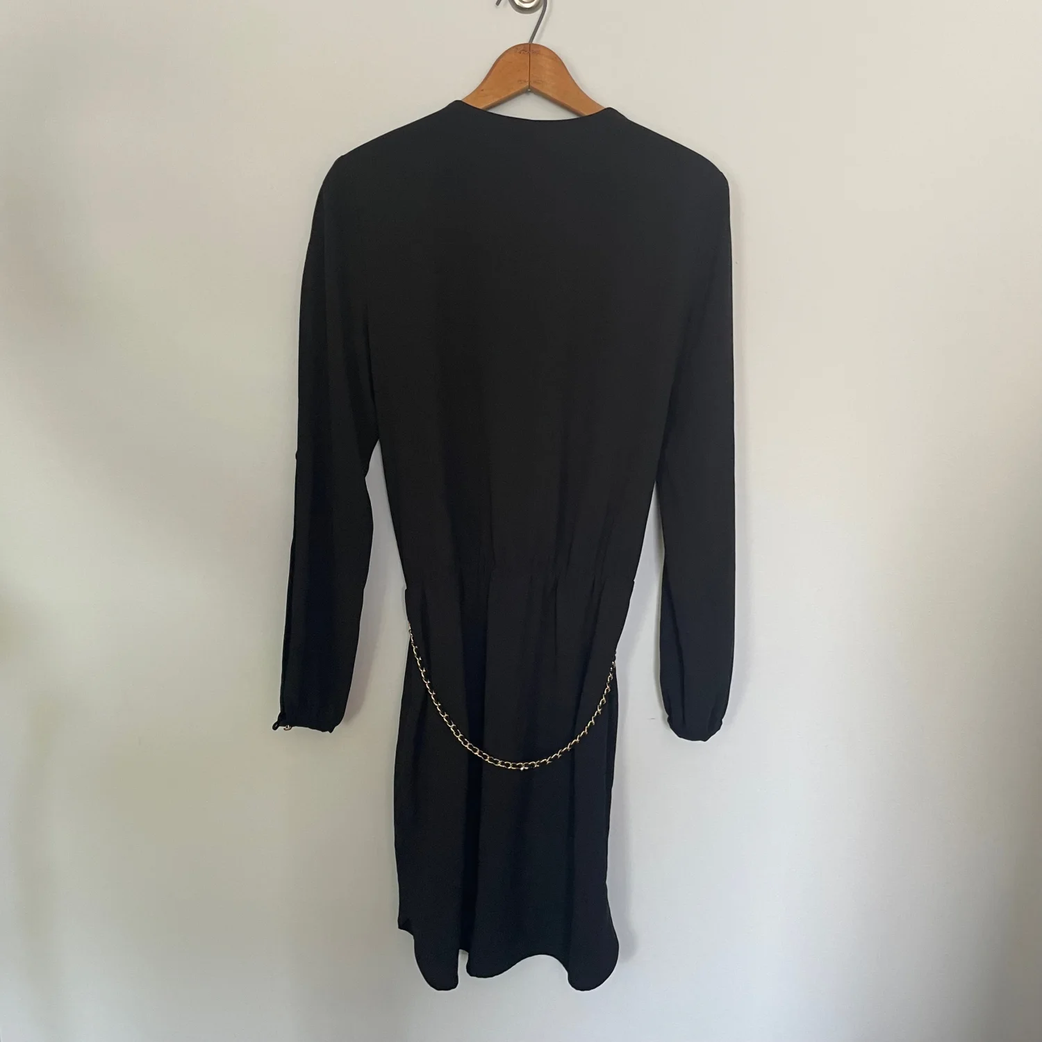 Cache Long Sleeve Dress with Leather and Metal Chain Belt- Black- Size 10