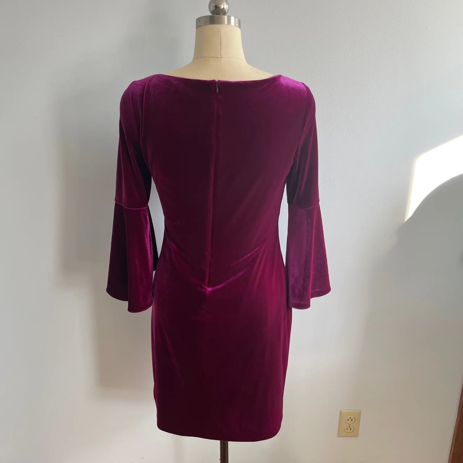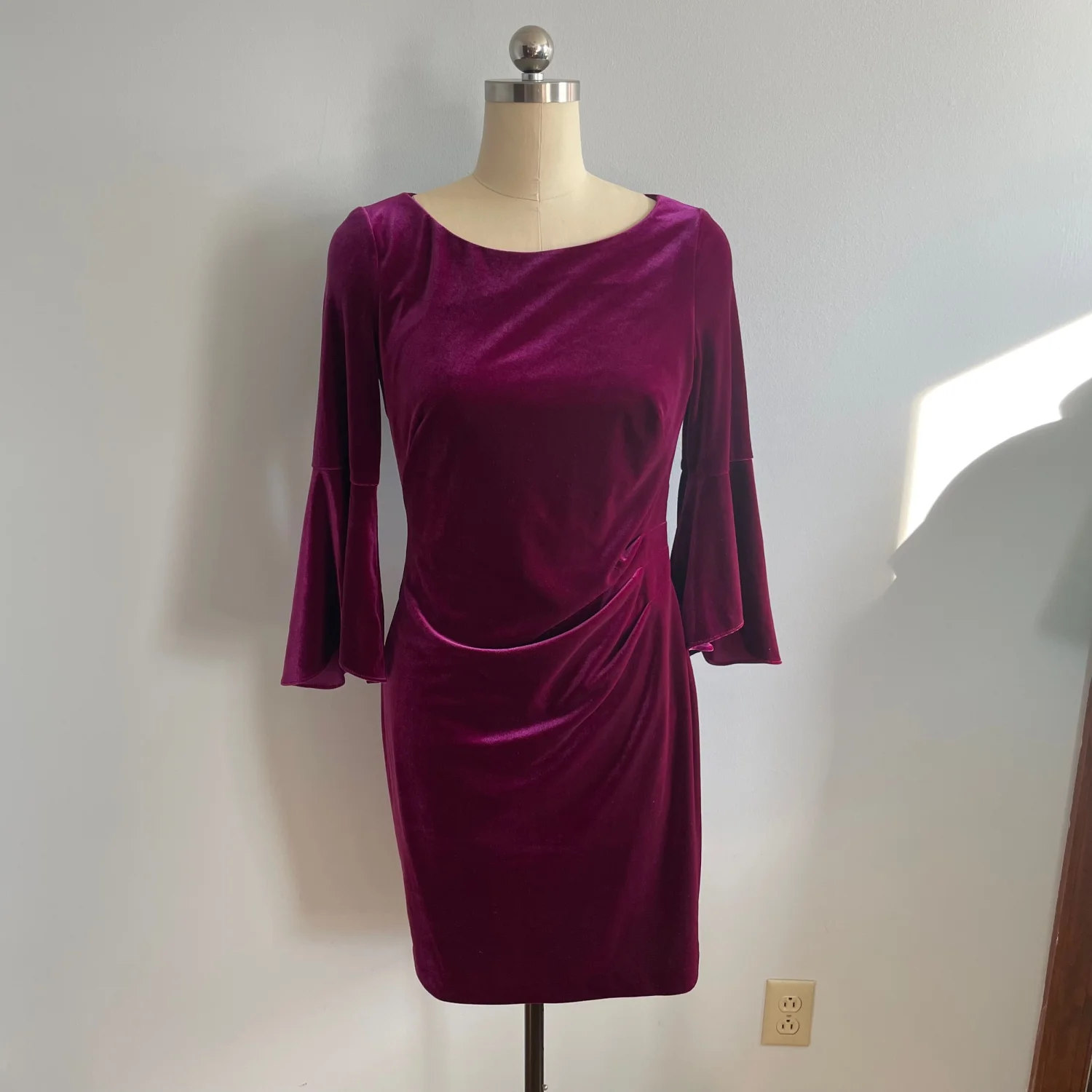 Lauren Ralph Lauren Elegant Velvet Dress- Bell Sleeve- Purple- Size 10