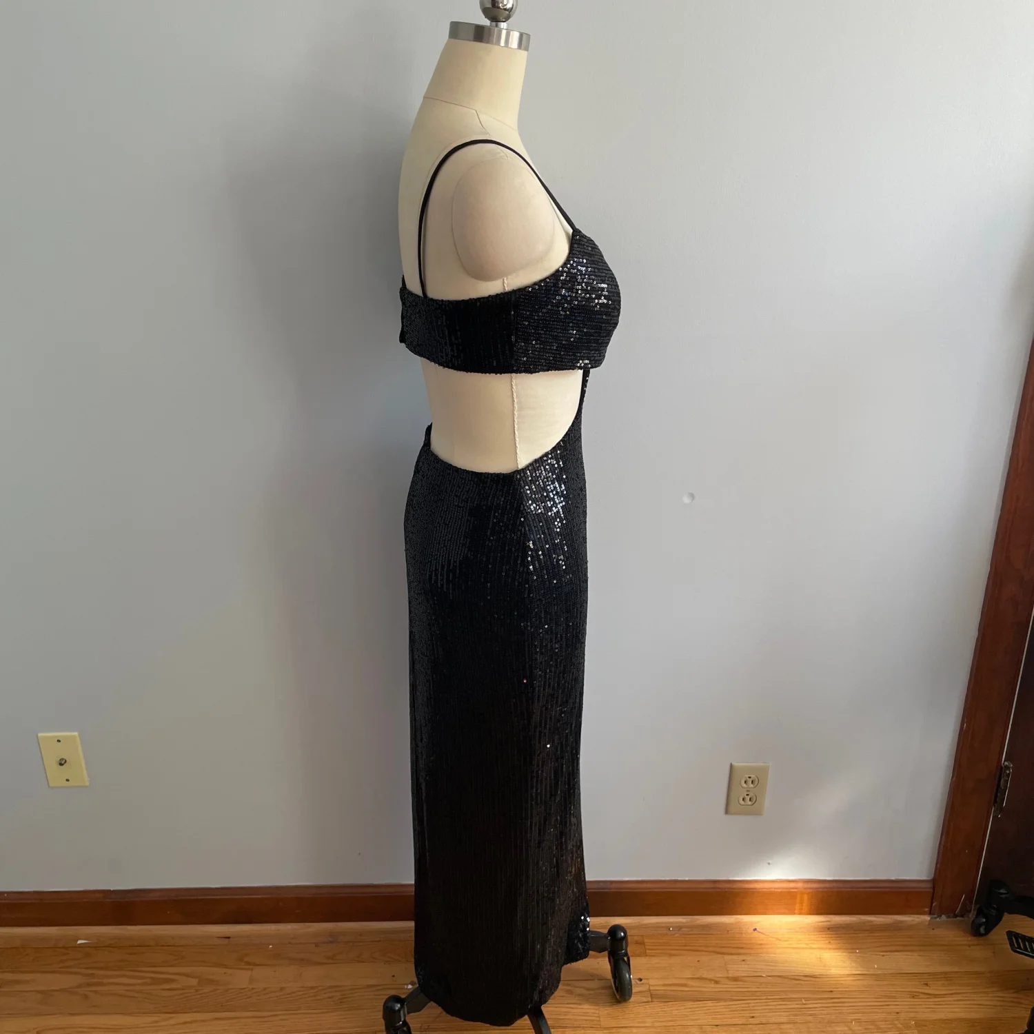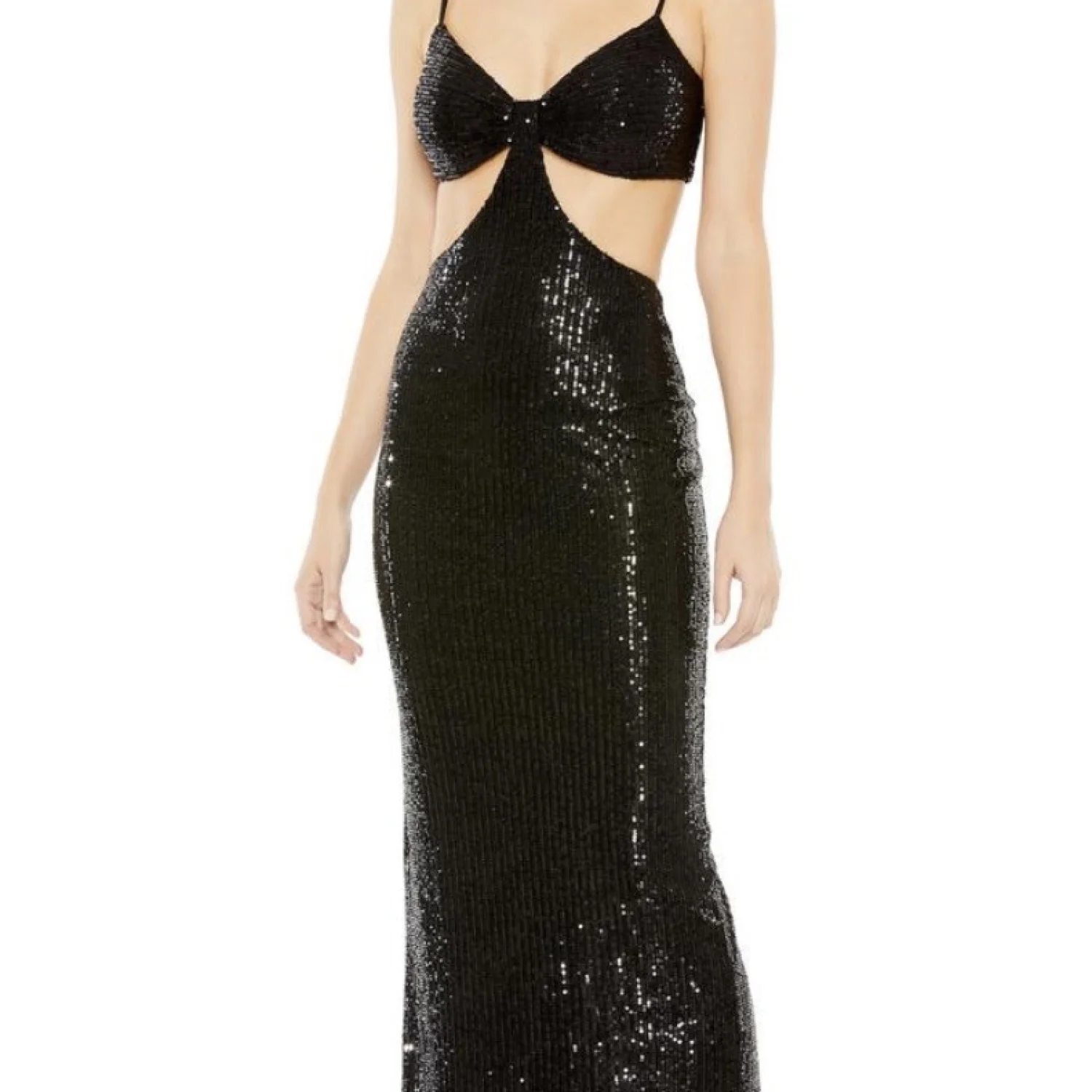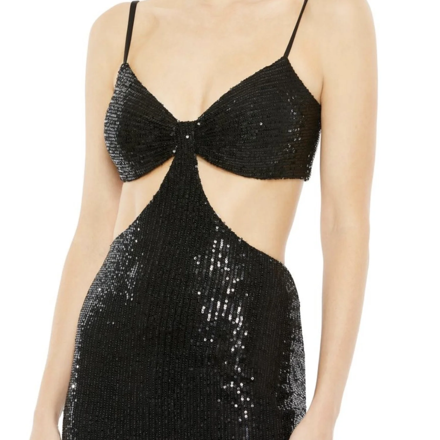 Mac Duggal Sequined Spaghetti Strap Cut Out Gown- Black- Size 8- NWT
