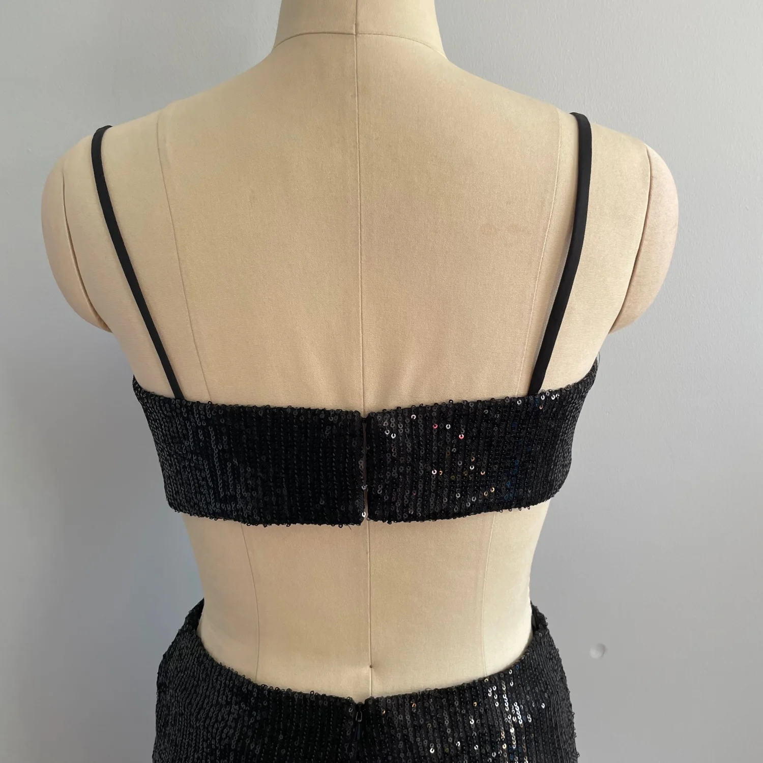 Shine in this stunning black sequin evening dress. Perfect for special occasions, this dress offers a glamorous and sophisticated look. Turn heads in this stunning sequin gown featuring a v-neckline, daring side cut-outs, and spaghetti straps. Perfect for prom, homecoming, galas, balls, and weddings! Ieena for Mac Duggal Sequin mesh overlay; 100% polyester lining Fully lined V-neck Sleeveless Spaghetti straps Side and back cutouts Concealed back zippers Approx. 59" from top of shoulder to bottom hem Available in Black Style #70130