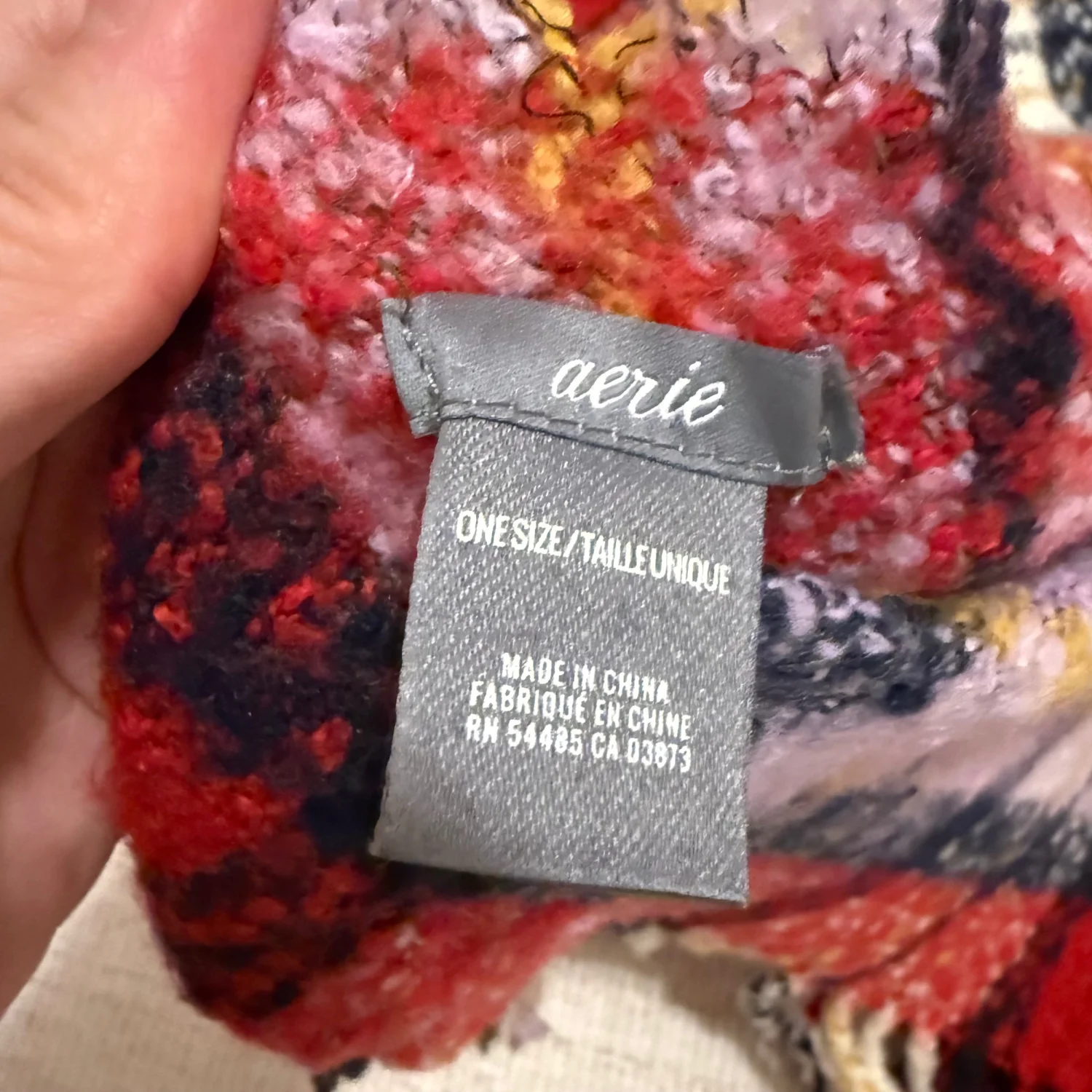 Bright and stylish knit scarf. Features a mix of red, purple, yellow, and black. Adds flair to any look. In excellent condition One size Oversized chunky scarf
