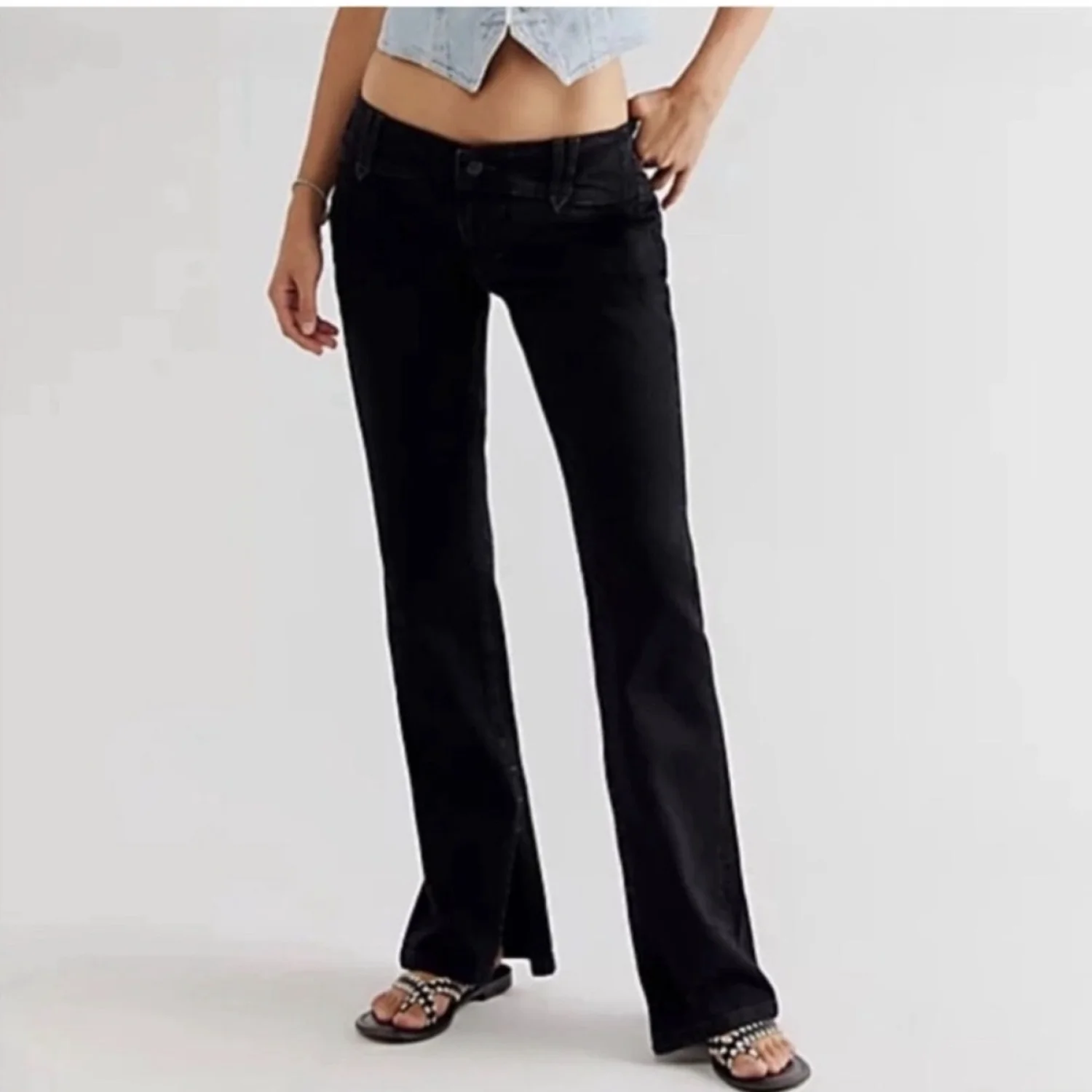 Free People Stillwater Low-Rise Slim Flare Jeans in Black Size 30 NEW