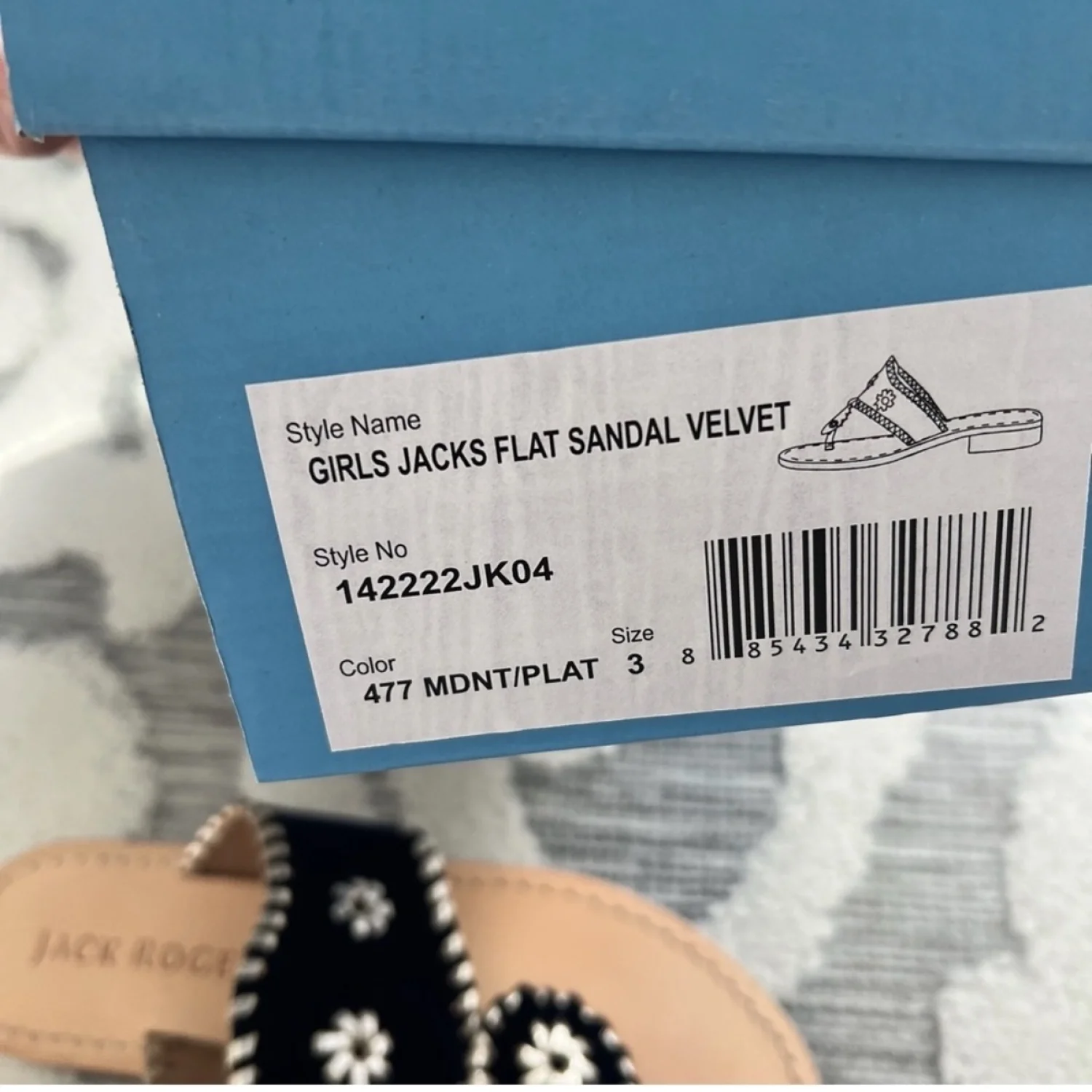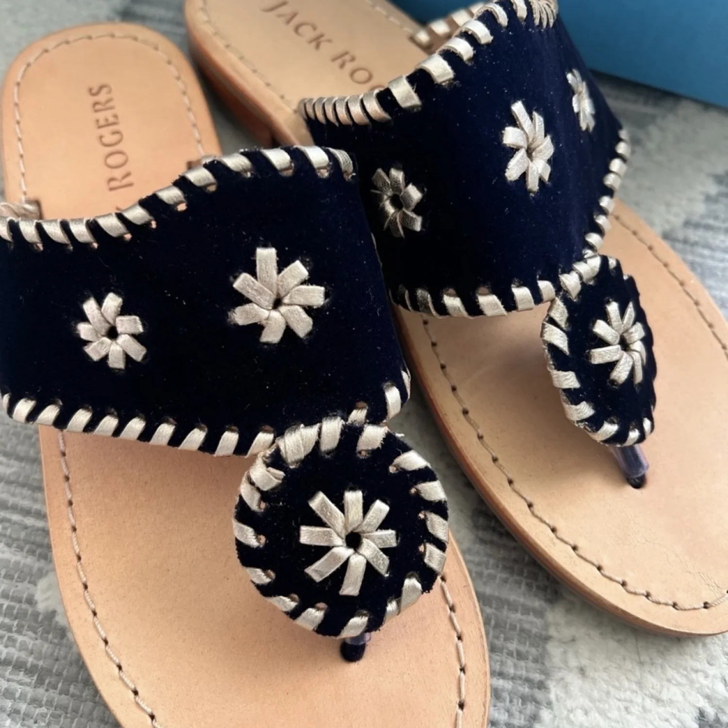 Jack Rogers Girls Jack Velvet Flat Sandal in Navy Blue Size 3 NEW