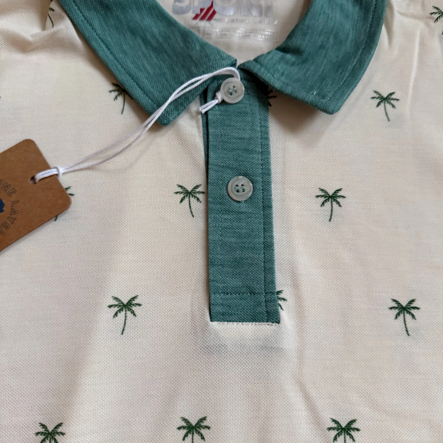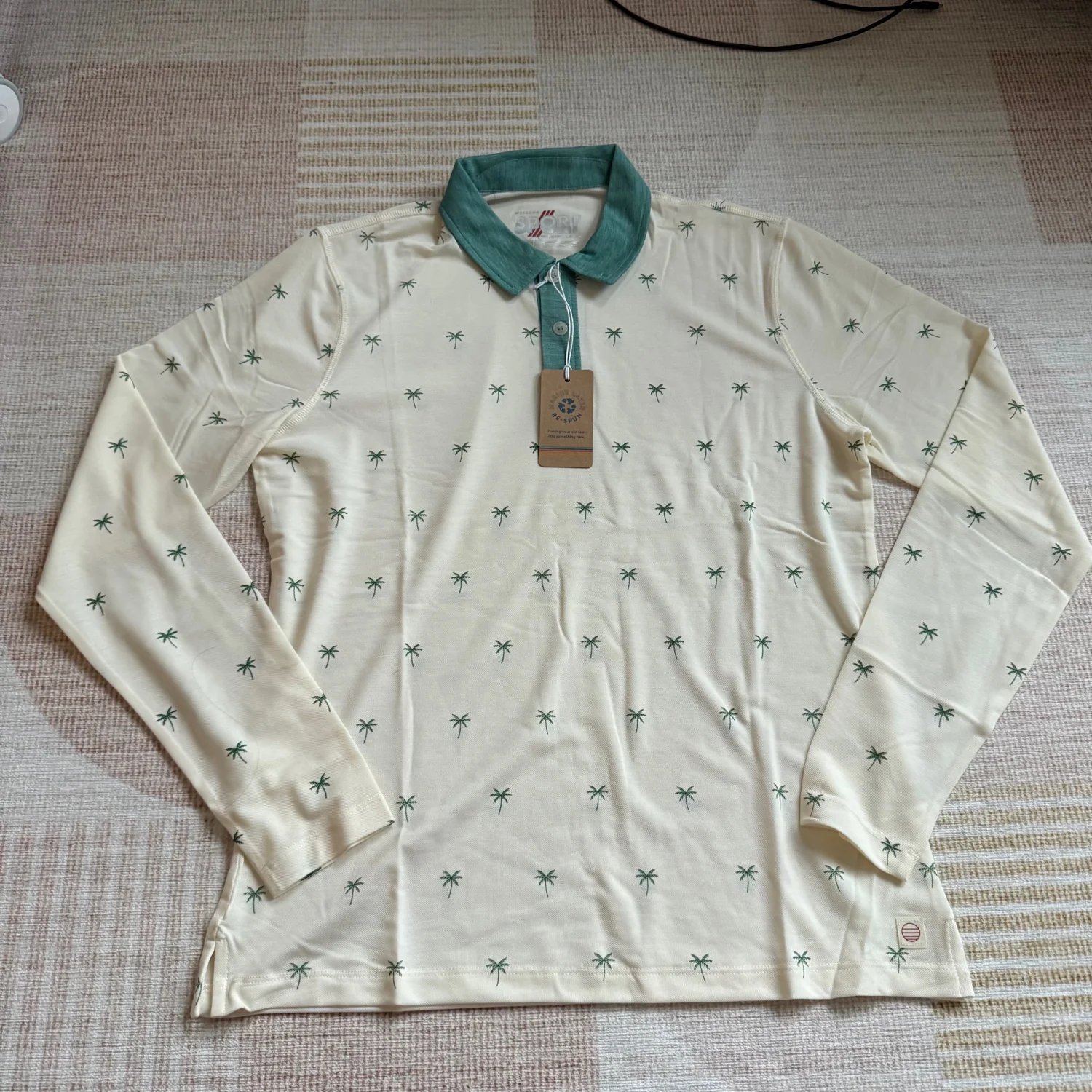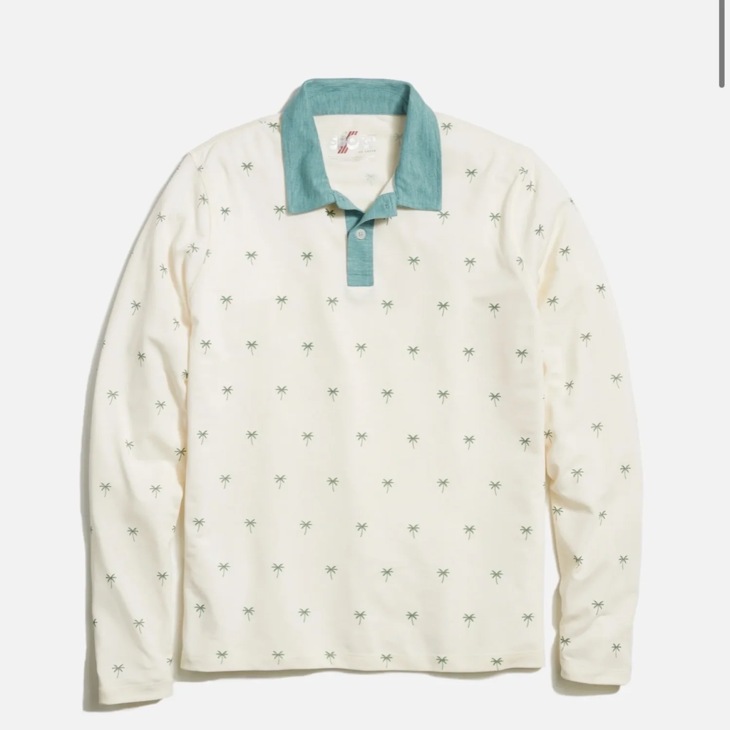 Marine Layer Long Sleeve Air Polo in Green Palm Print Size Small NWT