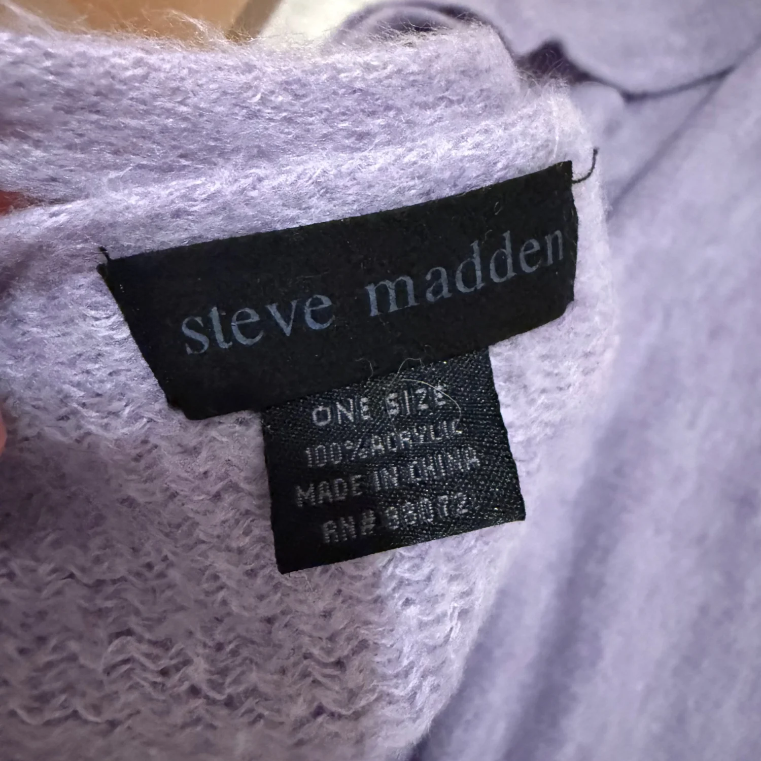 Soft lavender knit scarf by Steve Madden. Cozy and stylish. In excellent condition One size Soft & cozy oversized scarf for added warmth!