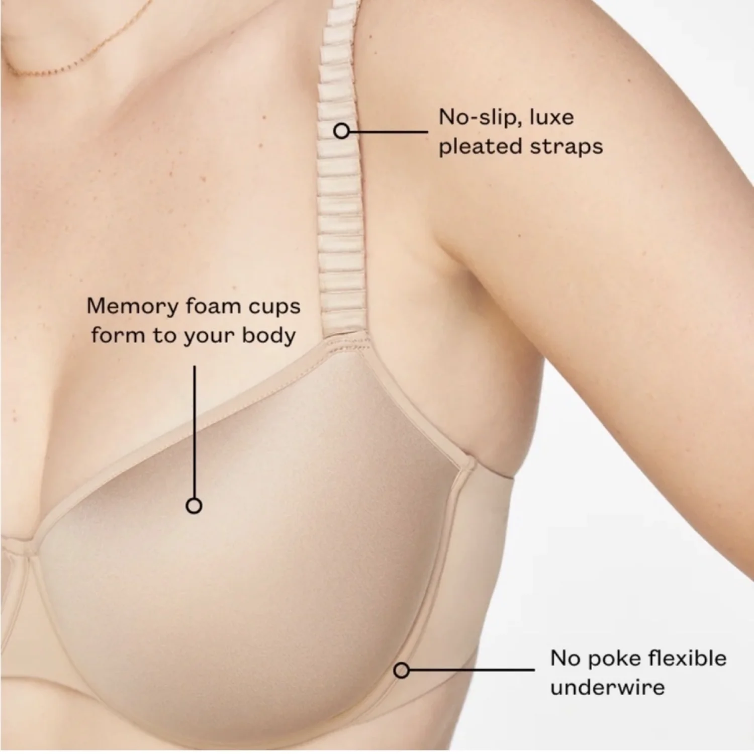 The first bra ever made in half cup sizes. Unmatched 24/7® fit, support & comfort, every day. Invisible under everything from T-shirts to cocktail dresses. Memory foam cups mold to your shape & hide nipples Adjustable straps with stay-put pleat – no slipping No-show double-layer back Unmatched fit in exclusive half cup sizes True to size Moderate (demi) coverage 76% nylon/24% Spandex Machine wash in cold, lay flat to dry Use a lingerie bag for machine was