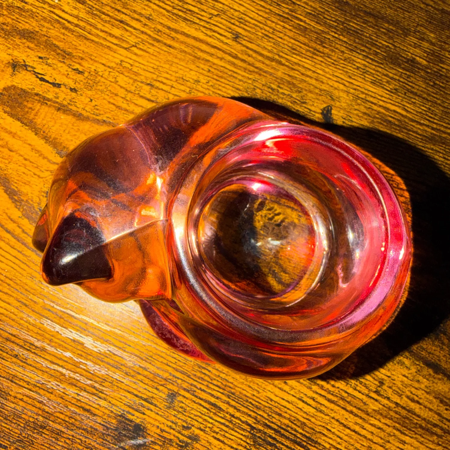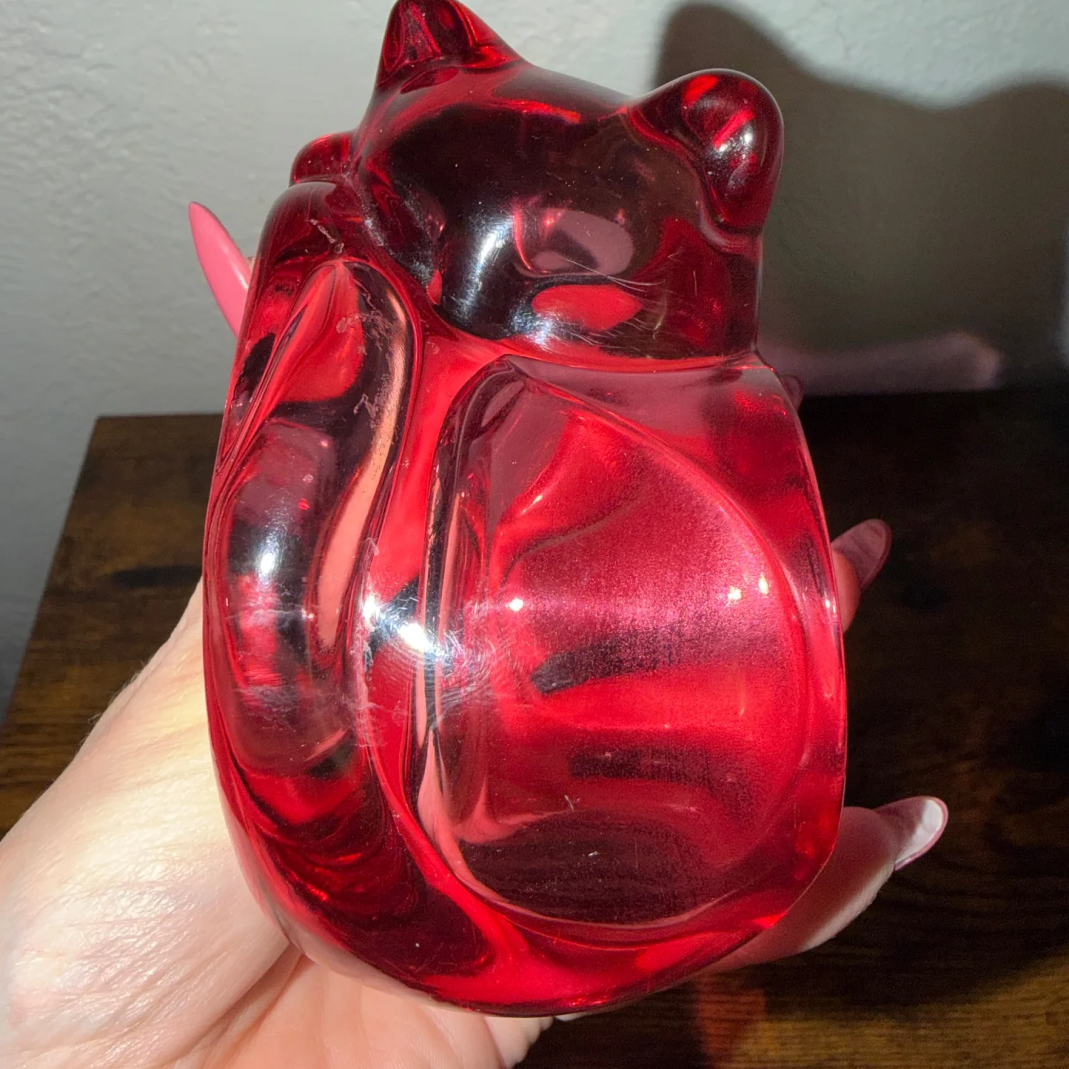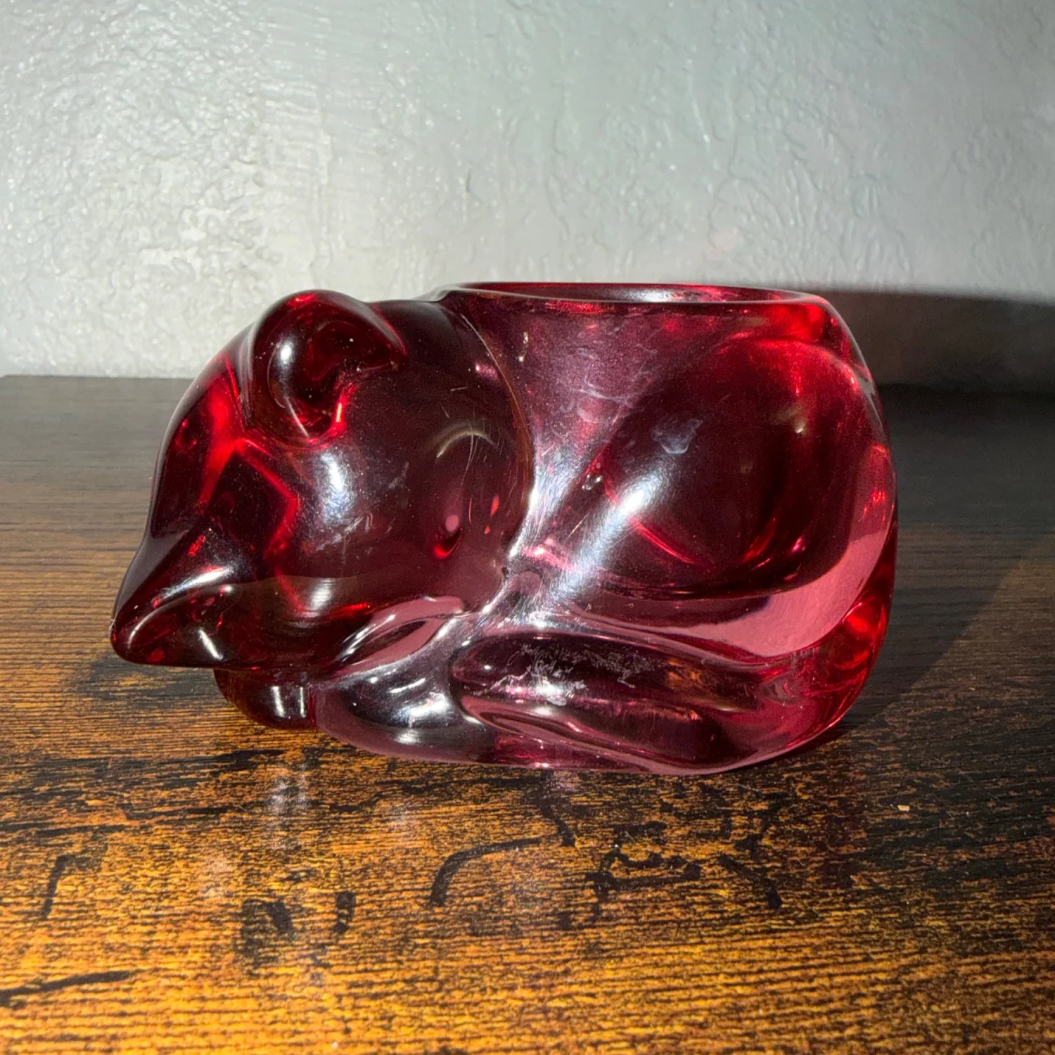 Vintage Indiana glass cat votive candle holder in cranberry pink 80’s decor