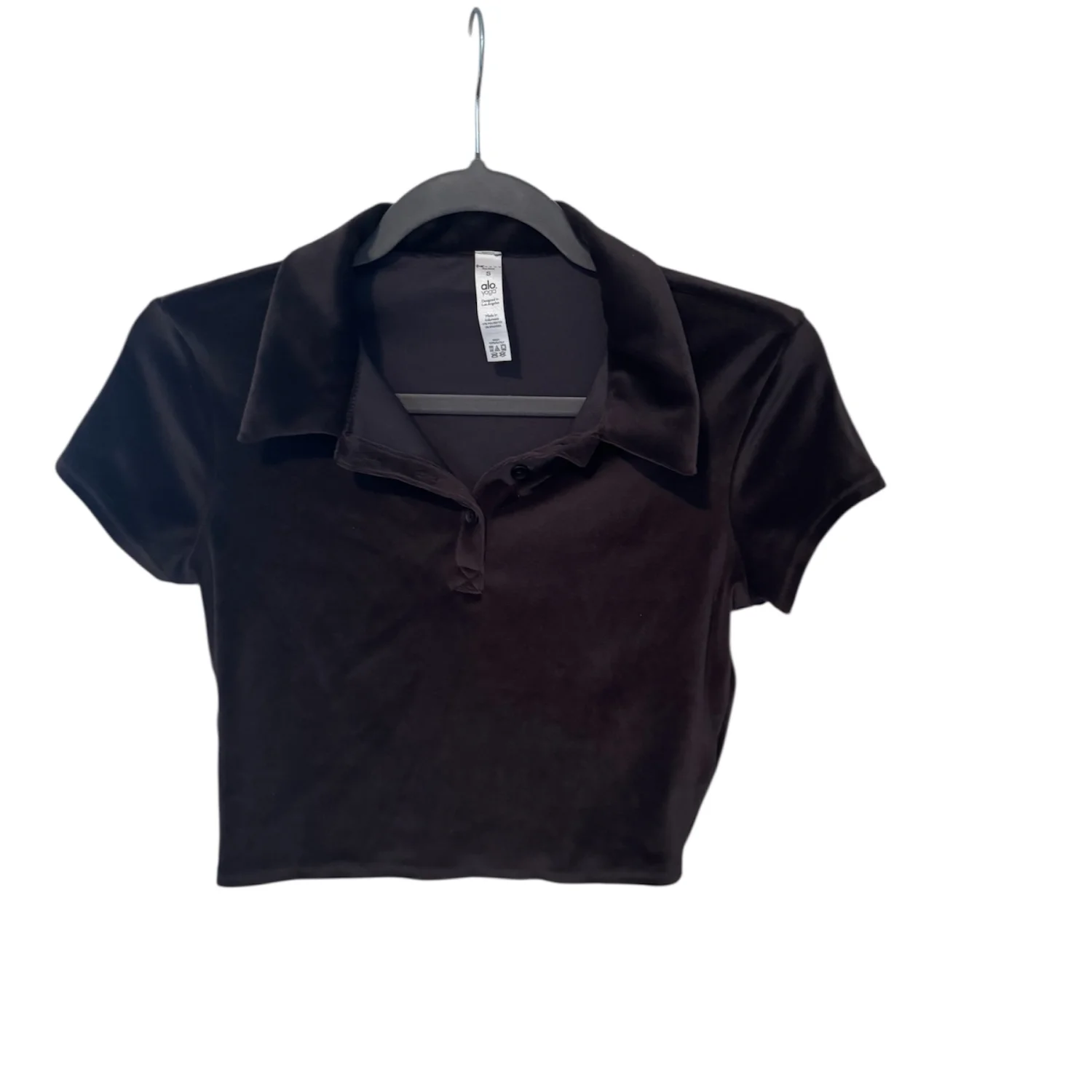 NWOT ALO Velour Crop Top size S. Color black, tags removed when tried on.