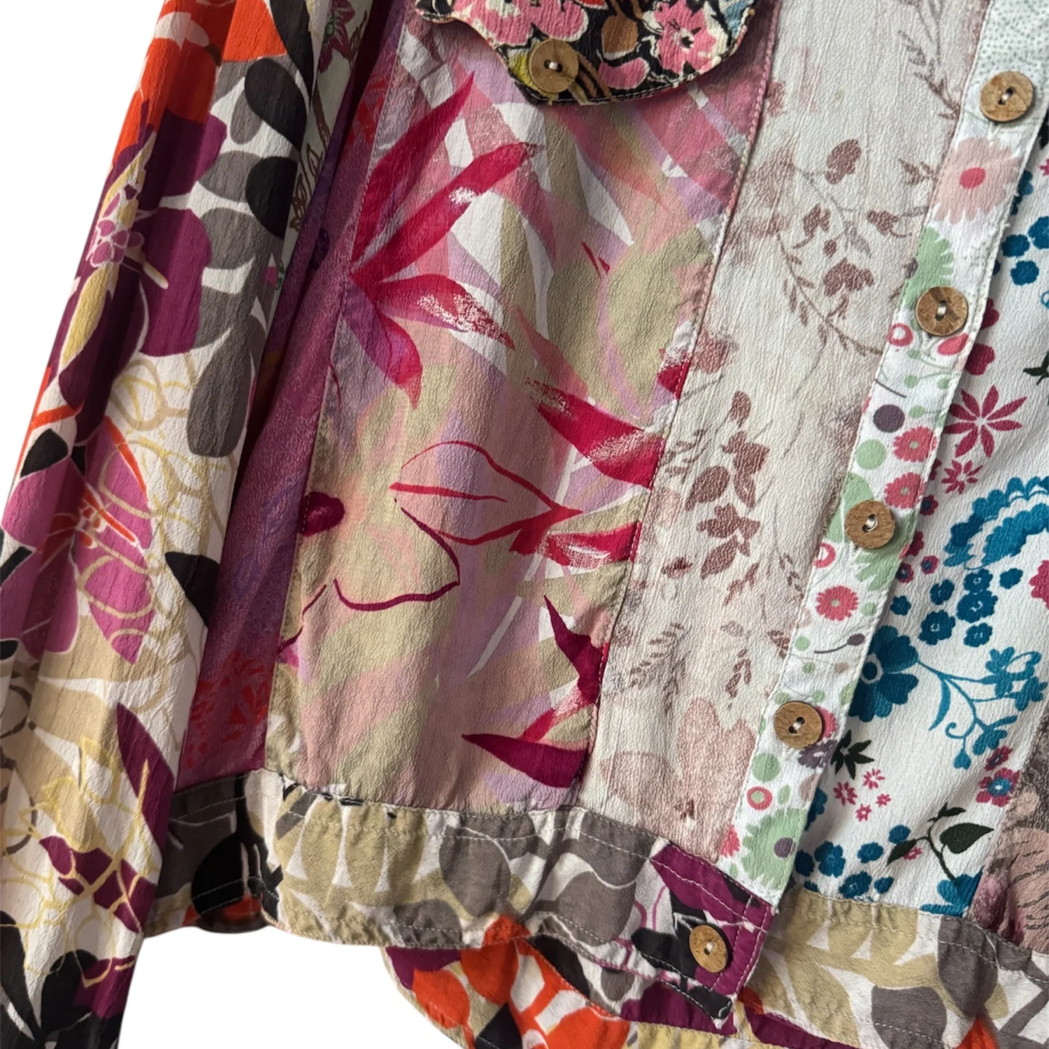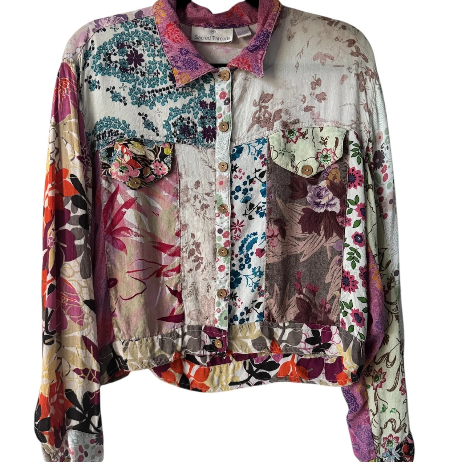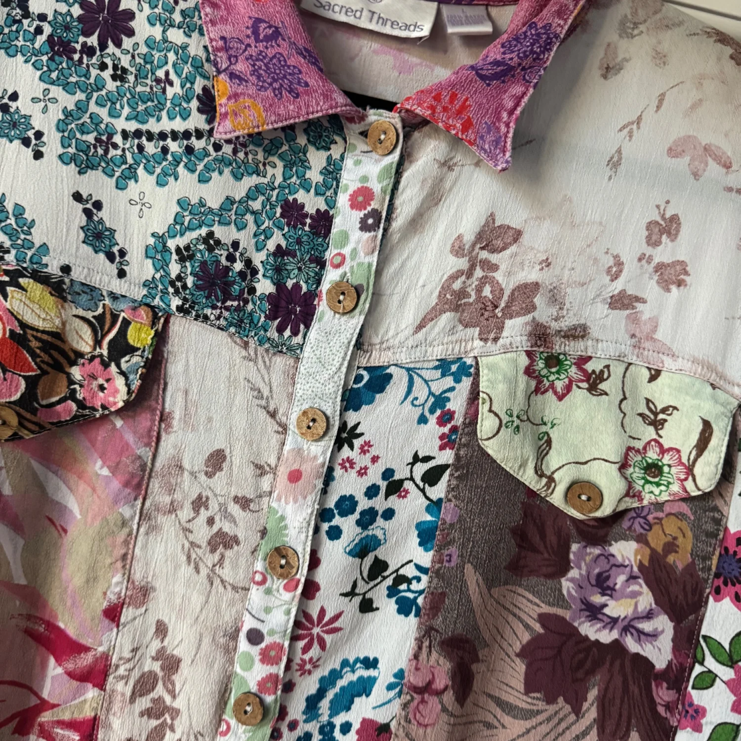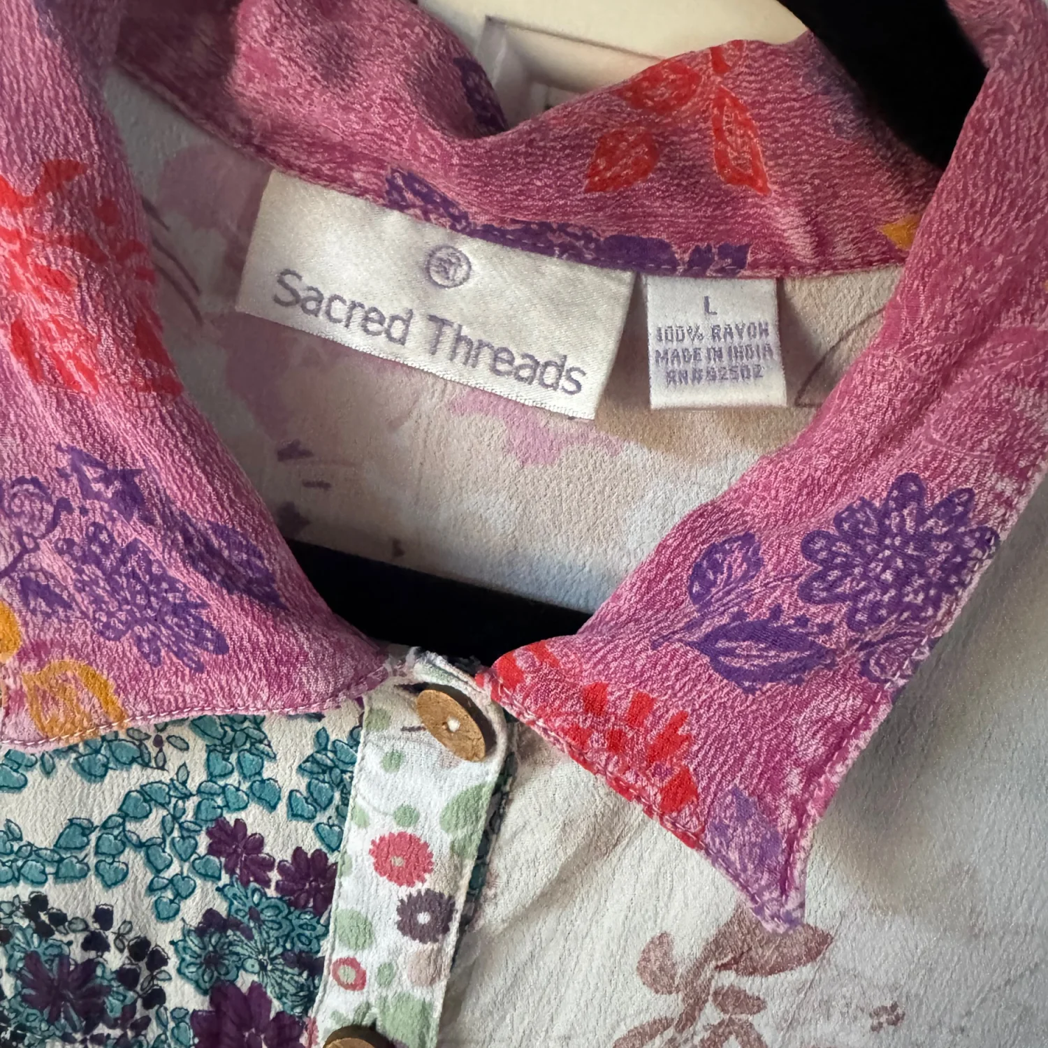 Vintage Sacred Threads Boho Floral Patchwork Top, size L