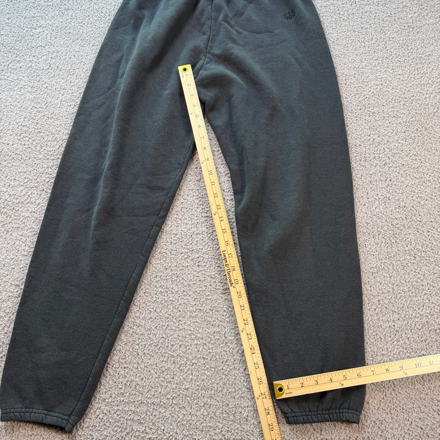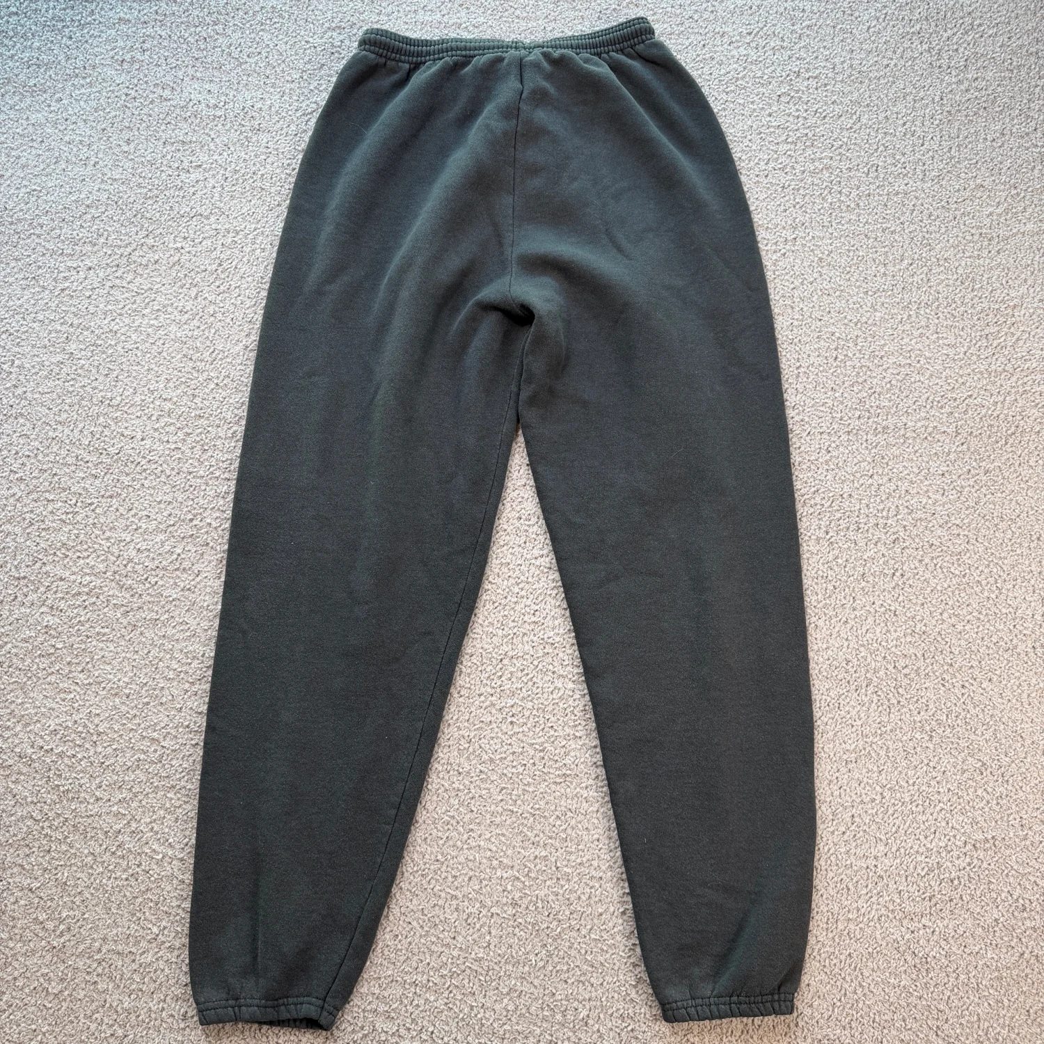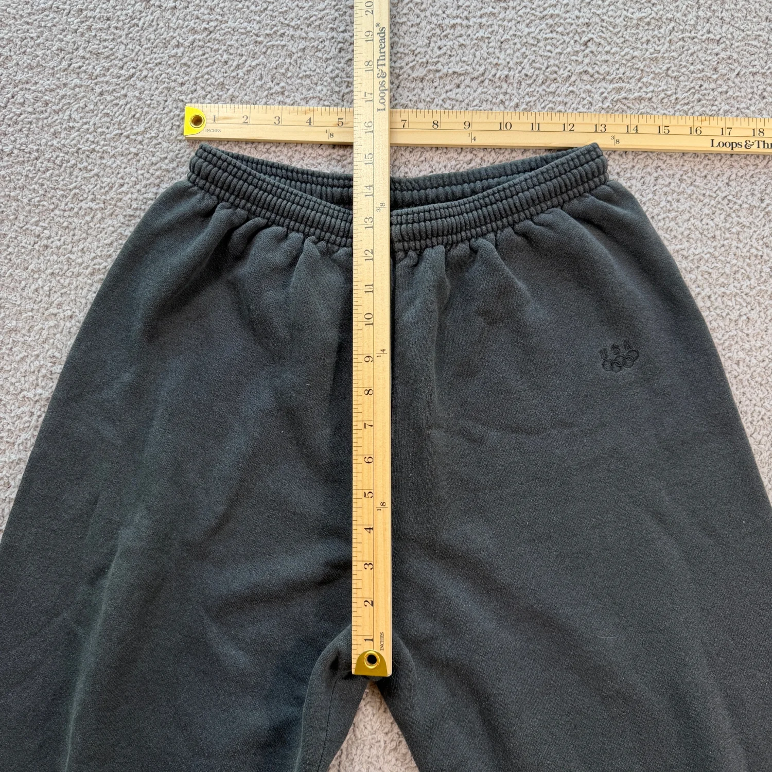 Vintage USA Olympics sweatpants in a charcoal grey color, featuring an embroidered USA Olympics logo on the leg. Made from a cozy fleece material with an elastic waistband for comfort. The inside label indicates exclusive distribution by JCPenney. Perfect for casual wear or lounging, these sweatpants add a touch of Olympic history to your wardrobe. #vintage #olympics #sweatpants