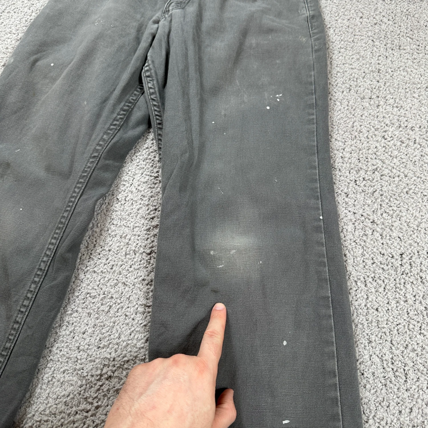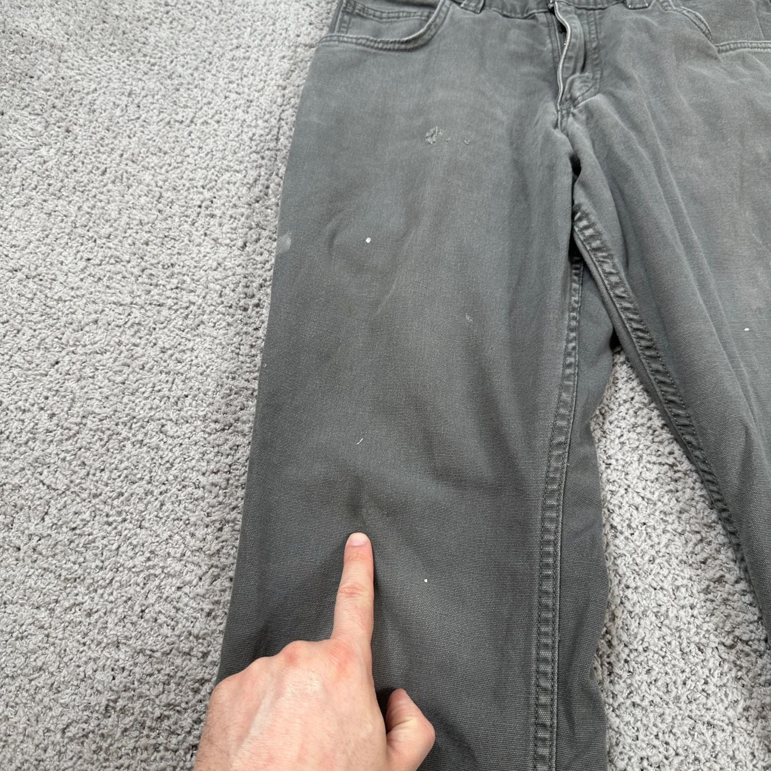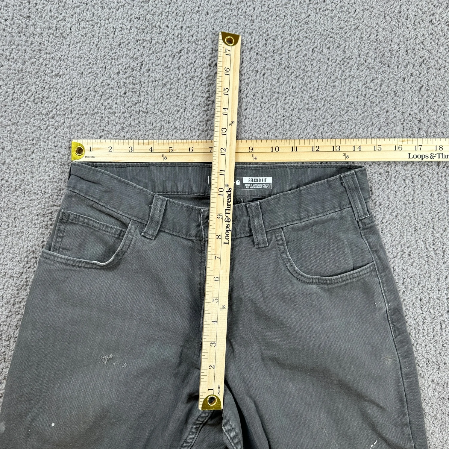 Authentic Carhartt Rugged Flex relaxed fit canvas work pants. Size 30x28 (see measurements). Charcoal gray with natural fading and light paint marks from wear. No holes or structural damage. Comfortable stretch canvas, great for workwear or casual wear. Industry: Construction Material: Canvas Gender: Men Country of Origin: Nicaragua Keywords: Carhartt work pants, mens workwear, canvas pants, relaxed fit, rugged flex, utility pants, durable, outdoor, construction, heavy duty, casual, labor I answer most questions instantly! Please don't hesitate to contact us if you have any questions, we will be glad to answer! Thank you for shopping!