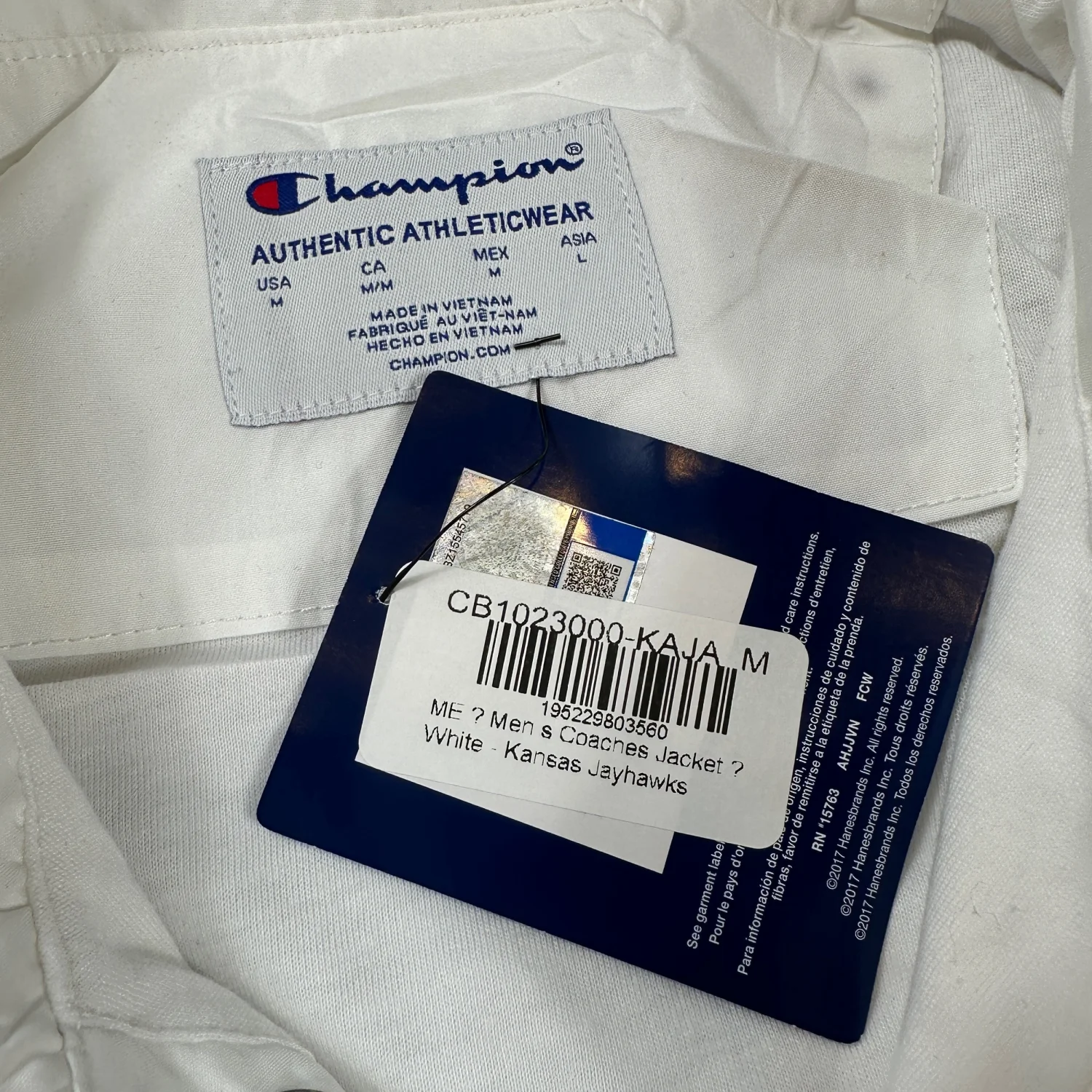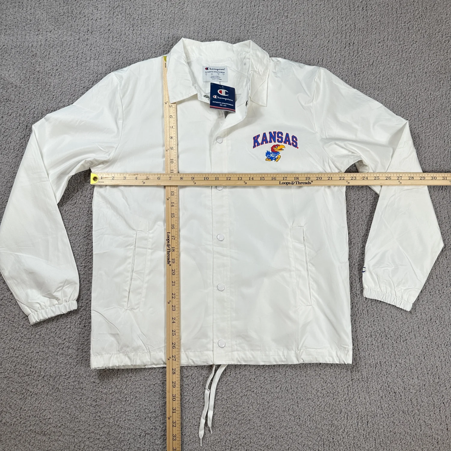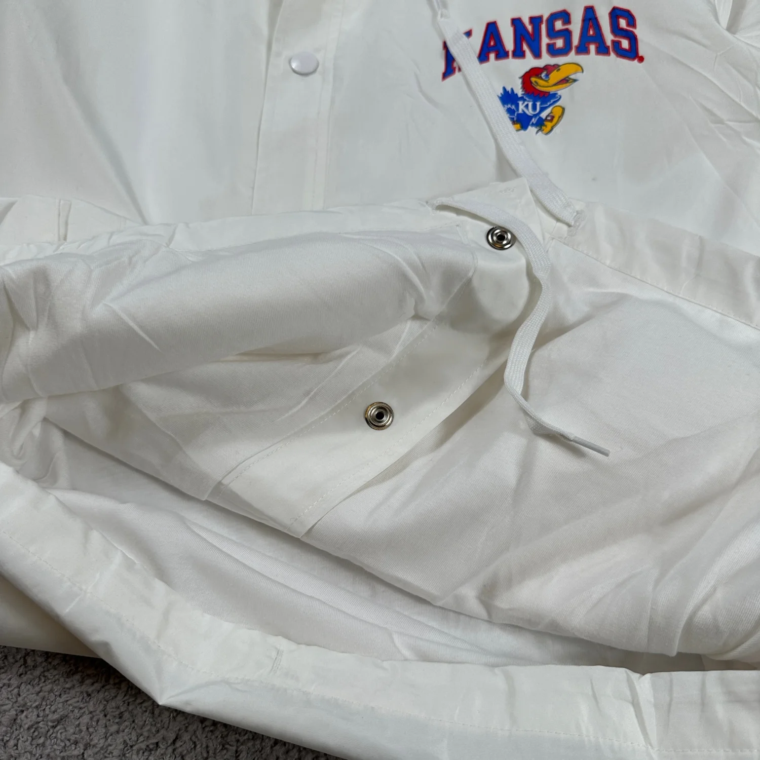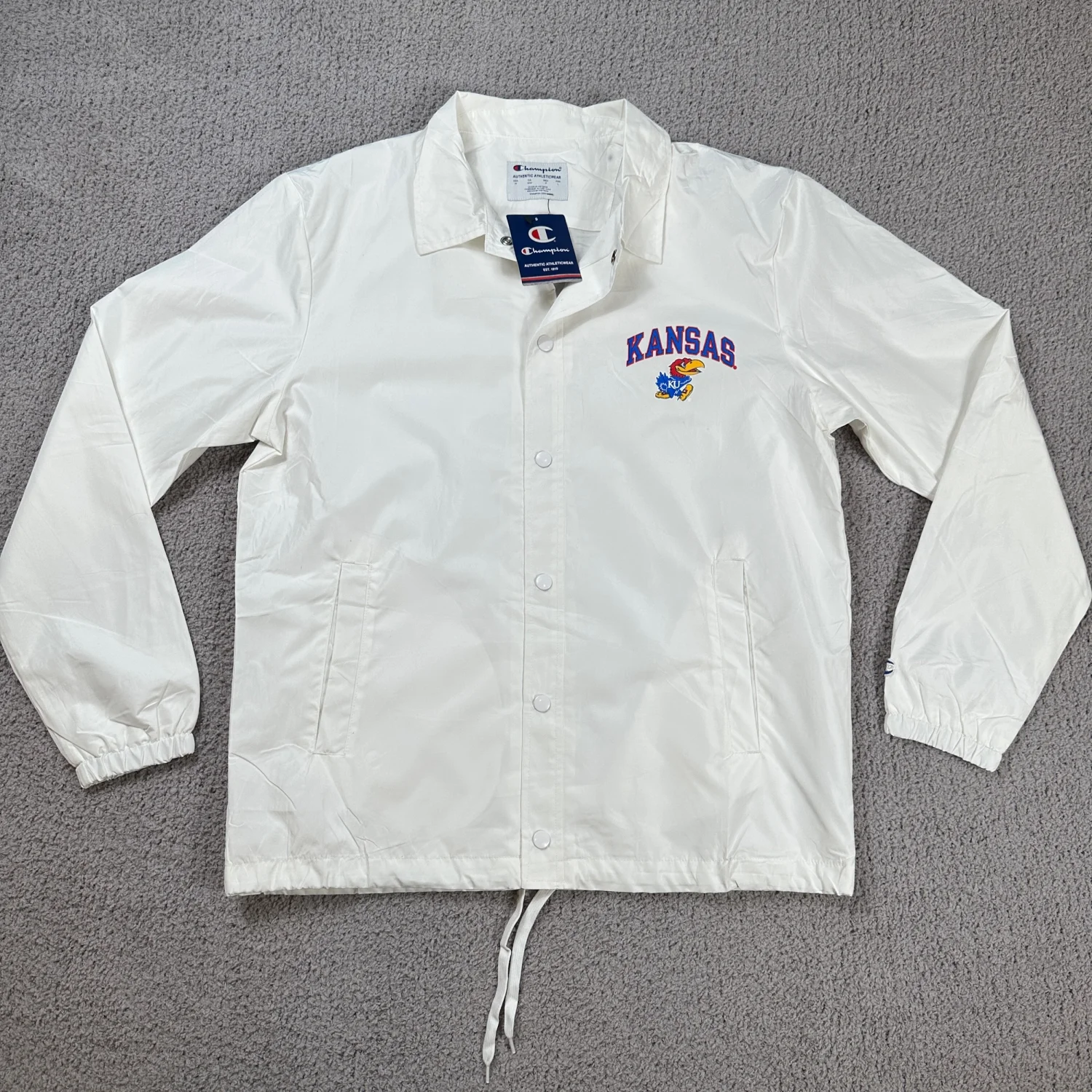 Champion Kansas Jayhawks White Coaches Jacket Snap Button Lightweight University