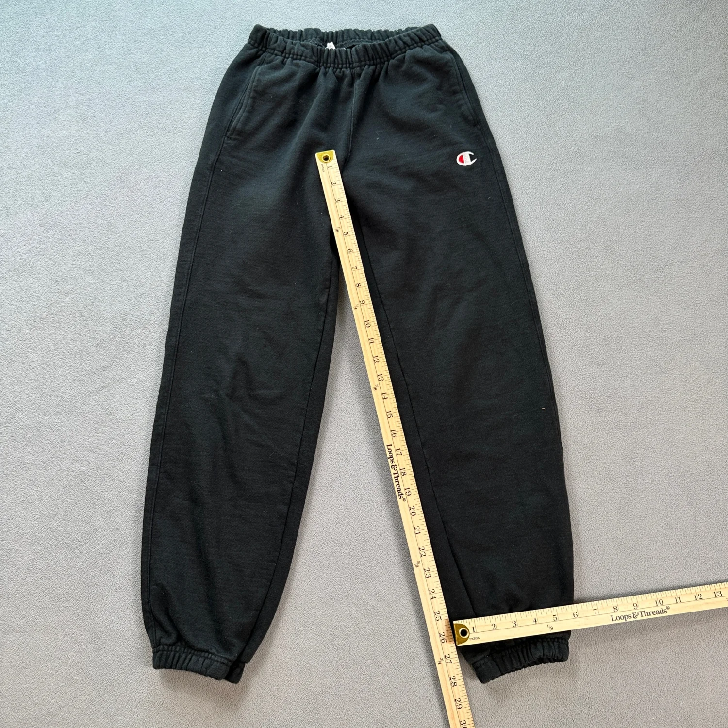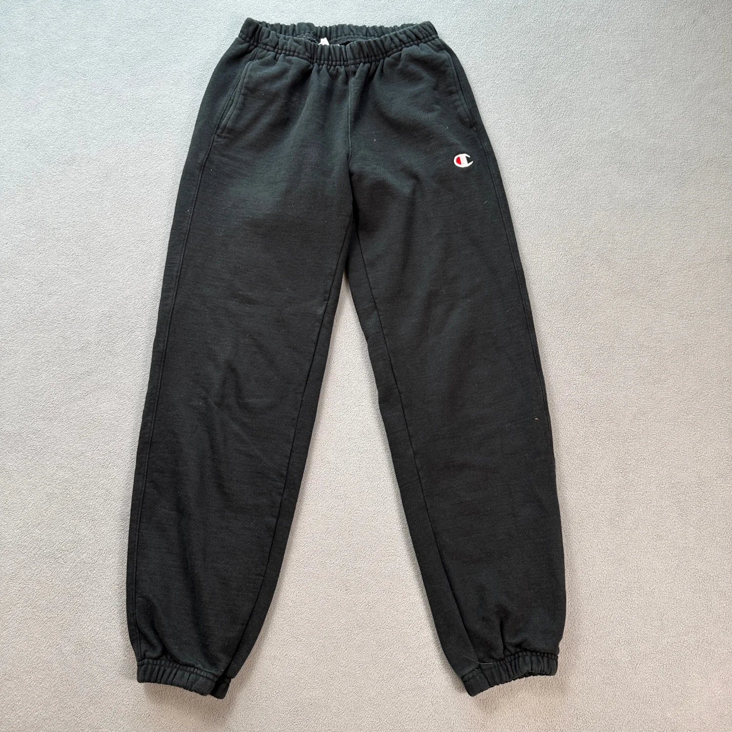 These Champion Reverse Weave sweatpants in black feature the classic embroidered logo. Made from a durable and comfortable fabric, they come with an elastic waistband and cuffs. Perfect for casual wear or workouts. Size X-Small. #Champion #CasualWear #Athleisure