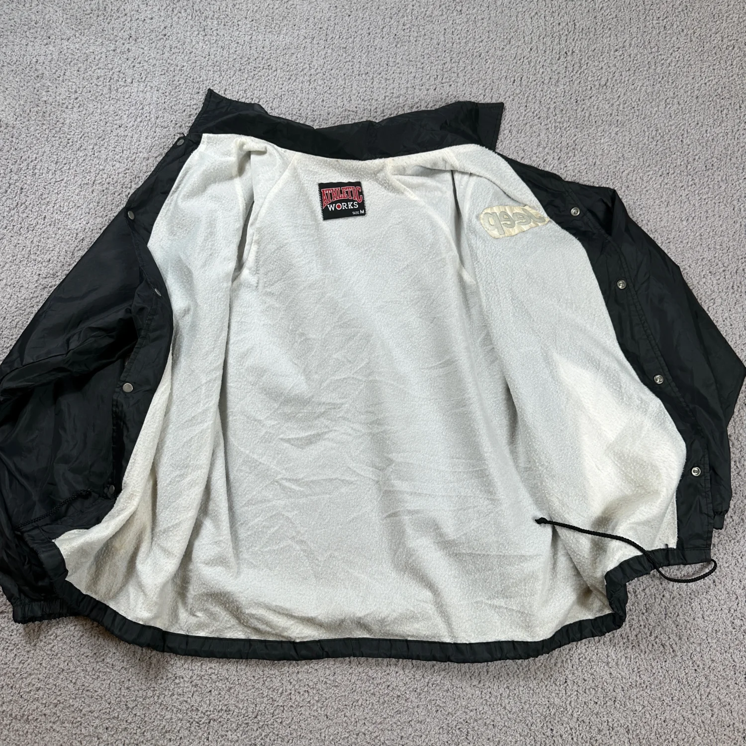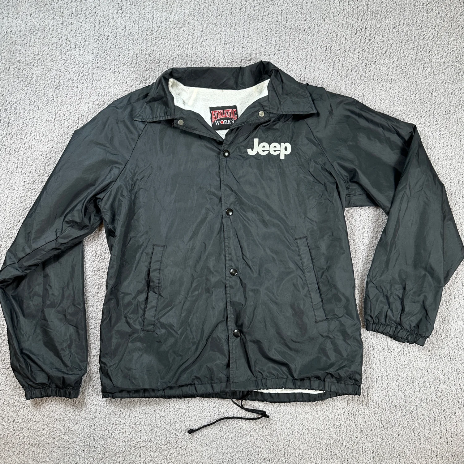 Condition: Good Good condition! No rips, holes, or stains. Normal wear consistent with age. I ship items out EVERY DAY so EXPECT a QUICK delivery! Type: Jacket Style: Windbreaker Outer Shell Material: Nylon Department: Men Closure: Snap, Drawstring Fabric Type: Fleece Insulation Material: Polyester Occasion: Casual Performance/Activity: Walking, Gym & Training Accents: Logo, Button Collar Style: Point Keywords: Jeep jacket, Coach jacket, Windbreaker, Snap button, Fleece lined, Embroidered logo, Outdoor, Casual wear, Streetwear, Athletic wear, Spring jacket, Fall jacket, Comfortable I answer most questions instantly! Please don't hesitate to contact us if you have any questions, we will be glad to answer! Thank you for shopping!