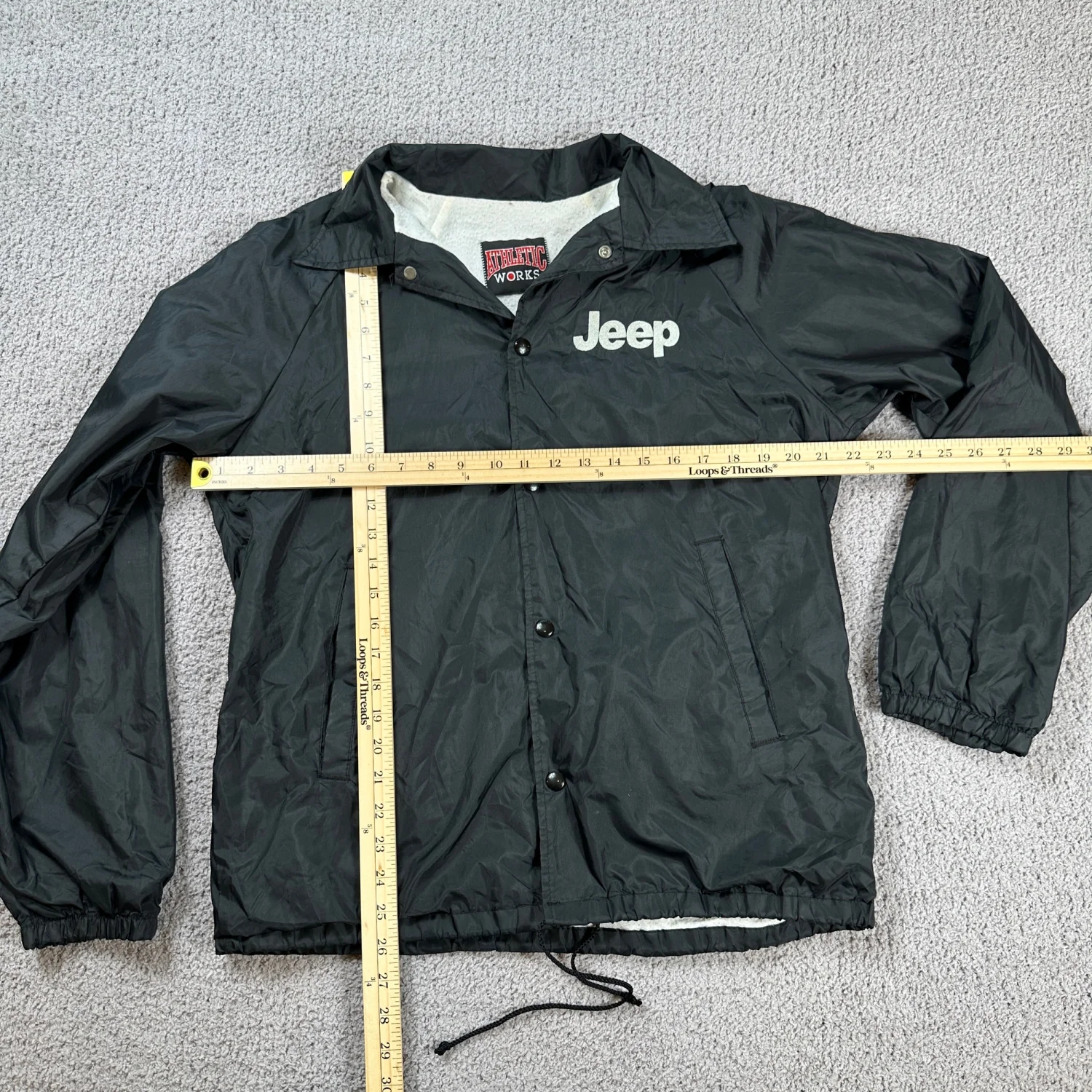 Jeep Coach Jacket Mens M Black Fleece Lined Windbreaker Athletic Works Sap Butto