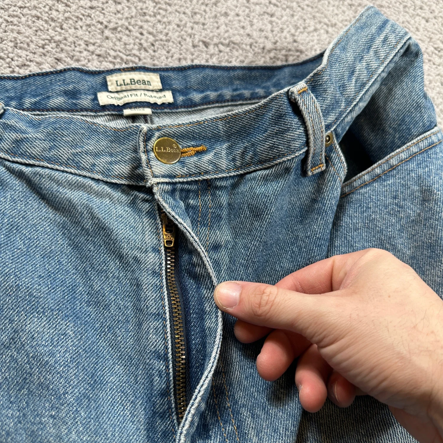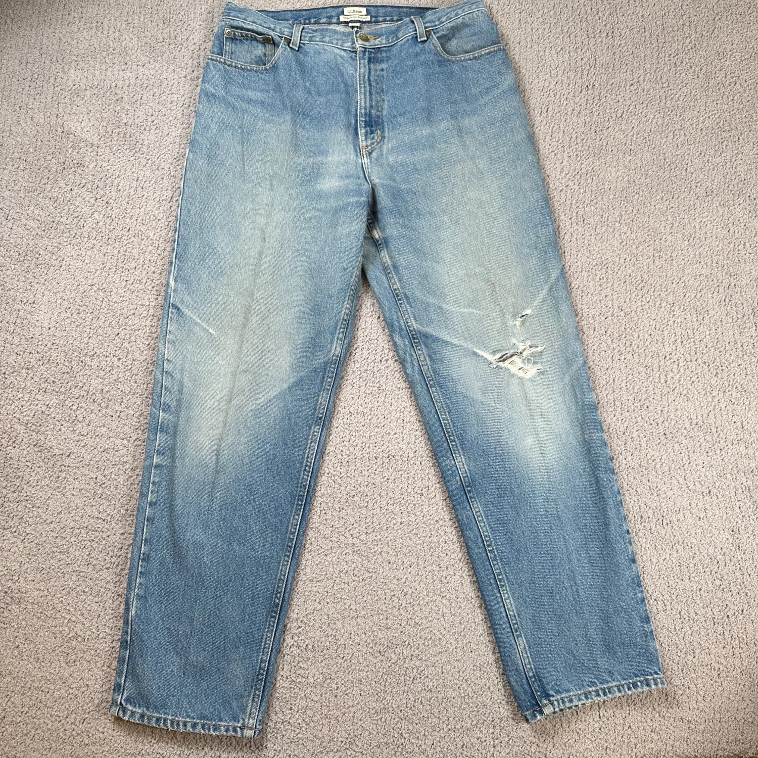 L.L.Bean original fit relaxed denim jeans in a classic blue wash. Women's size 16 MT (medium tall). 100% cotton denim, made in Mexico. Comfortable relaxed fit with natural fading and one small distressed area on the leg (see photos). Style: Straight Department: Women Fabric Wash: Light Waist Size: 32 in Type: Jeans Accents: Zipper, Logo, Button Features: Pockets, Distressed, Stretch Fit: Relaxed Pattern: Solid Rise: Mid (8.5-10.5 in) Fabric Type: Denim Material: 100% Cotton Closure: Zip, Button Season: Spring, Summer, Fall, Winter Keywords: LL Bean Jeans, Relaxed Fit Jeans, Distressed Denim, Light Wash Jeans, Womens Denim, Size 16 Jeans, Casual Style, Everyday Wear, Weekend Outfit, Comfortable Jeans, Mid Rise Jeans, Bohemian Style, Normcore I answer most questions instantly! Please don't hesitate to contact us if you have any questions, we will be glad to answer! Thank you for shopping!