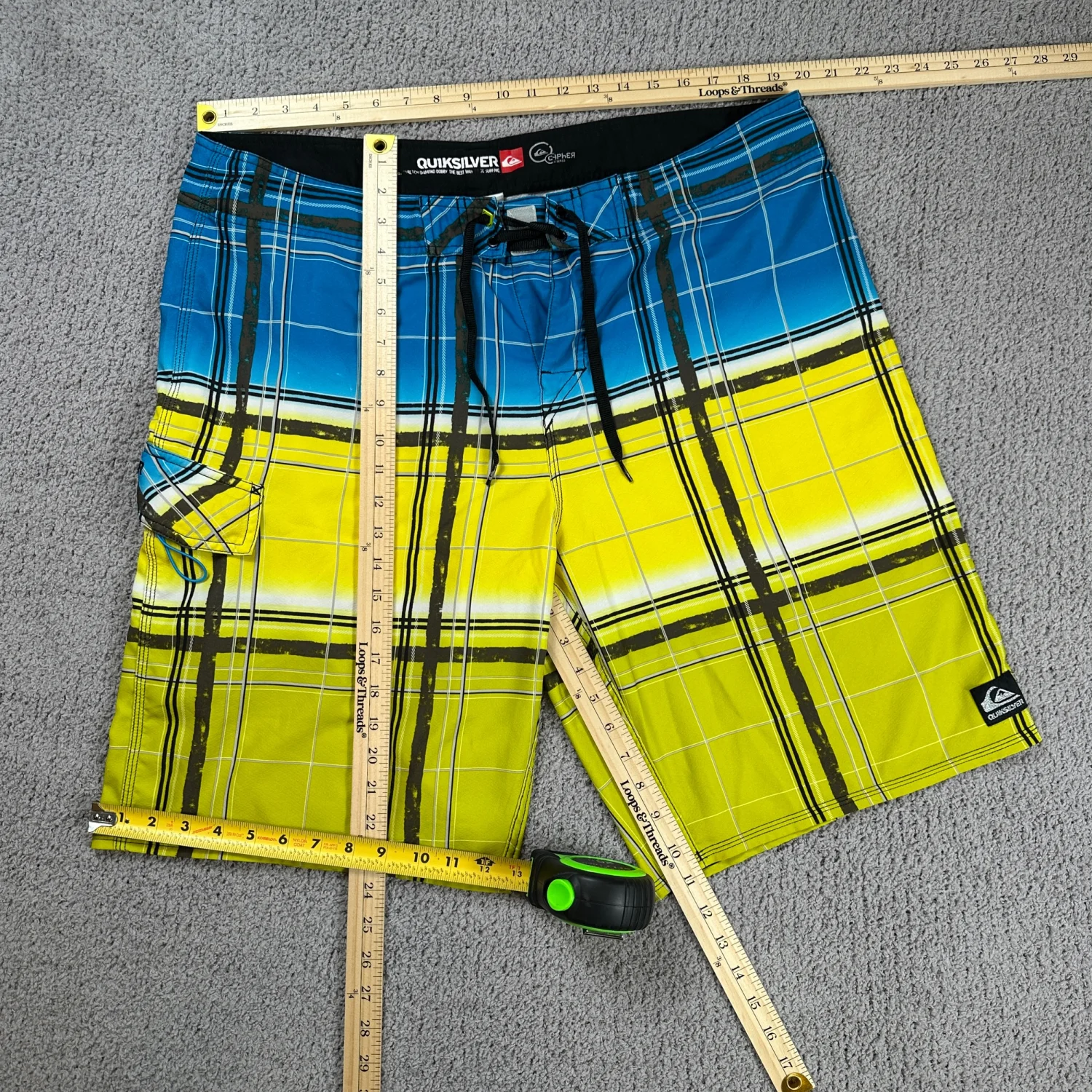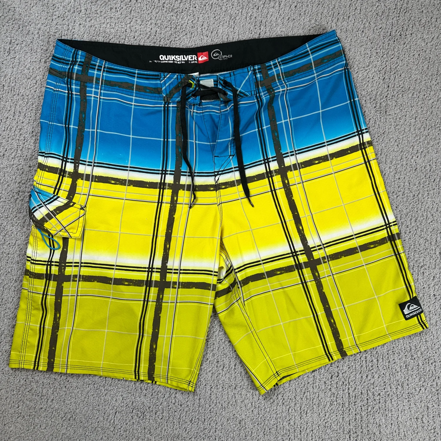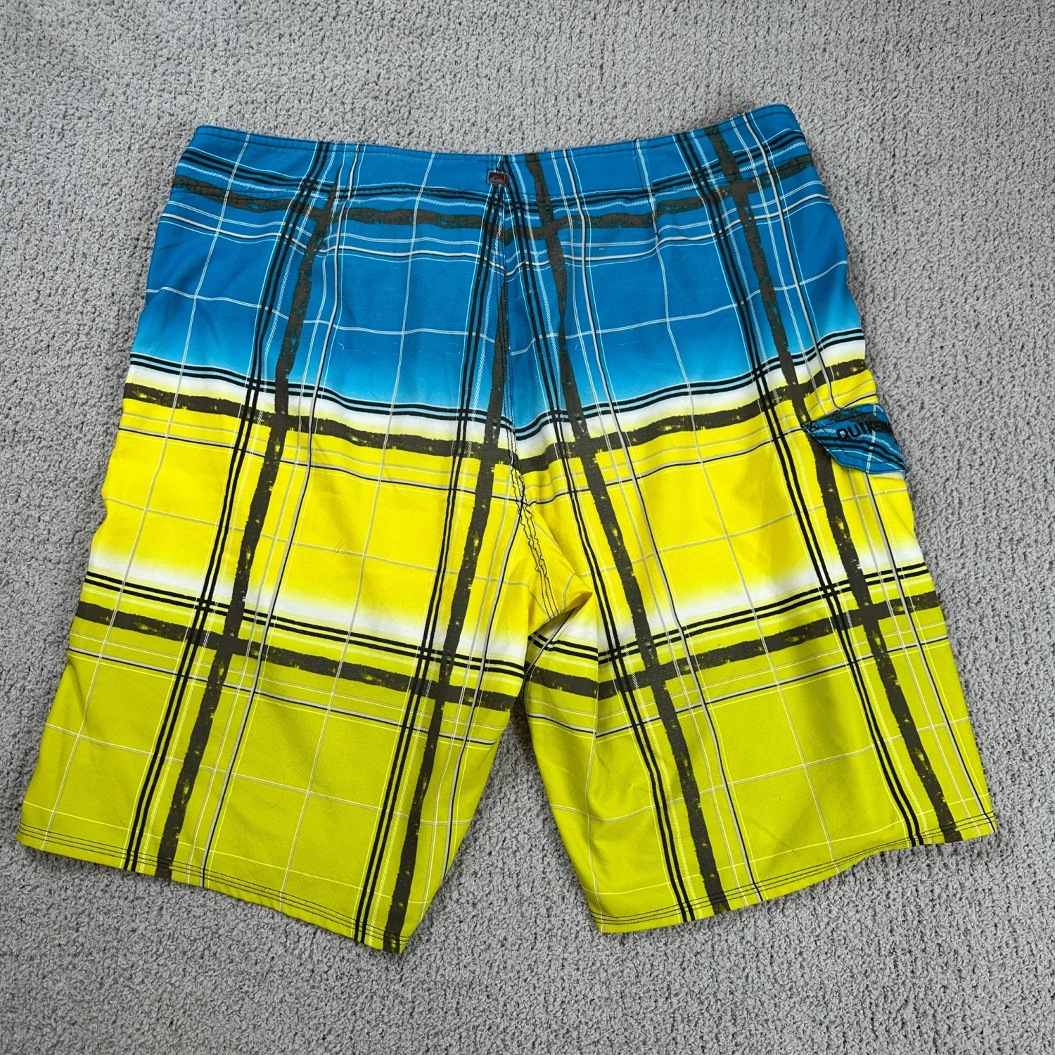 Quiksilver Blue and Yellow Plaid Board Shorts Trunks
