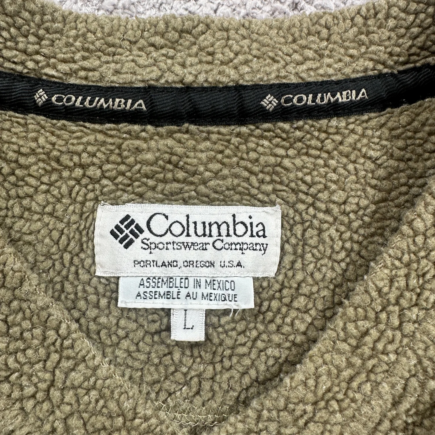Vintage Columbia Sherpa Fleece Pullover Men L Green V Neck Long Sleeve Casual