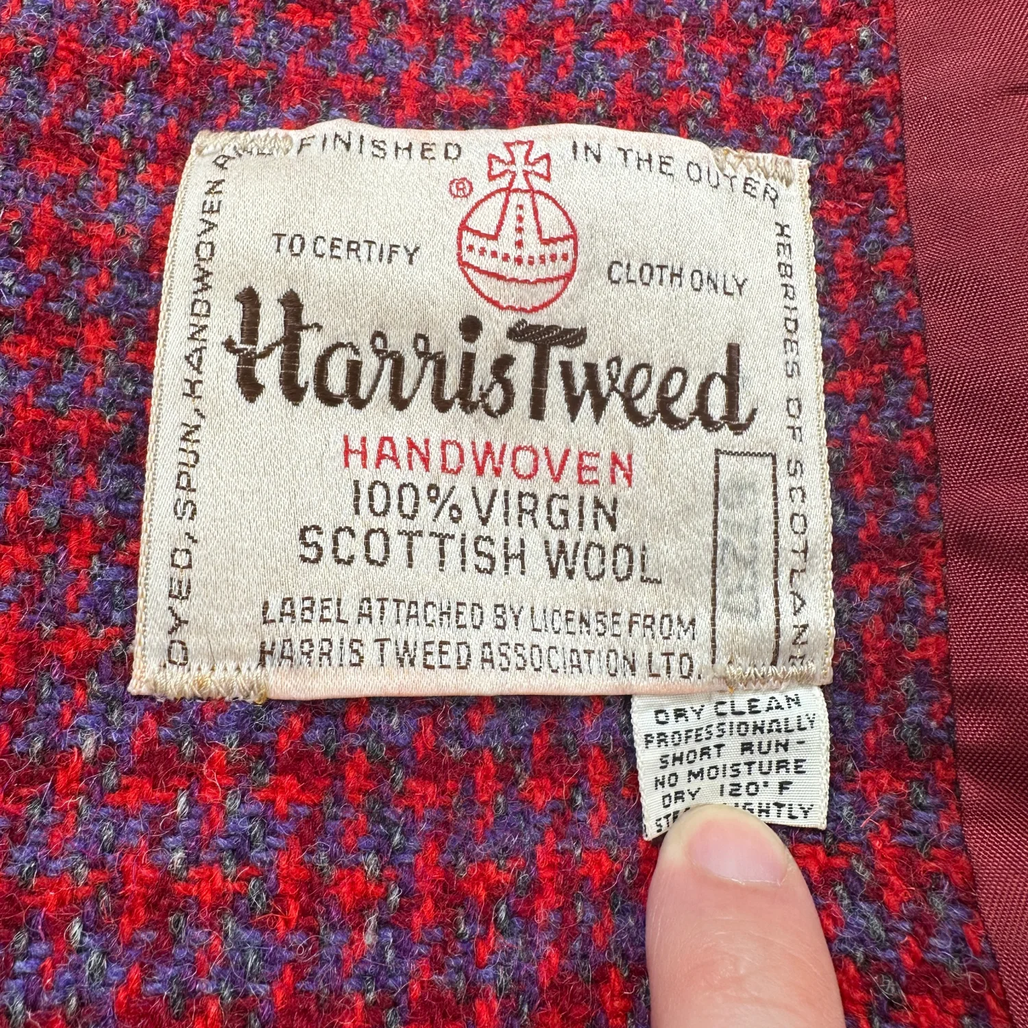 Vintage Harris Tweed 100% Scottish Wool Blazer Jacket Womens Red Blue Plaid Coat
