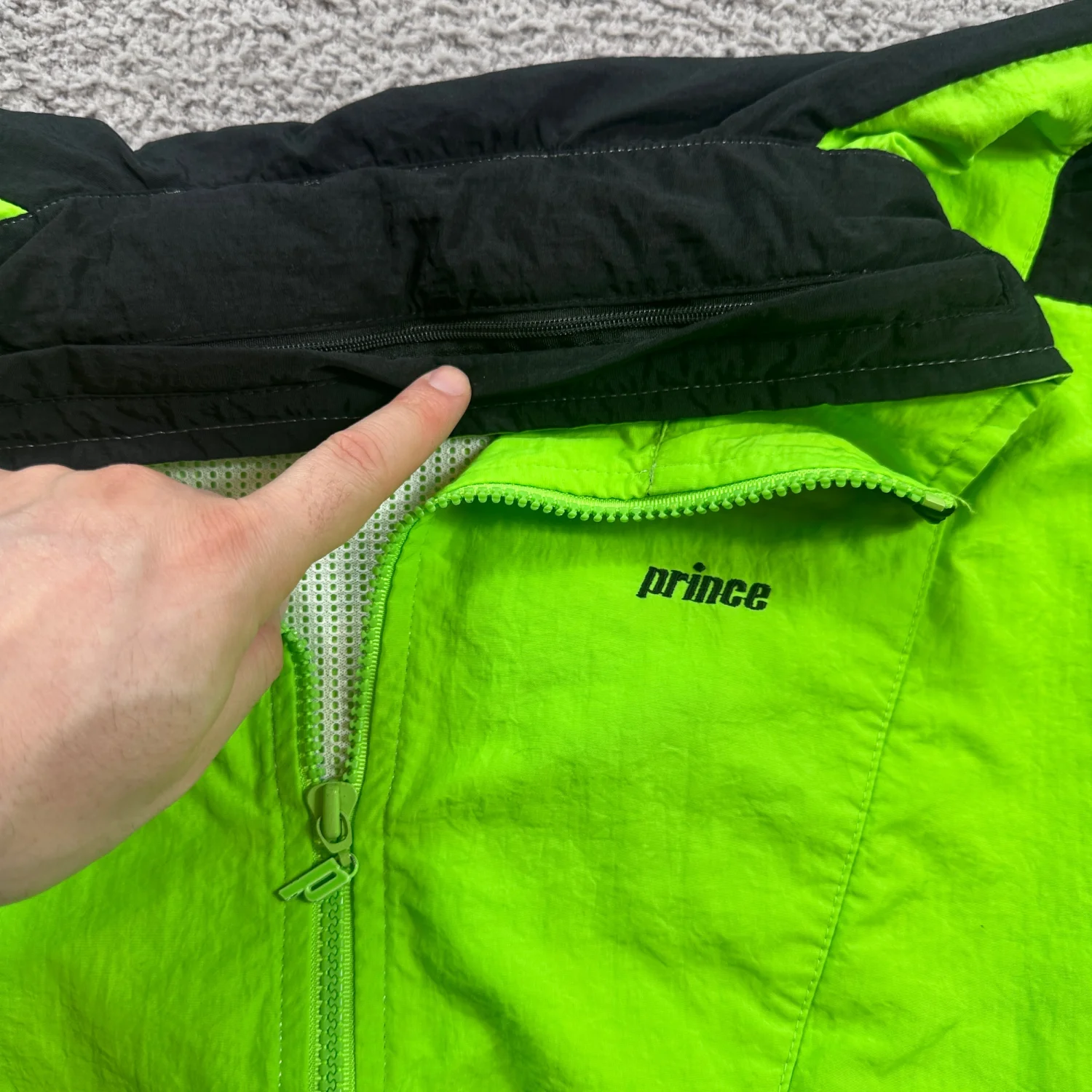 Vintage Prince Tennis Windbreaker Jacket Neon Colorblock 1/2 Zip Mesh Lined XL