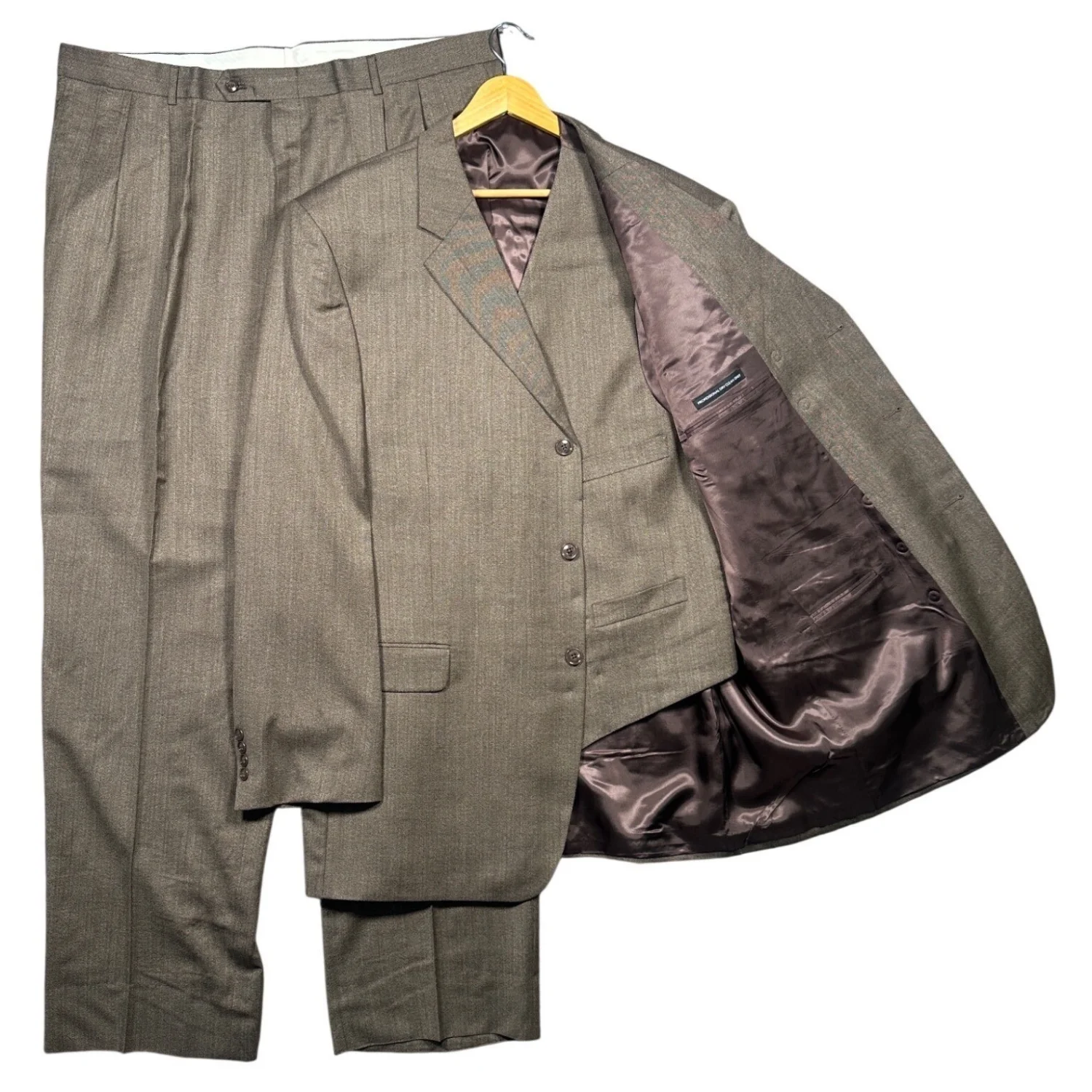 Jones New York 3-Piece Suit Mens 48L 41x33 Brown 3-Button Blazer Vest Pants
