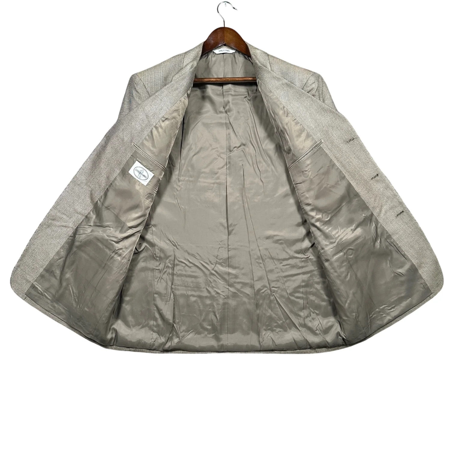 Linea Uomo Blazer Mens 48L Tan 100% Silk 3-Button Micro-Check Sport Coat