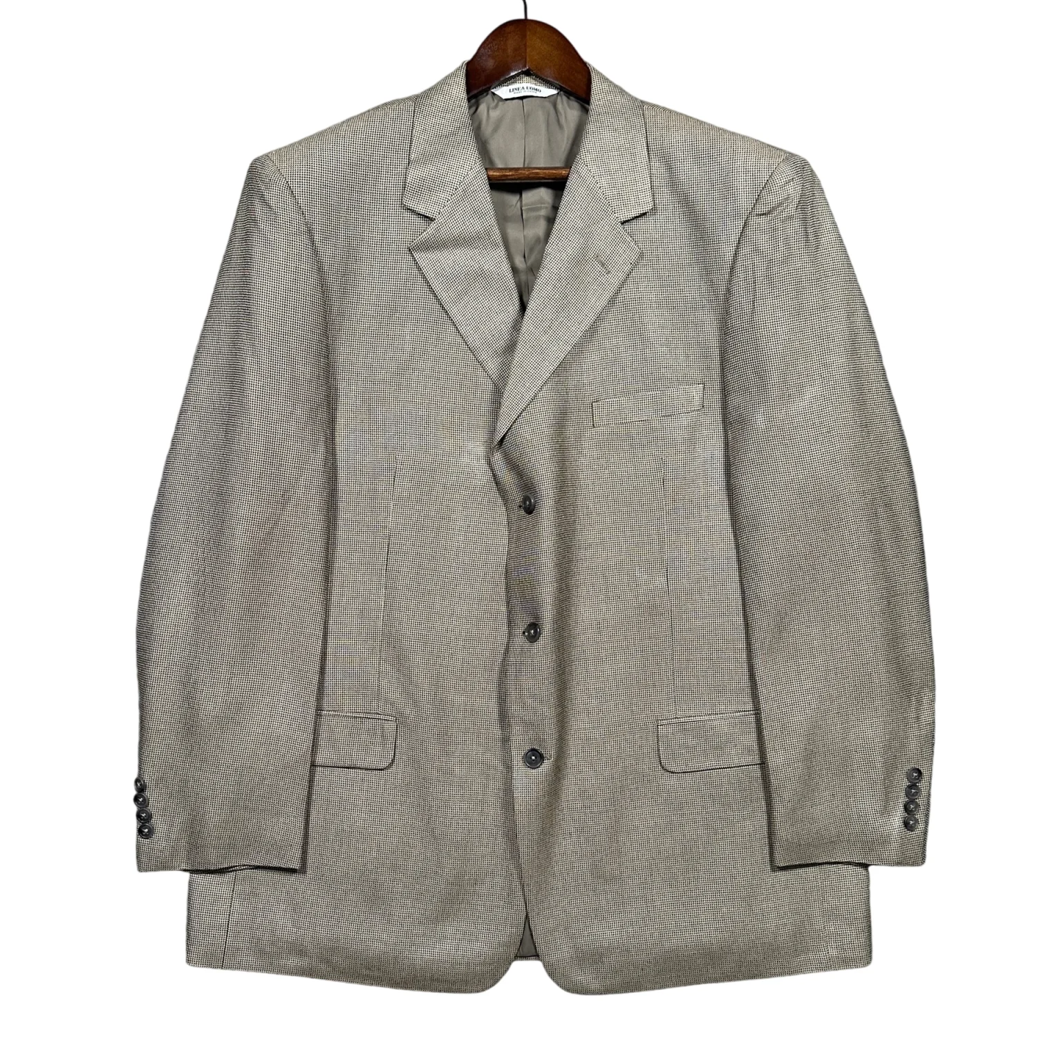 Linea Uomo blazer crafted from 100% silk with a sophisticated micro-check pattern in a versatile tan and brown palette. This three-button sport coat features a classic notched lapel, a single chest pocket, and two lower flap pockets, offering a refined silhouette for professional or formal occasions. The interior is fully lined for comfort and structure, making it a luxurious addition to any tailored wardrobe. Size: 48L Measurements: Chest Width: 24" Sleeve Length: 27" Shoulder Width: 21" Center Back Length: 33.5" Brand: Linea Uomo Material: 100% Silk Pattern: Micro-check / Houndstooth Style: Three-Button Blazer Fit: 48 Long Keywords: Silk Blazer, Luxury Tailoring, Business Casual, Formal Wear, Old Money, Classic Style, Designer Sport Coat, Professional Shop take2supply - Quality-checked, Fast 2-day shipping, 30-day returns. Follow @take2supply!
