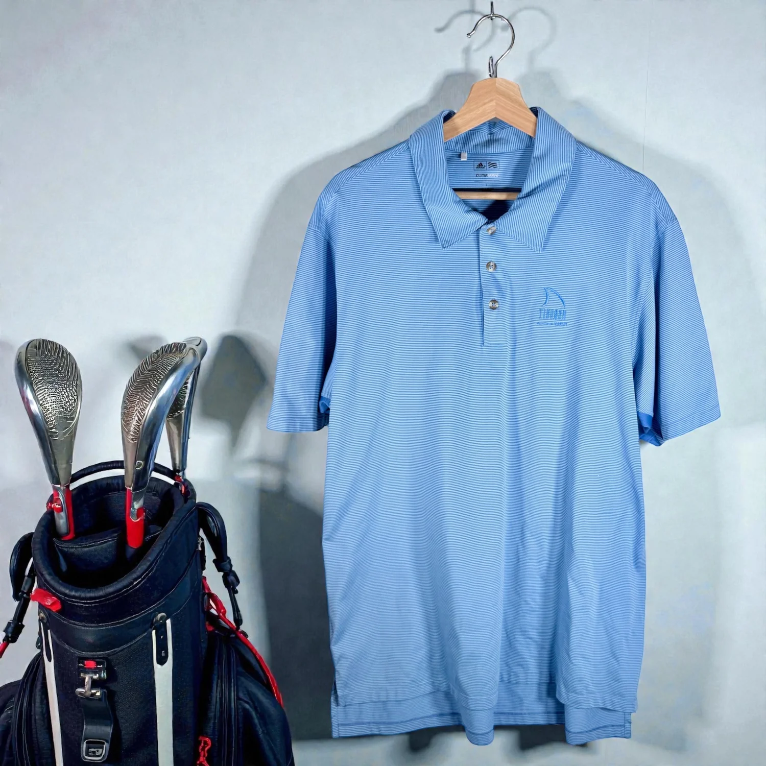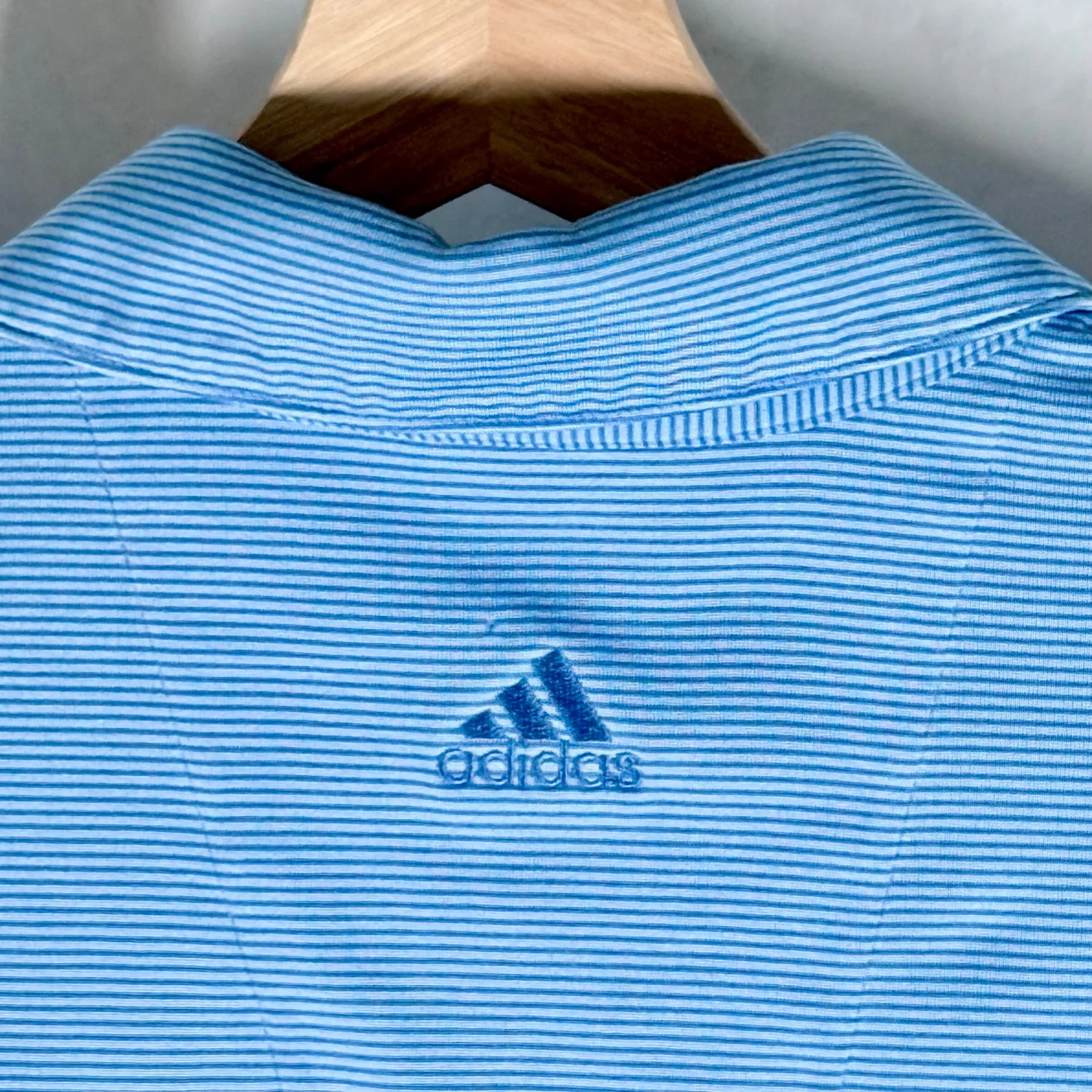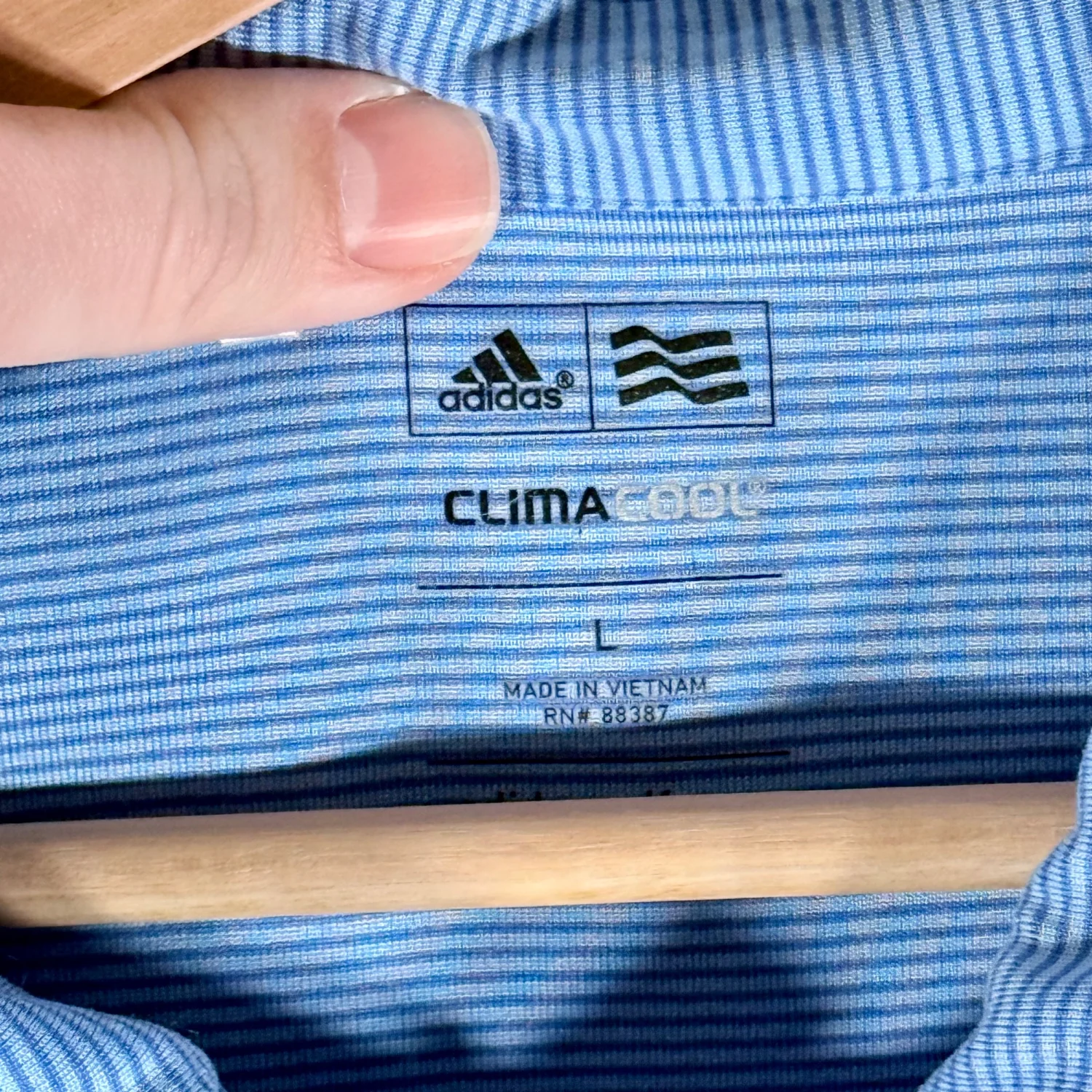 Adidas Climacool Men's Large Blue Striped Tiburon Golf Club Naples S/S Polo