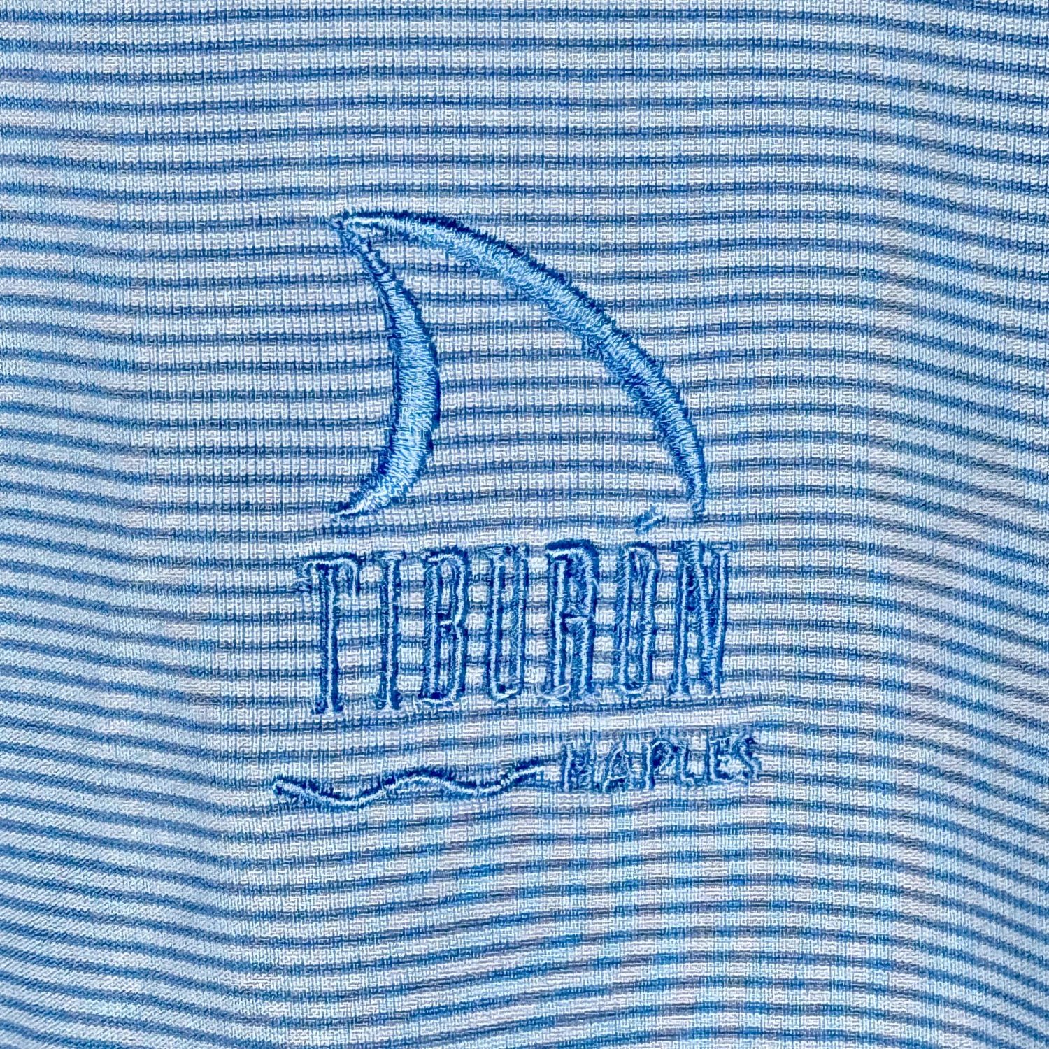 Great dark & light striped polo with embroidered logo of Tiburon Golf Club in Naples, Florida. See pictures for details. Measurements armpit to armpit 23" length 33" Keywords: athleisure, comfort, performance, preppy, summer, outdoors, casual, country club P20250627 63