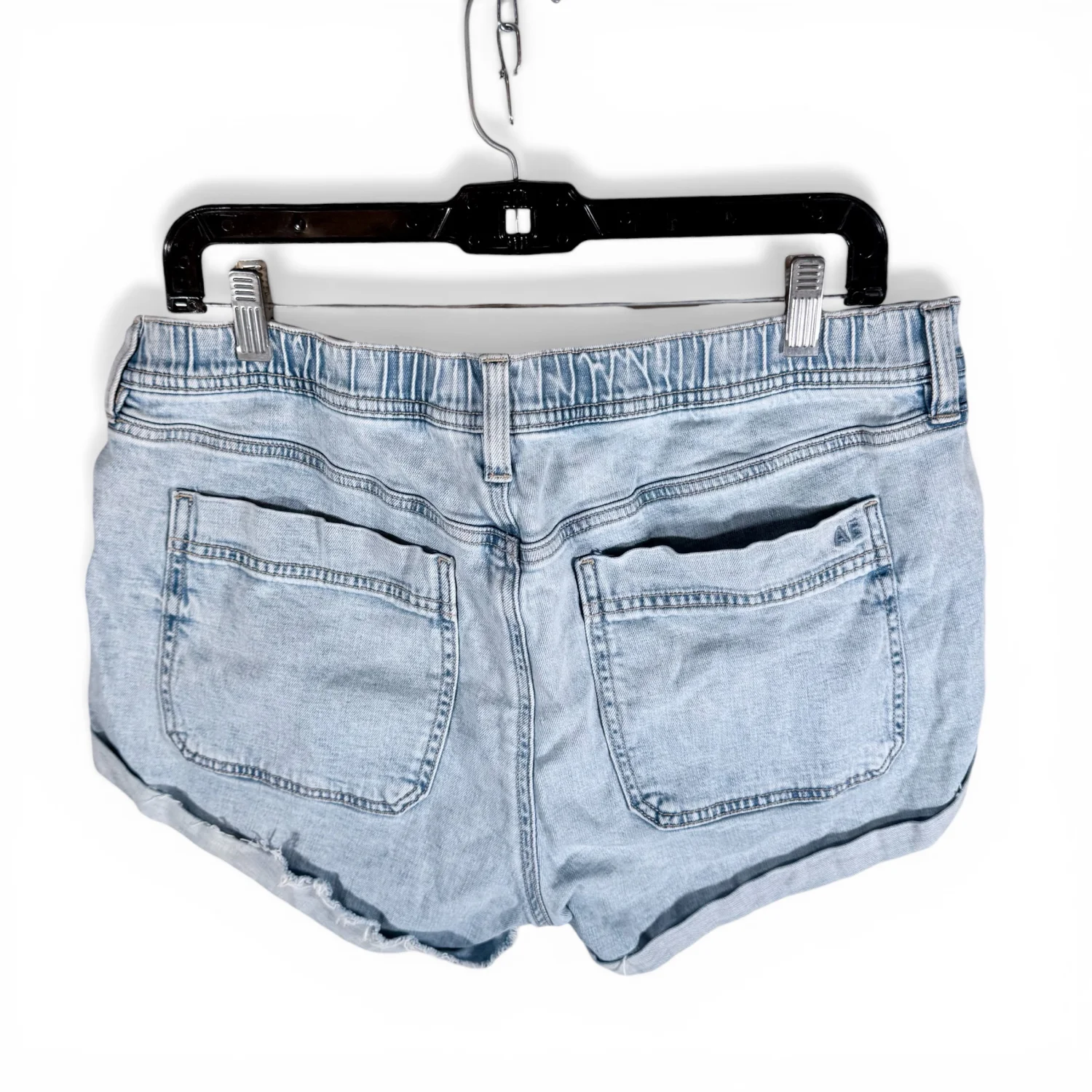 American Eagle Women's 12 Light Wash Easy Shortie Denim Jean Shorts Raw Hem