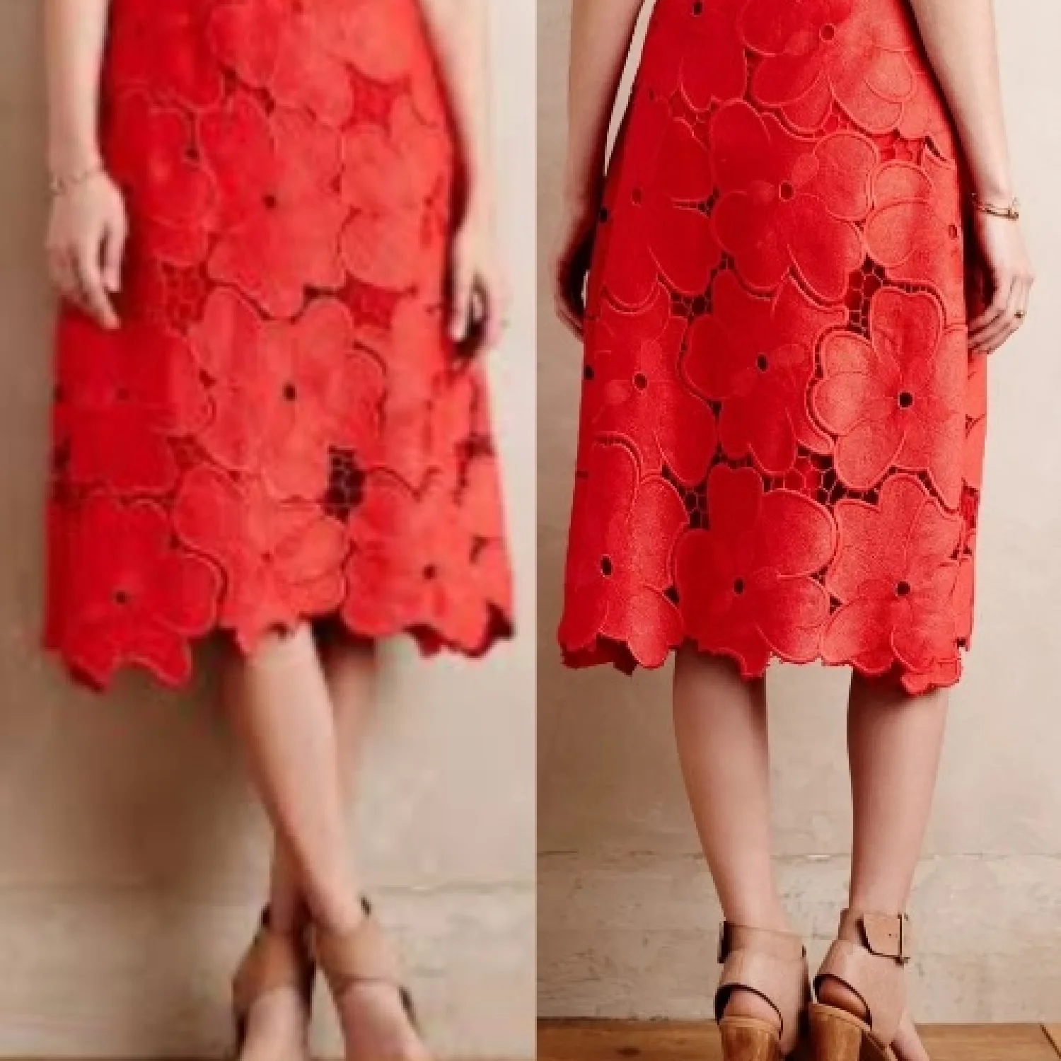 Anthropologie Cynthia Rowley NWT Women's 6 Red Lace Bouquet Lined Skirt Flowers