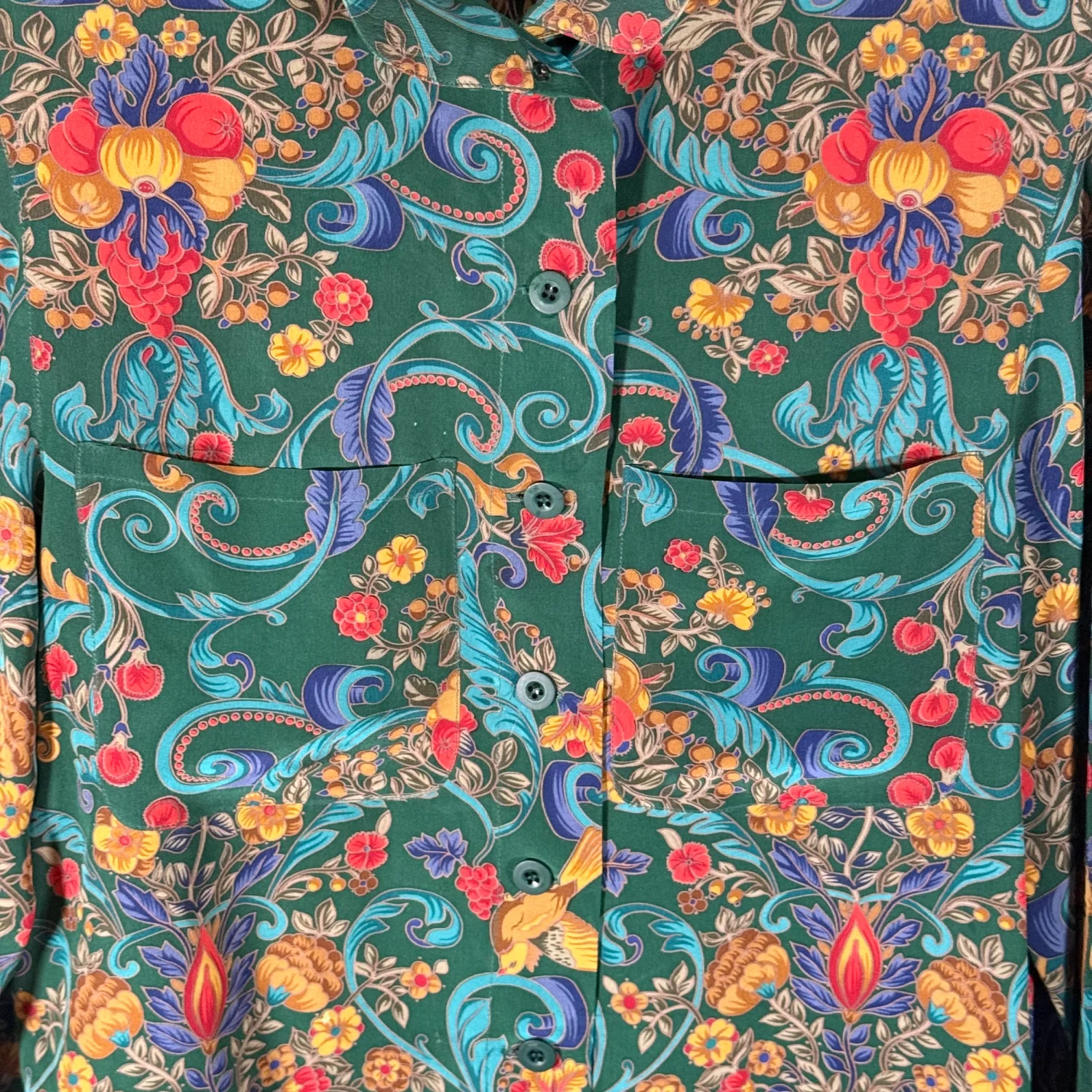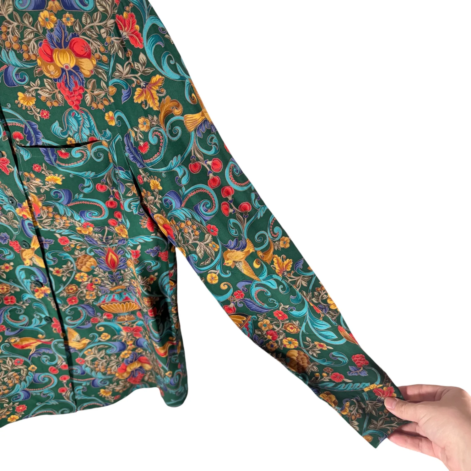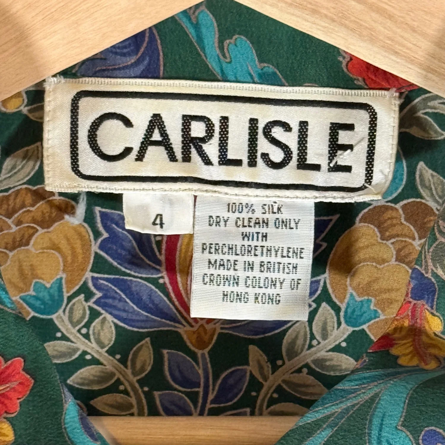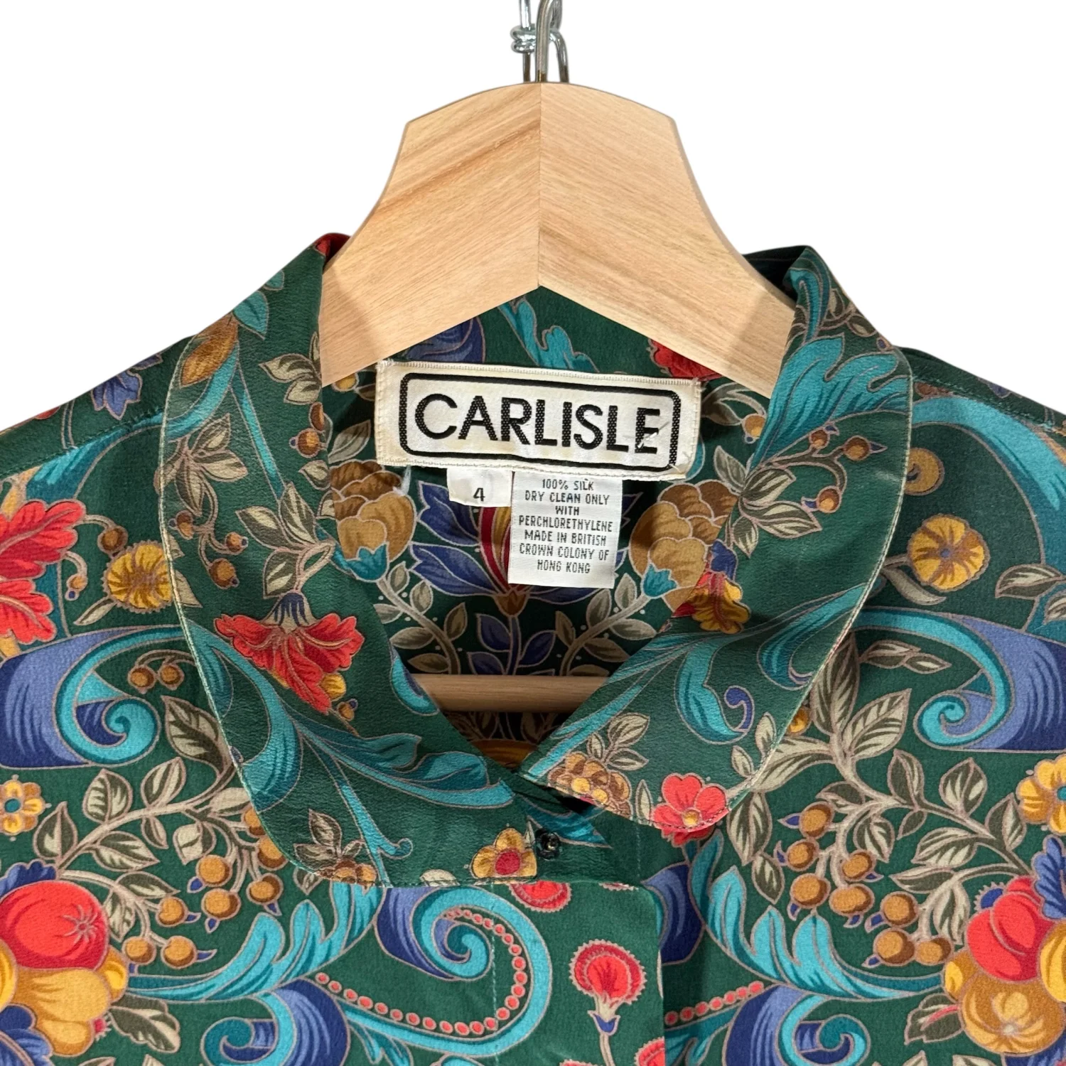Carlisle VTG Women's 4 Green Mulitcolored Floral 100% Silk L/S Blouse Shacket