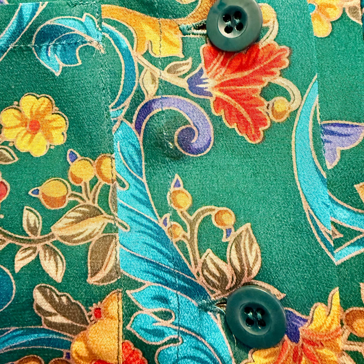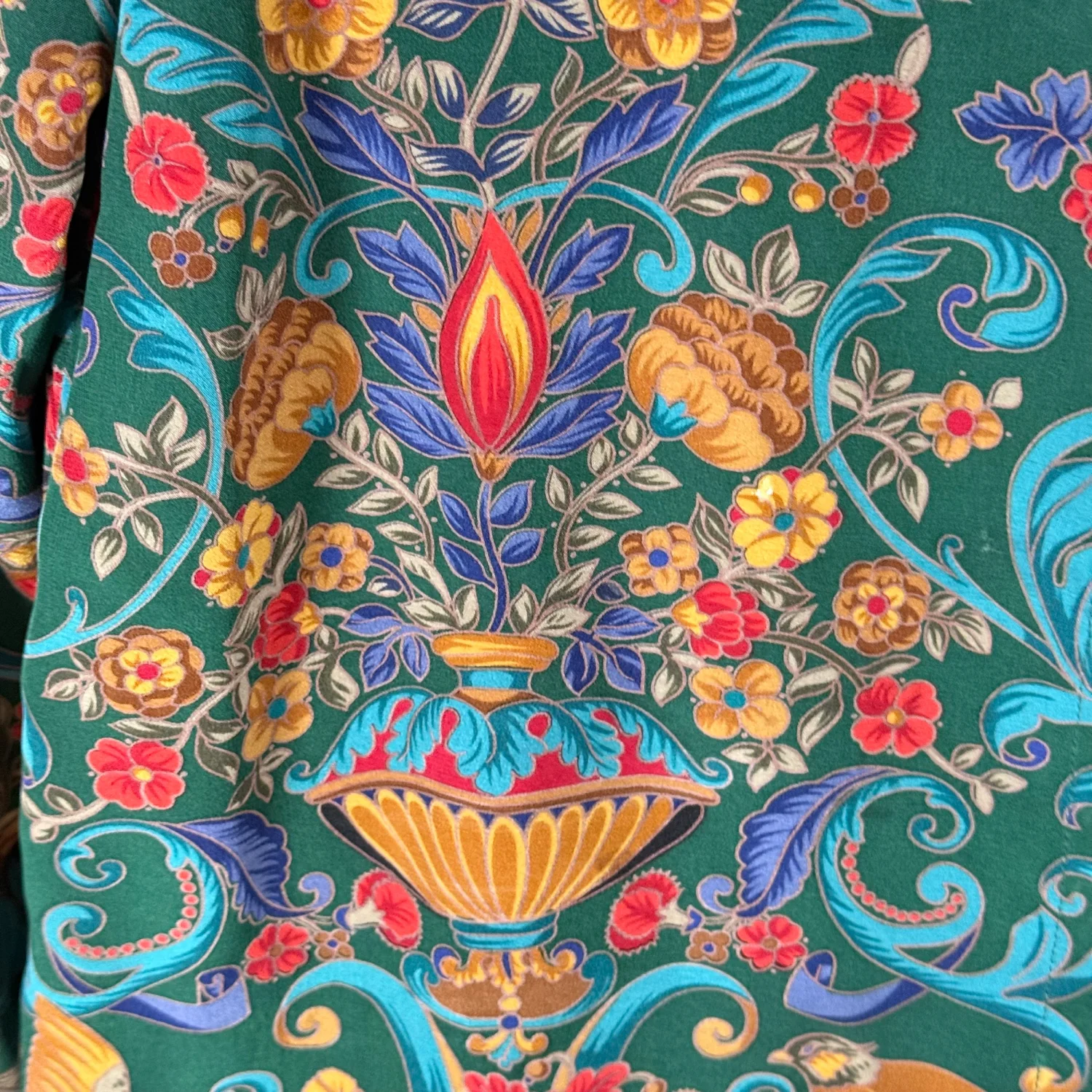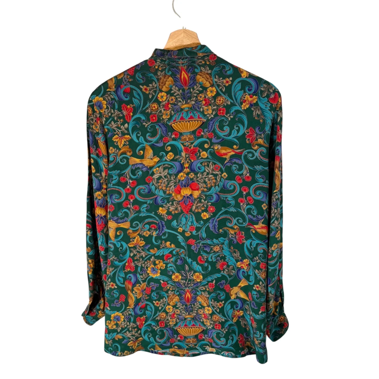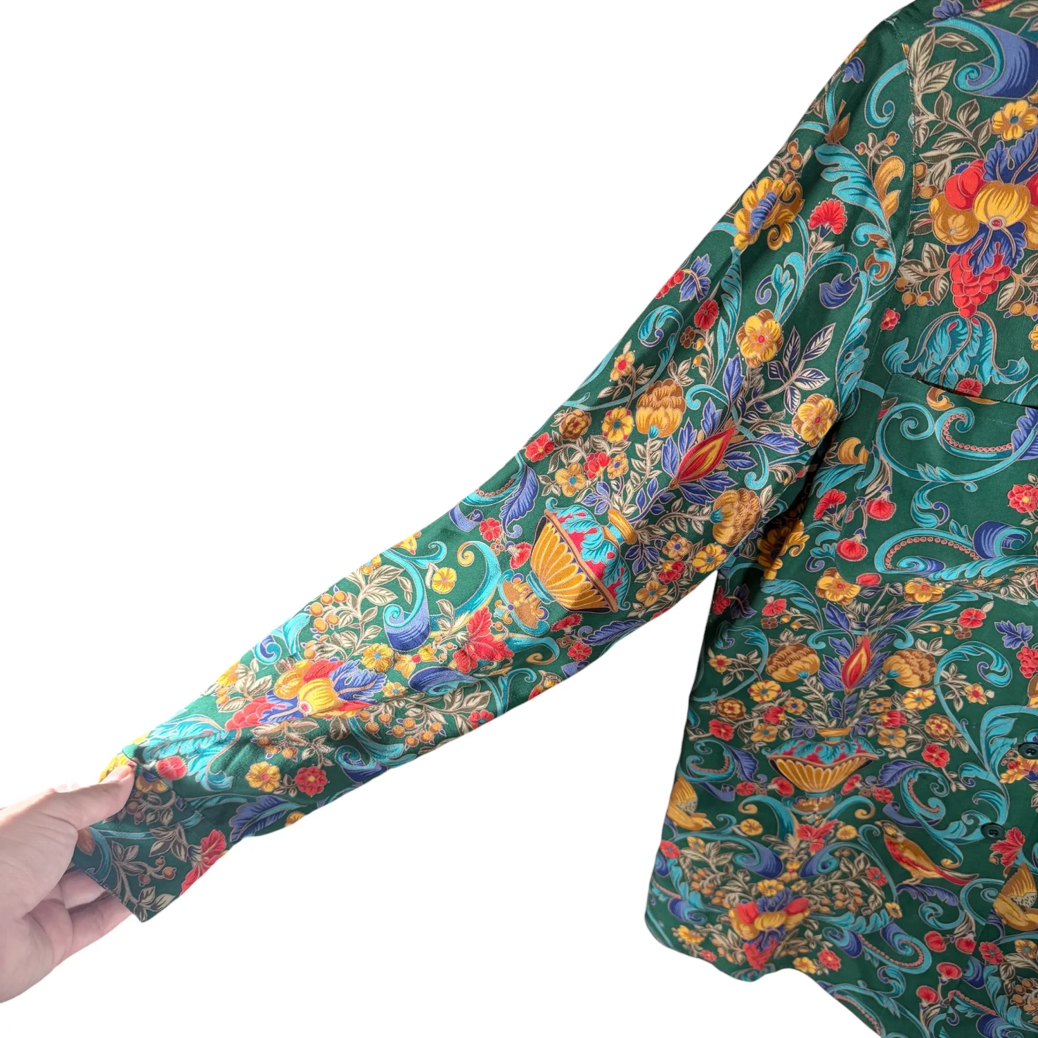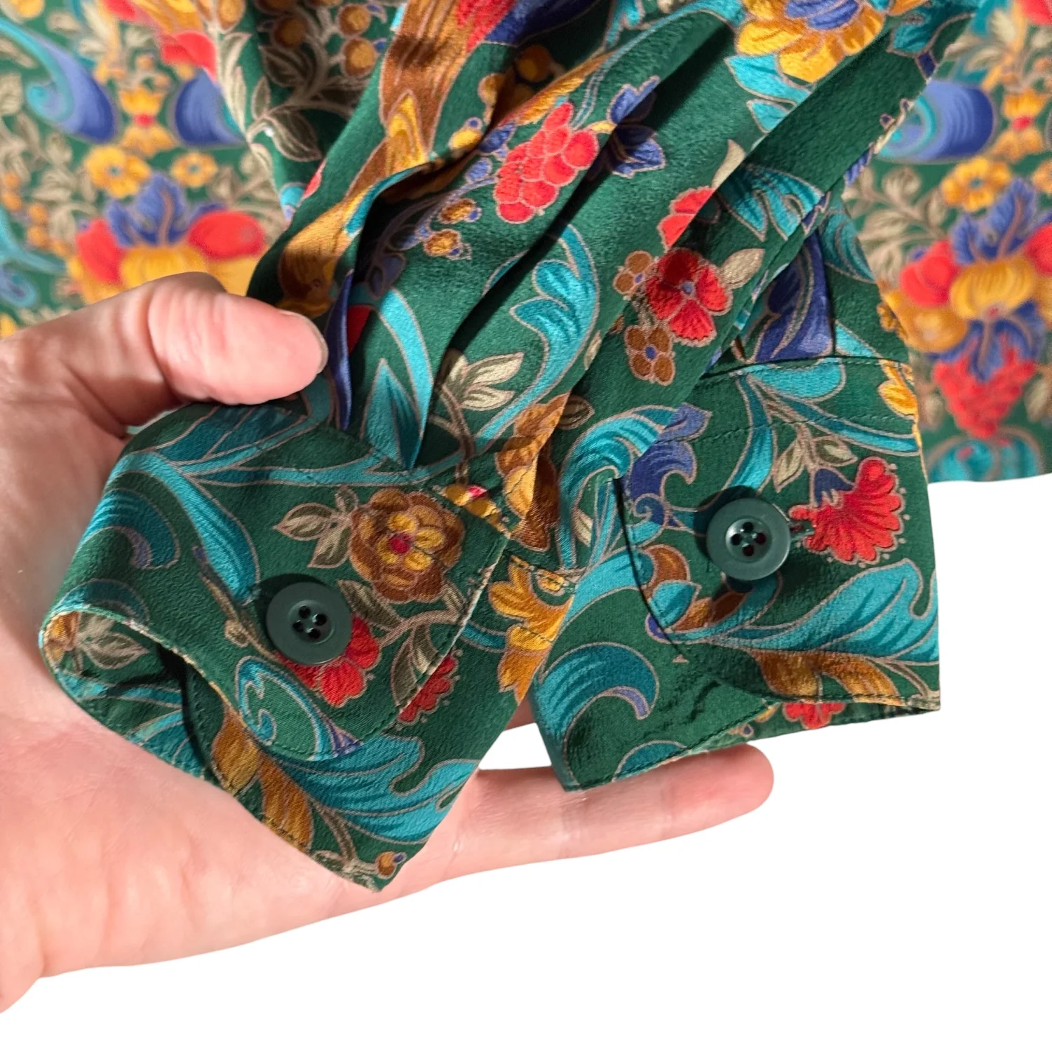 Carlisle VTG Women's 4 Green Mulitcolored Floral 100% Silk L/S Blouse Shacket