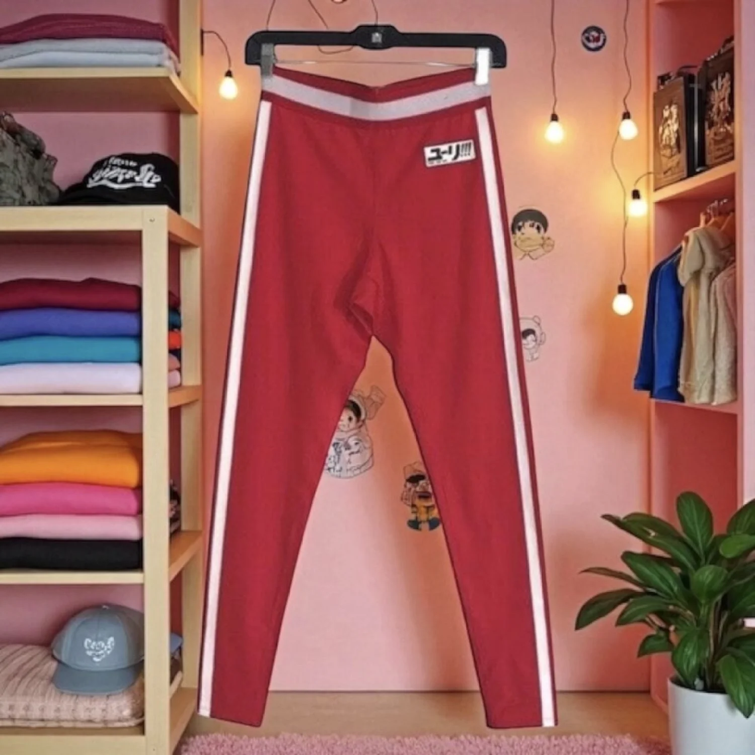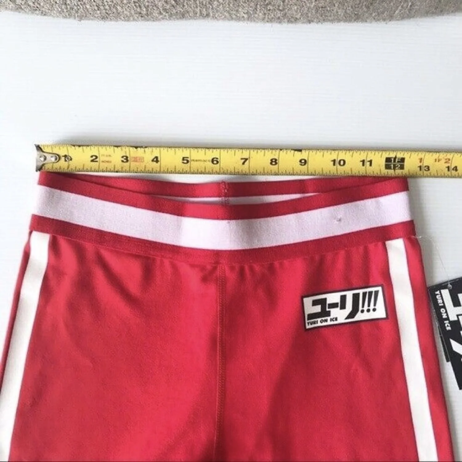 BRAND NEW "Yuri!!! On Ice" ankle length active pants! They feature an elastic waistband and stretch. Red with white stripe on the waistband and along the leg. Nylon/spandex blend, machine washable, and in general new condition. Just one blemish on waistband. See pictures for details and measurements. Size is women's junior small. athleisure, casual, skinny, anime, stretch 20211364 51