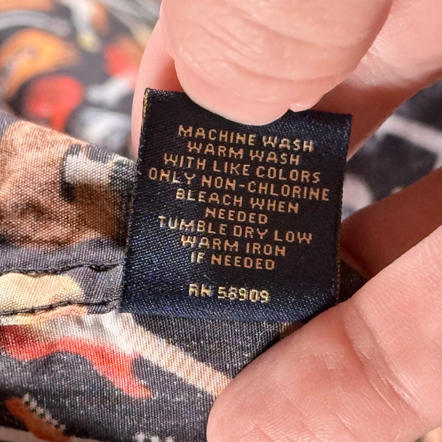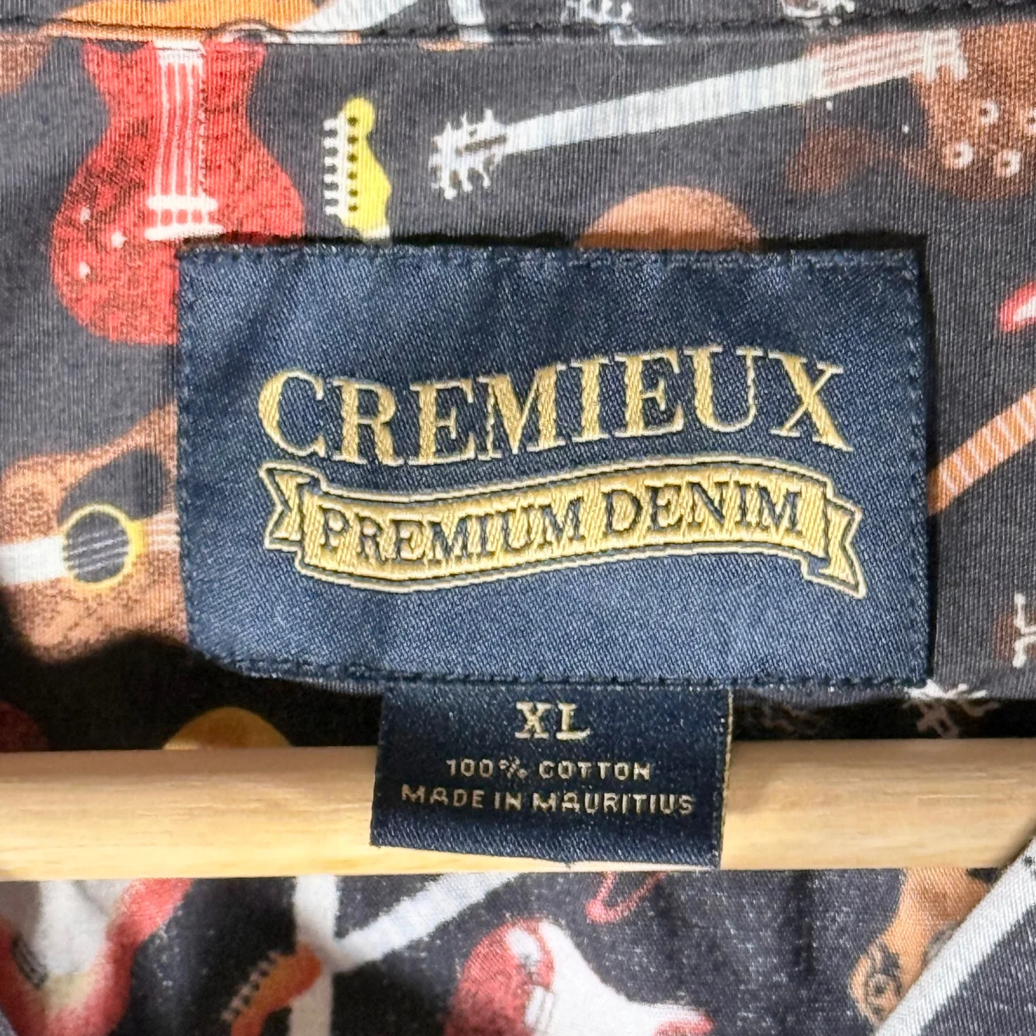 Daniel Cremieux Men's XL Dark Blue 100% Cotton Guitar Print Pearl Snap L/S Shirt